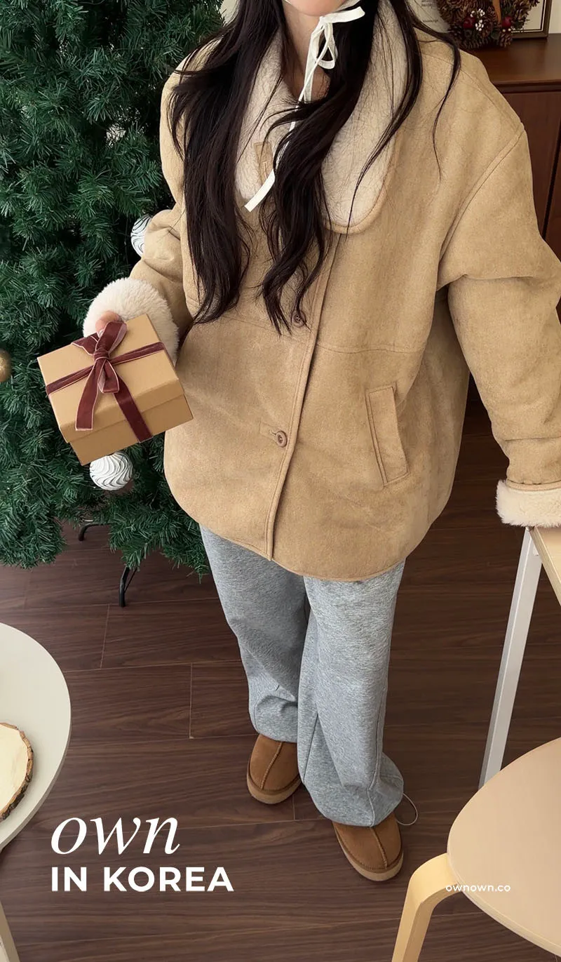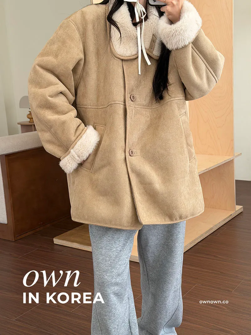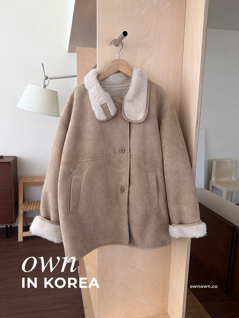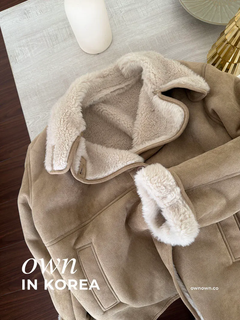 【正韓連線】衣櫃裡少這件!長版麂皮內刷絨外套