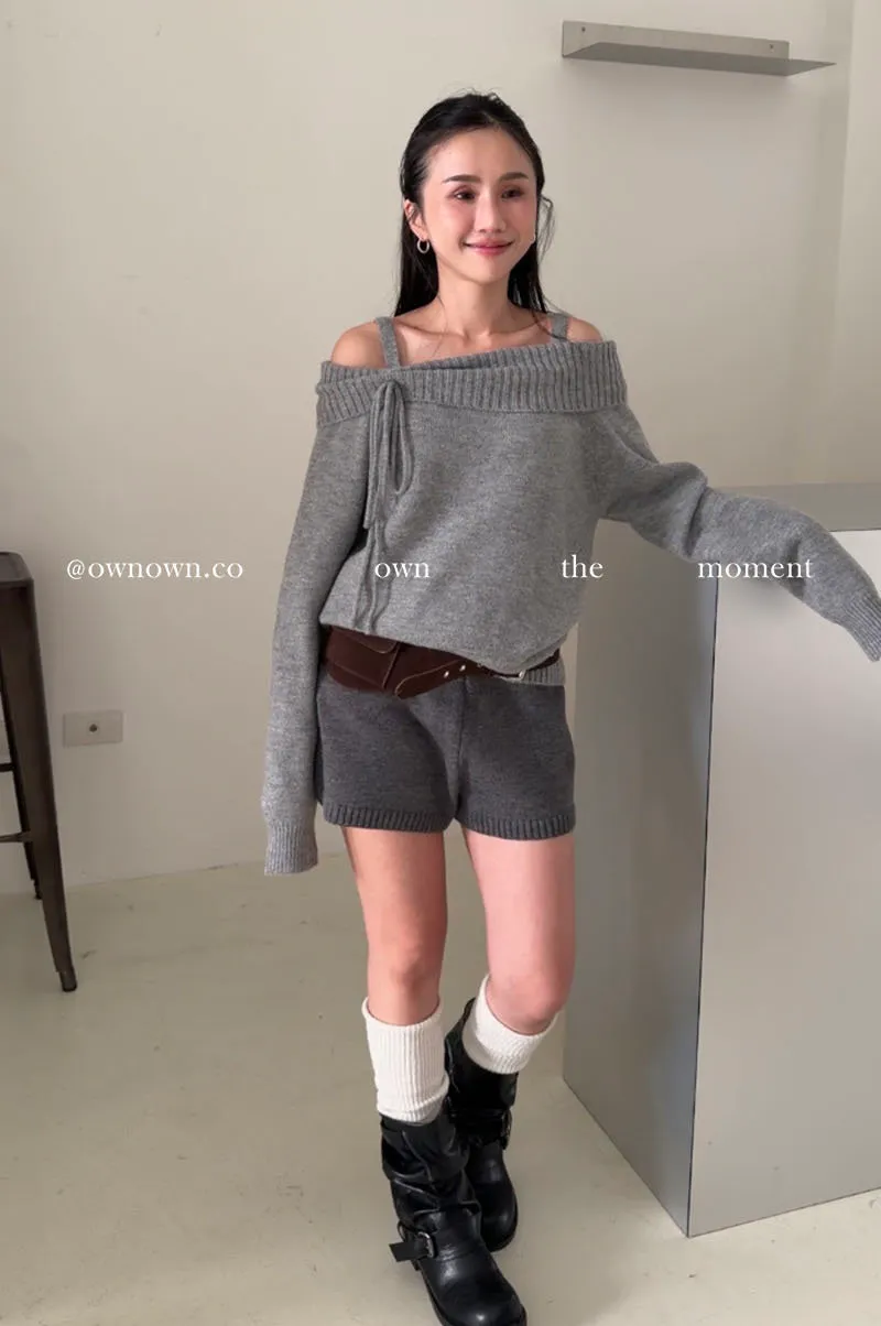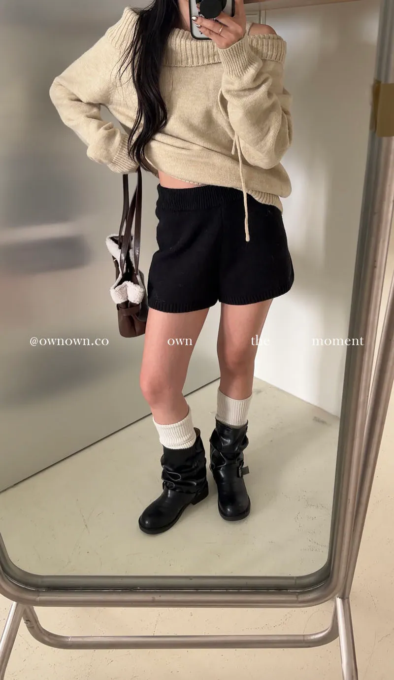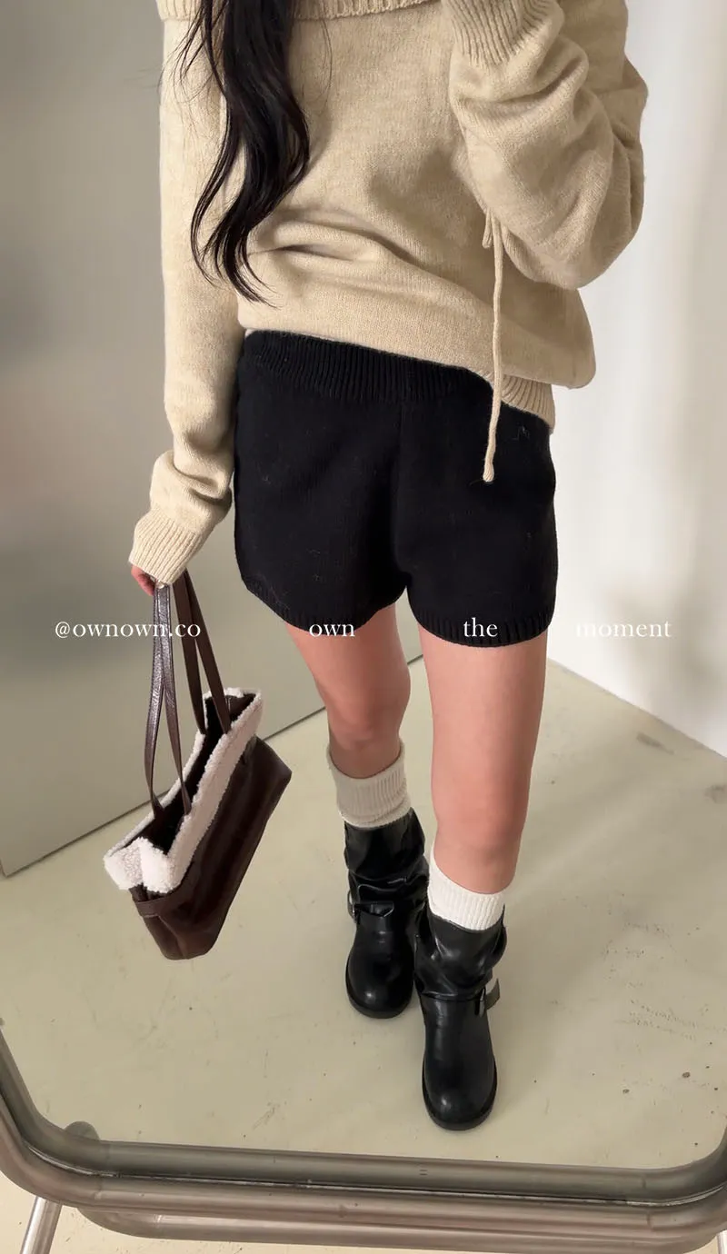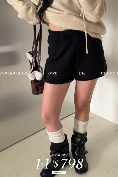 【組合優惠2件$798】俐落修身 坑紋邊針織短褲 2colors