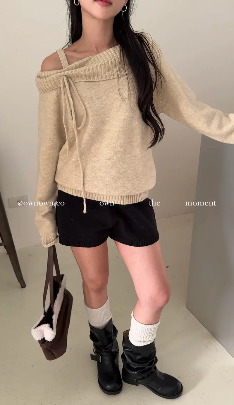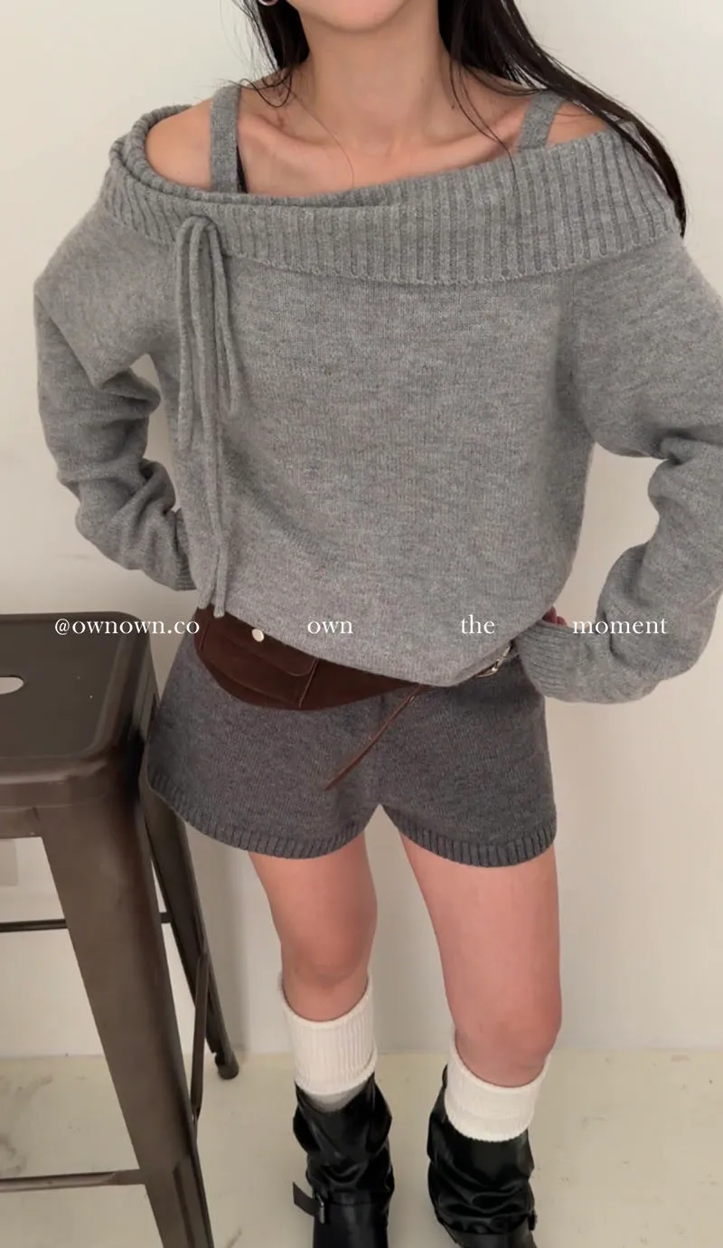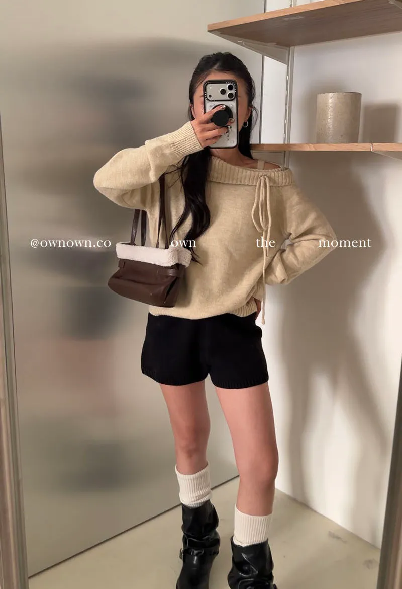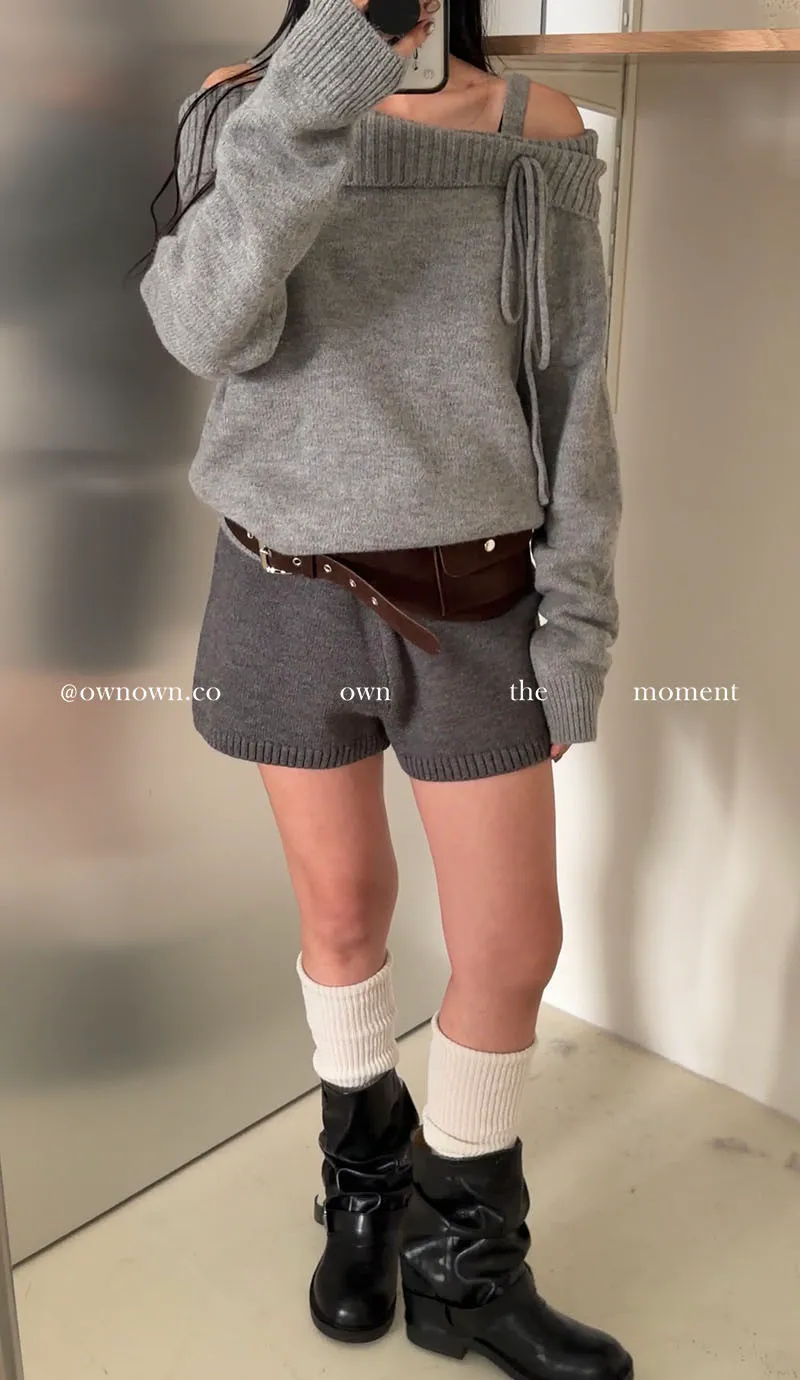【組合優惠2件$798】俐落修身 坑紋邊針織短褲 2colors