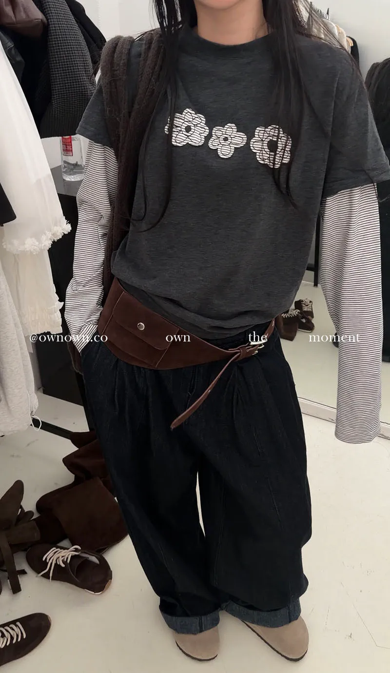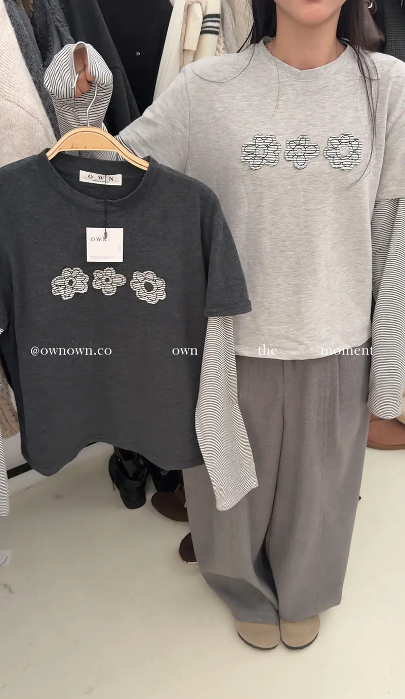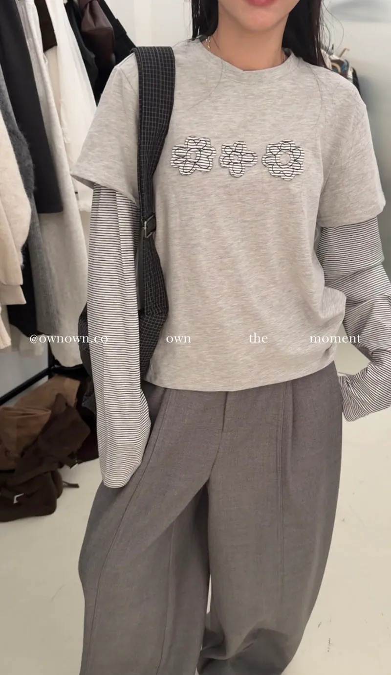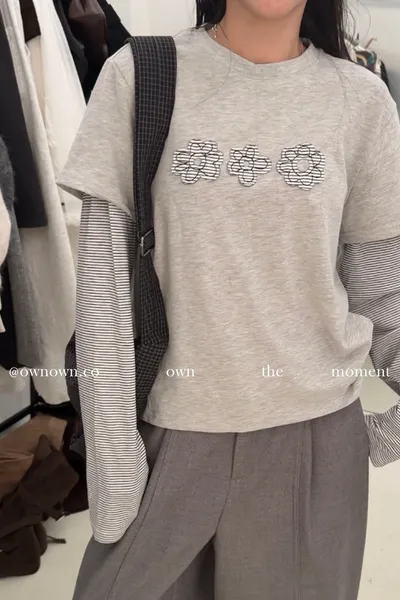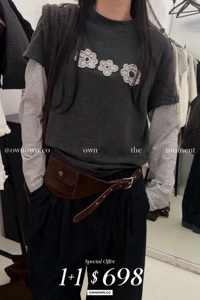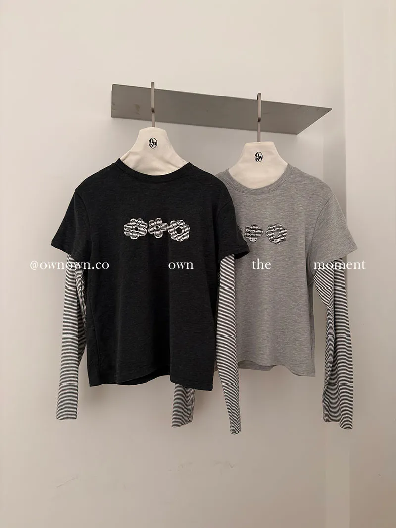 【組合優惠2件$698】休閒也要穿出層次氛圍 假兩件貼布小花長袖Tee 2colors