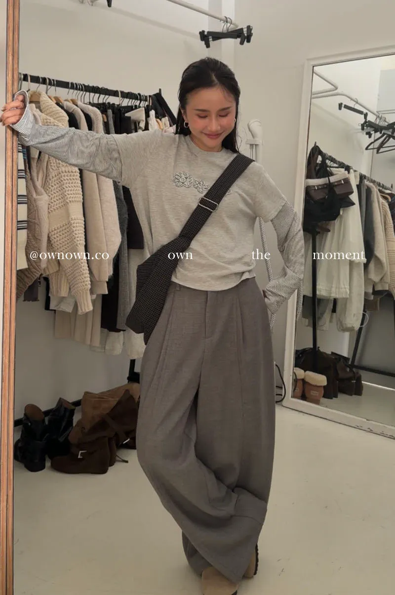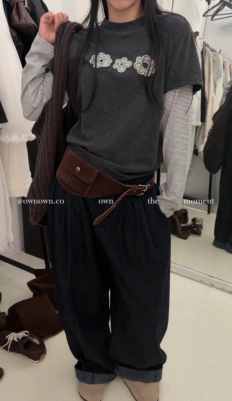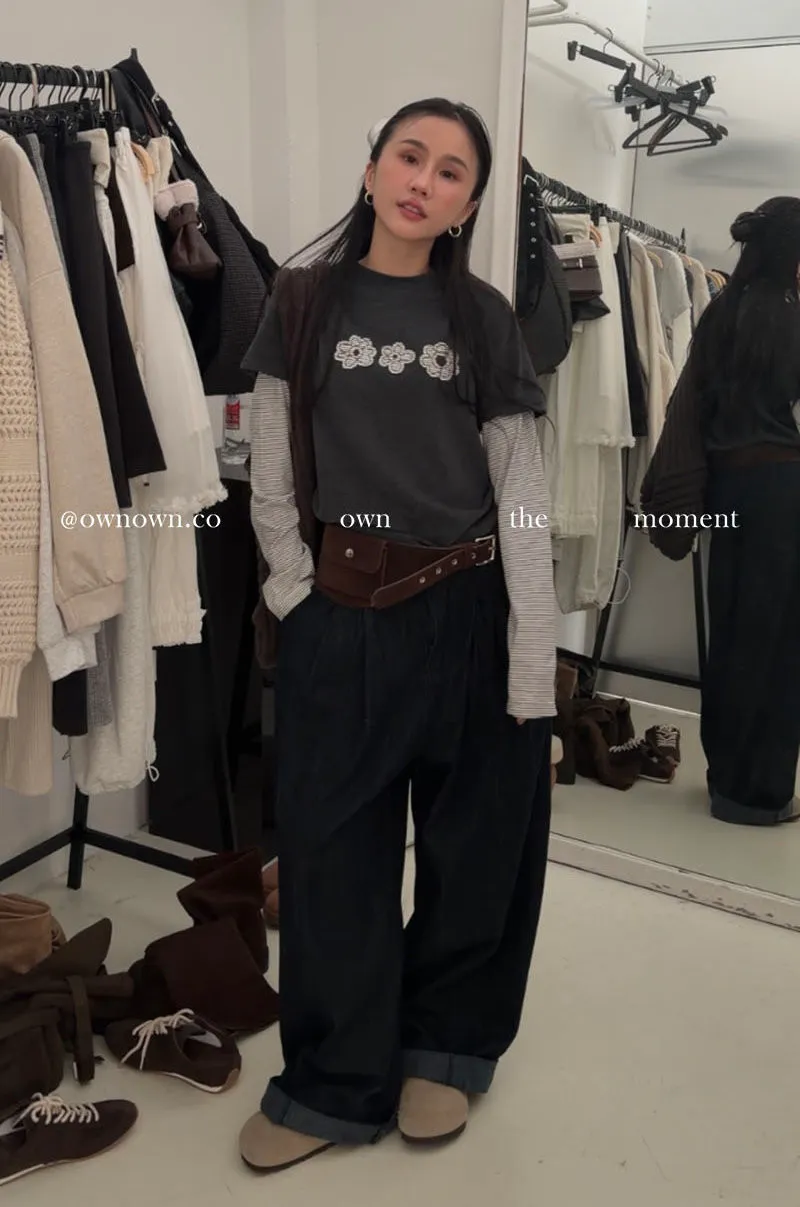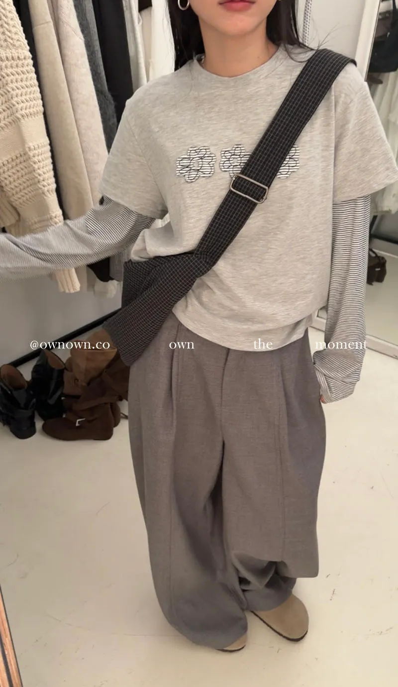 【組合優惠2件$698】休閒也要穿出層次氛圍 假兩件貼布小花長袖Tee 2colors