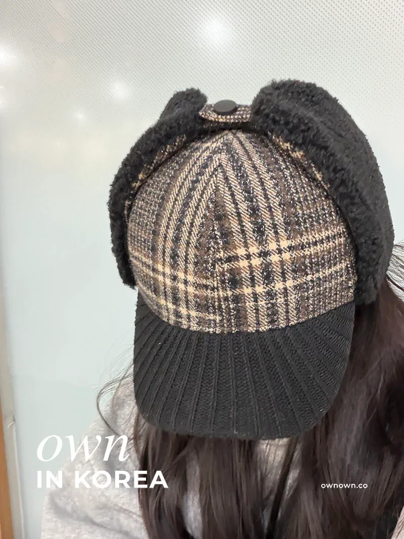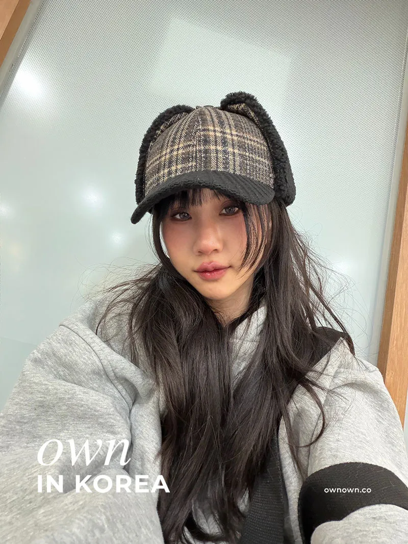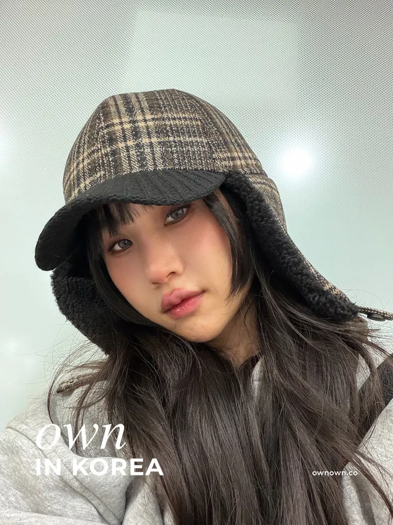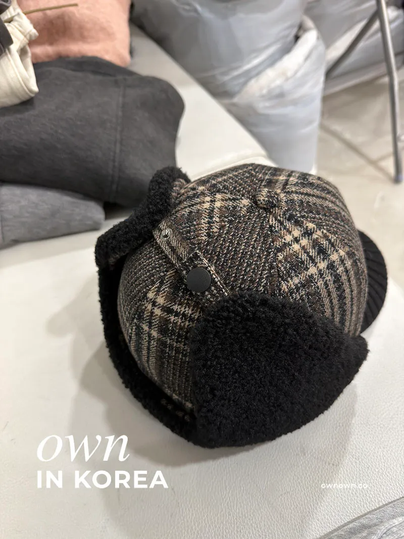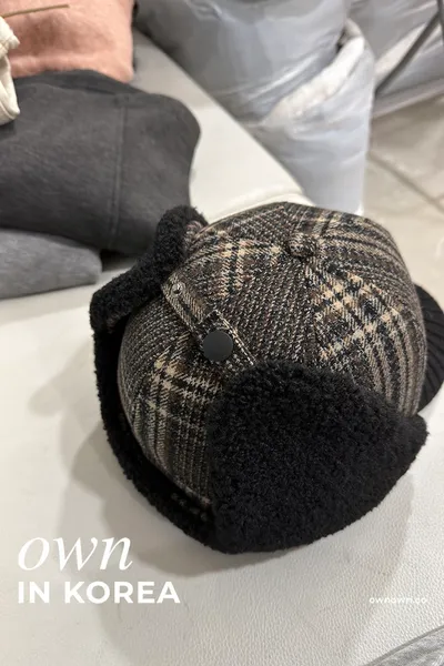 【正韓連線】韓系輕復古 格紋護耳帽
