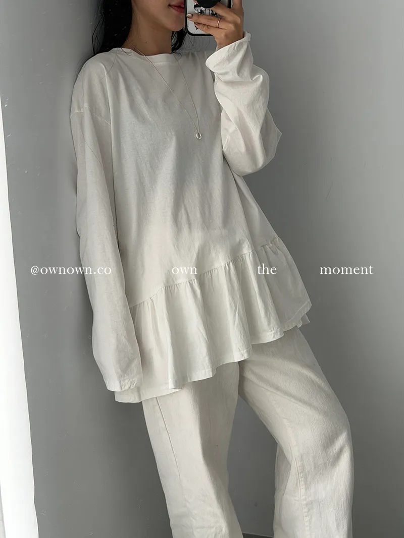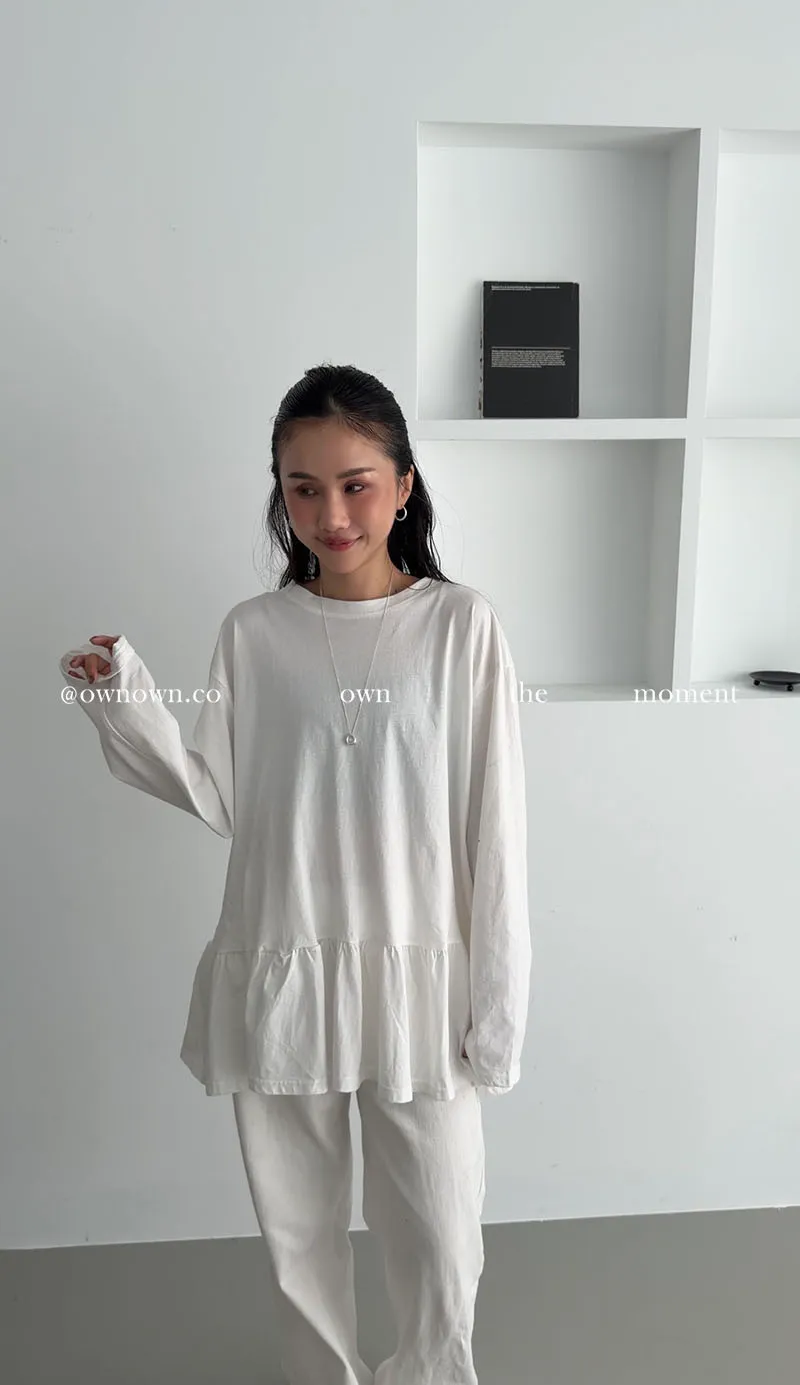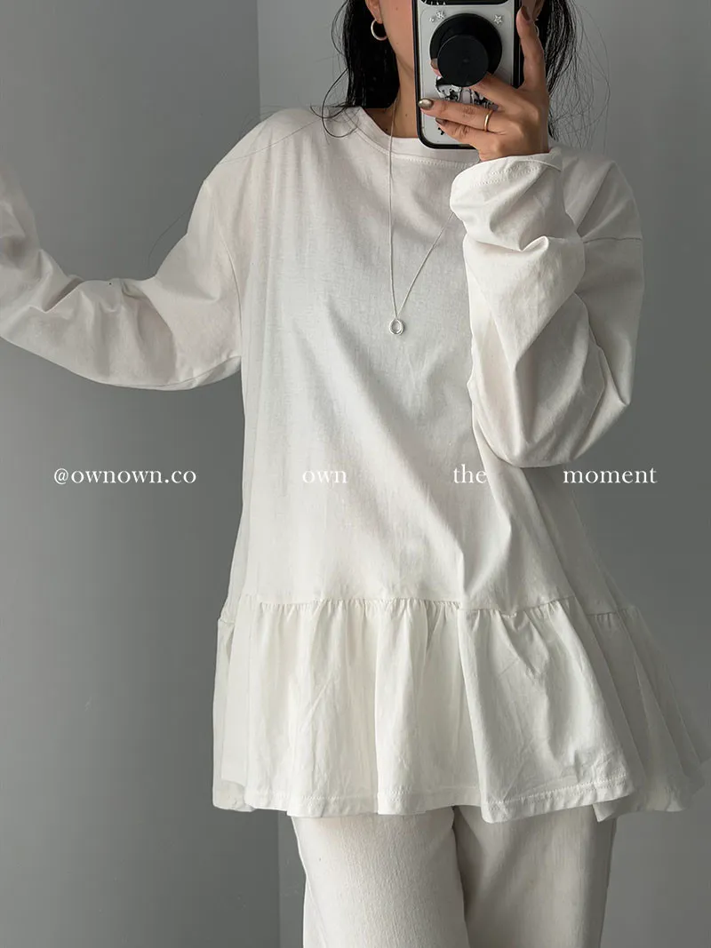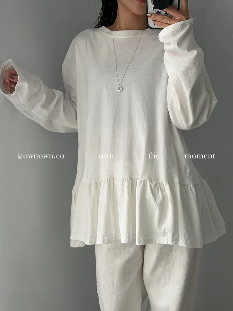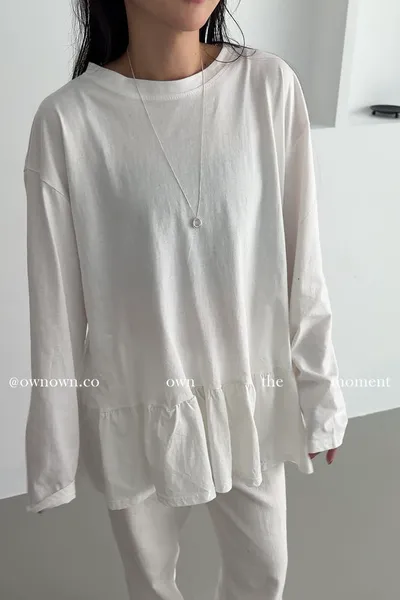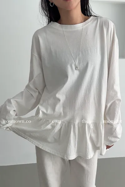 甜而不膩的減齡感 荷葉下擺長袖上衣