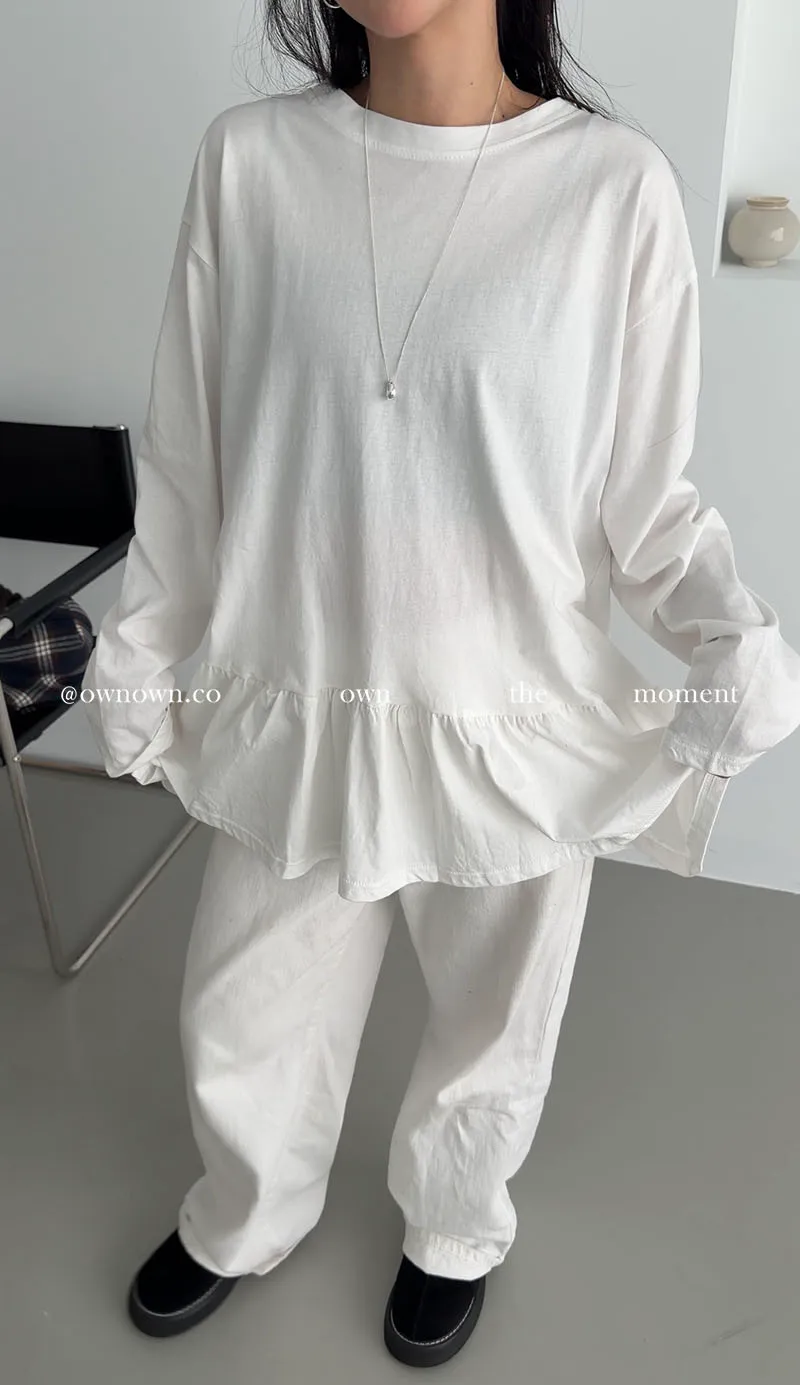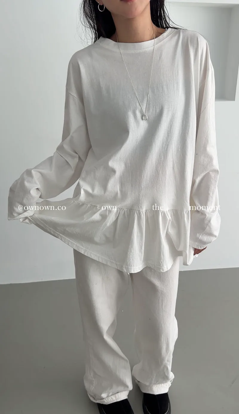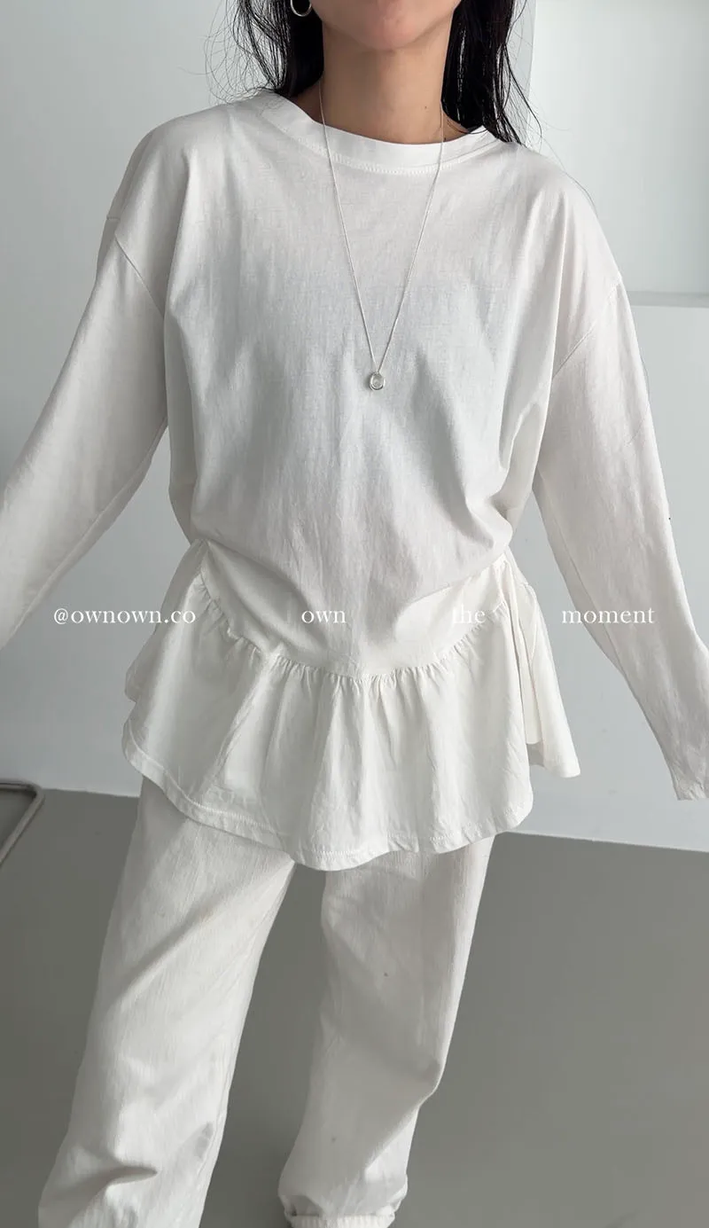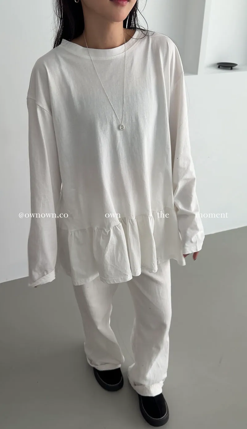 甜而不膩的減齡感 荷葉下擺長袖上衣