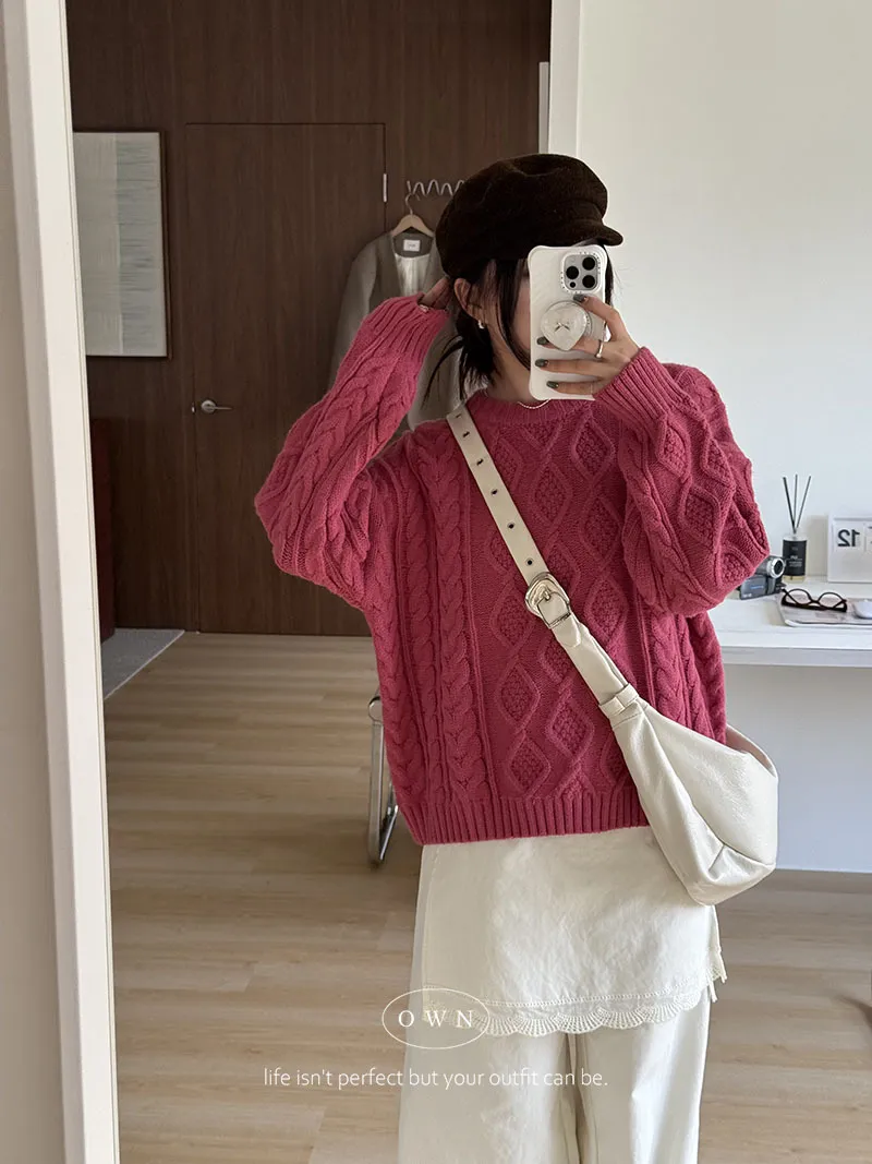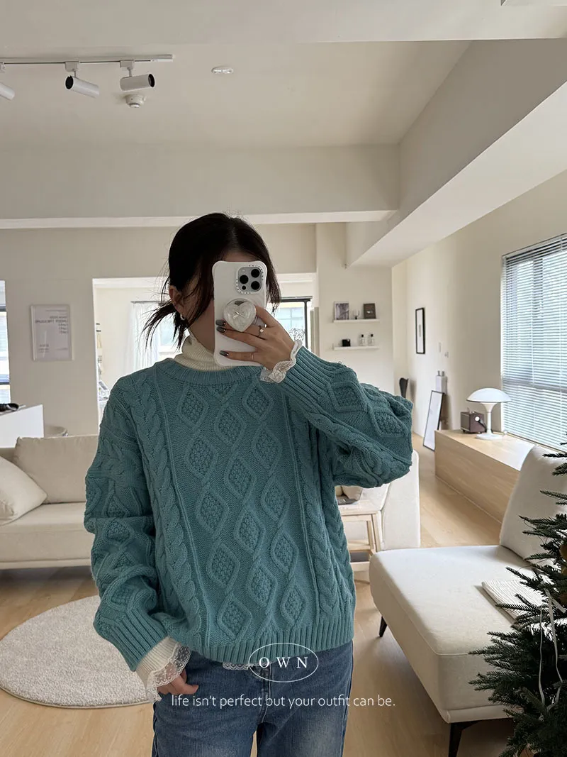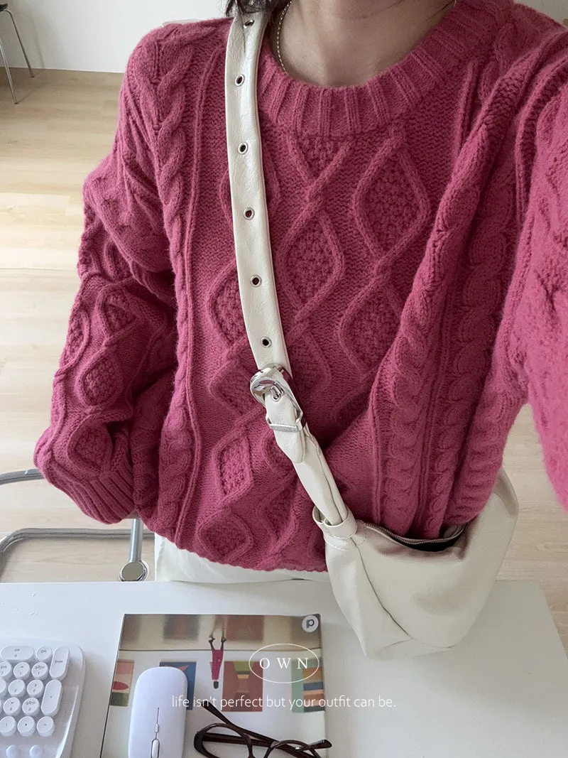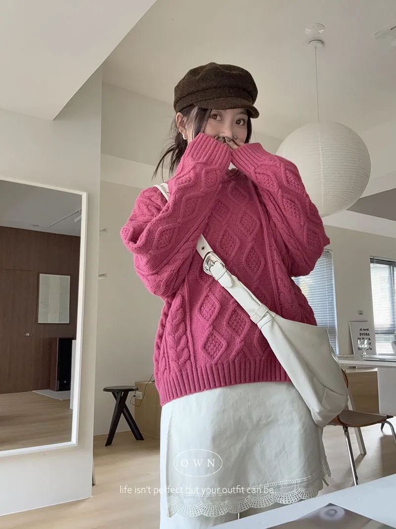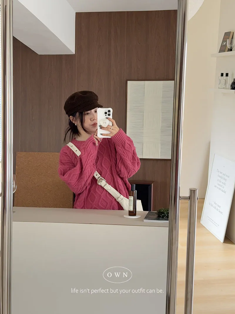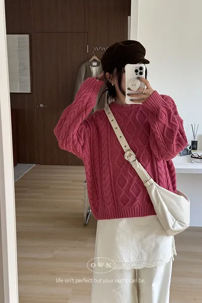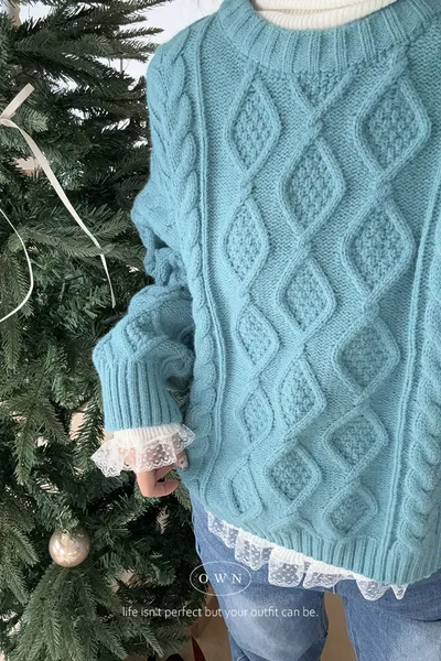 漂亮到發光 飽和色系立體菱格針織毛衣 2colors