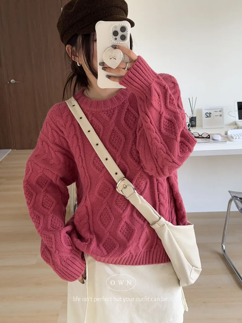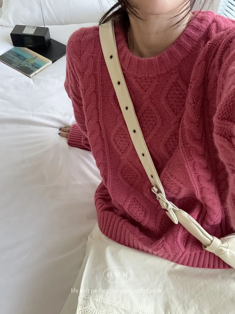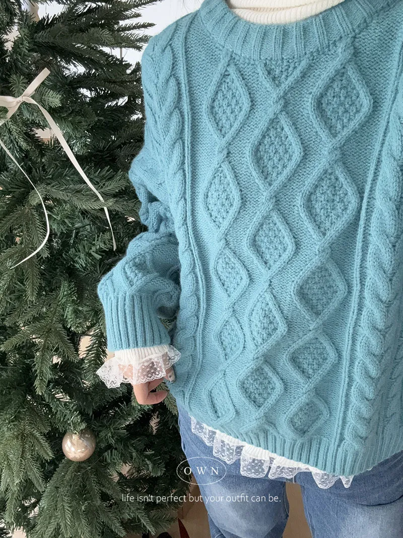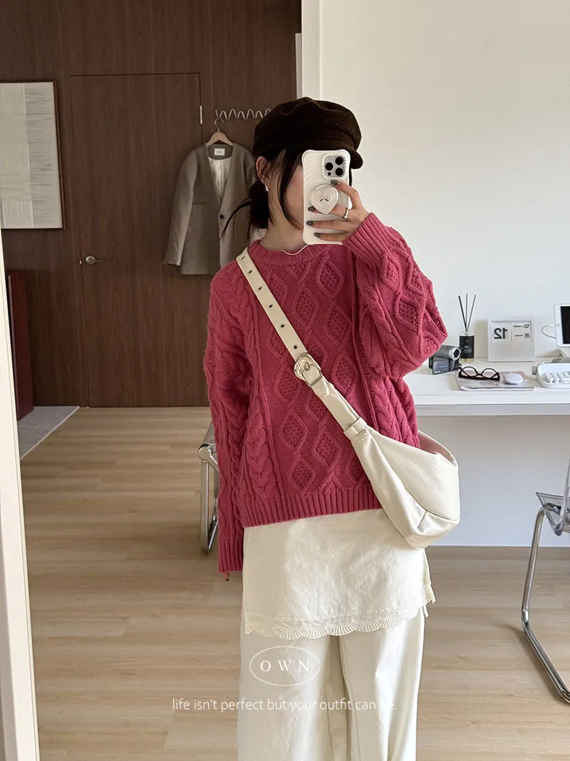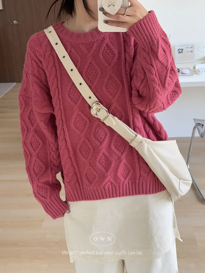 漂亮到發光 飽和色系立體菱格針織毛衣 2colors