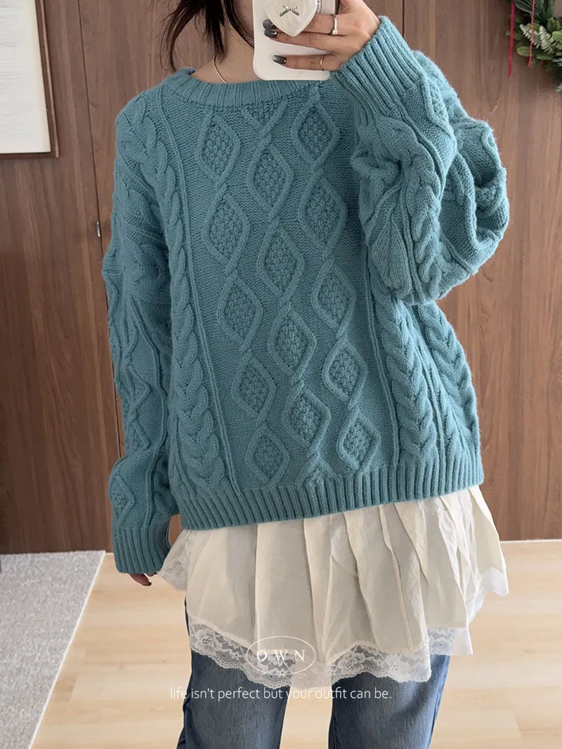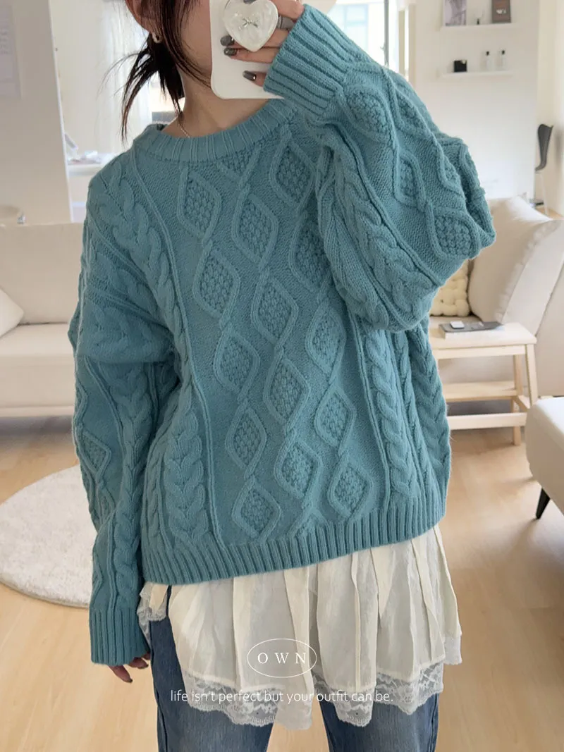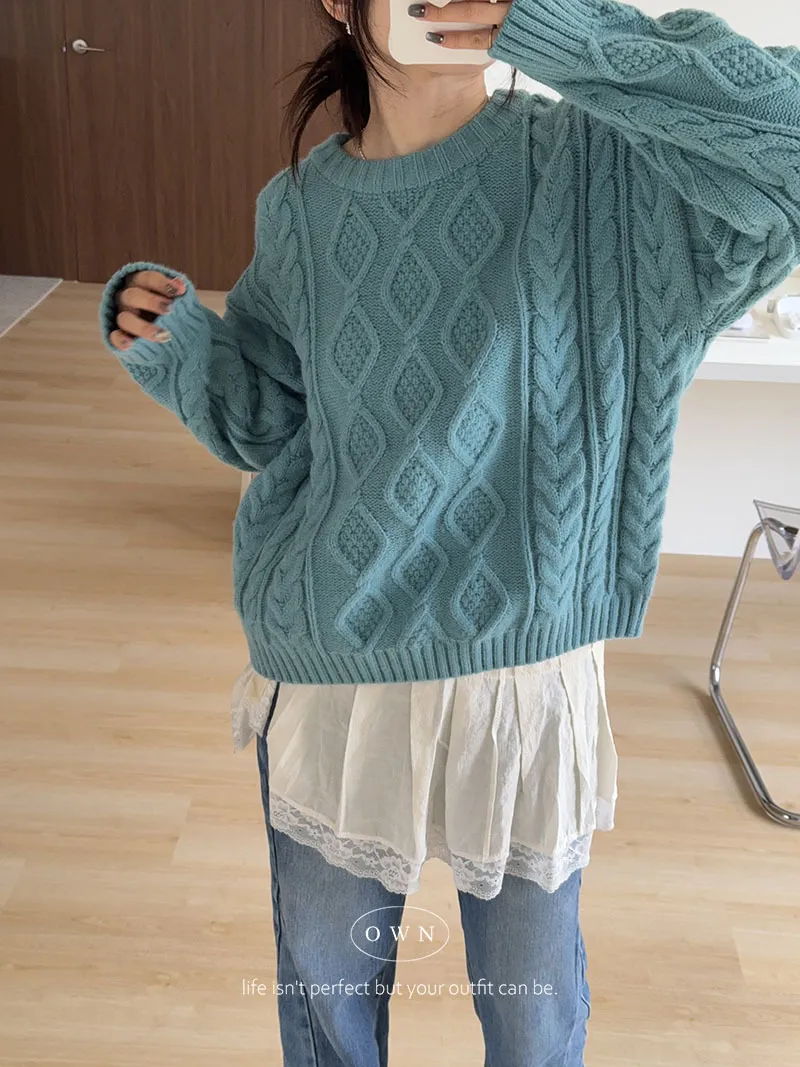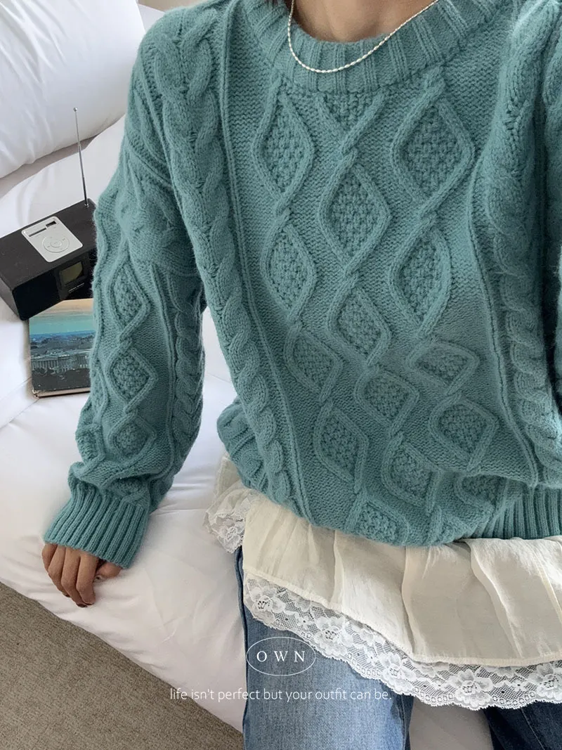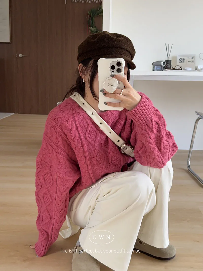 漂亮到發光 飽和色系立體菱格針織毛衣 2colors