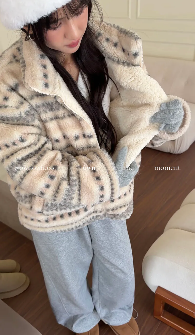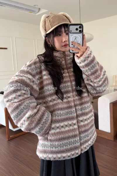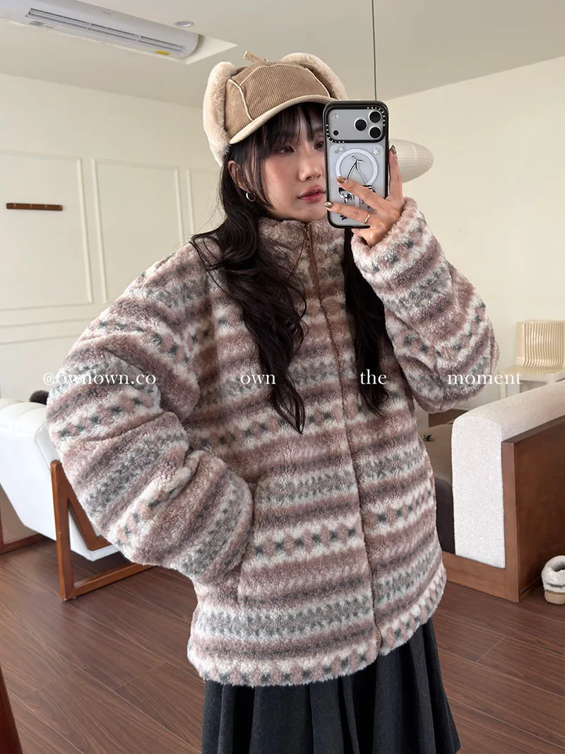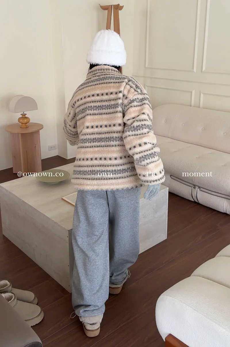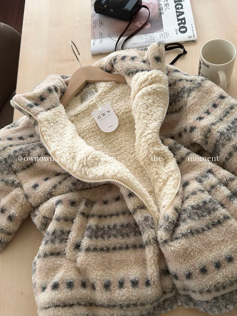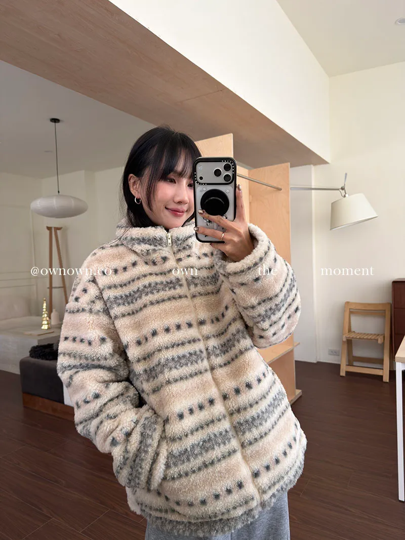 冬日氛圍 立領圖騰搖粒絨内刷毛外套 2colors