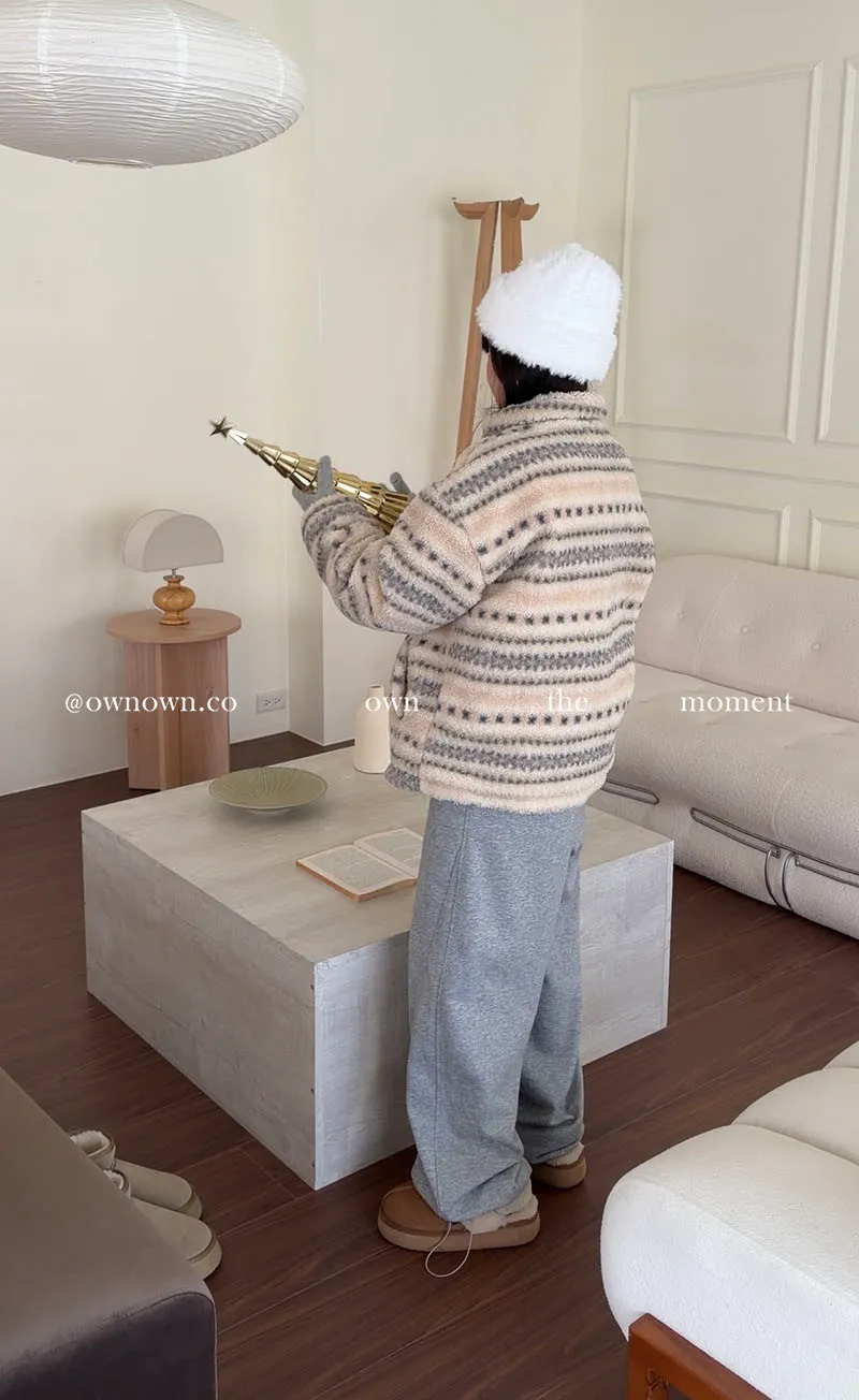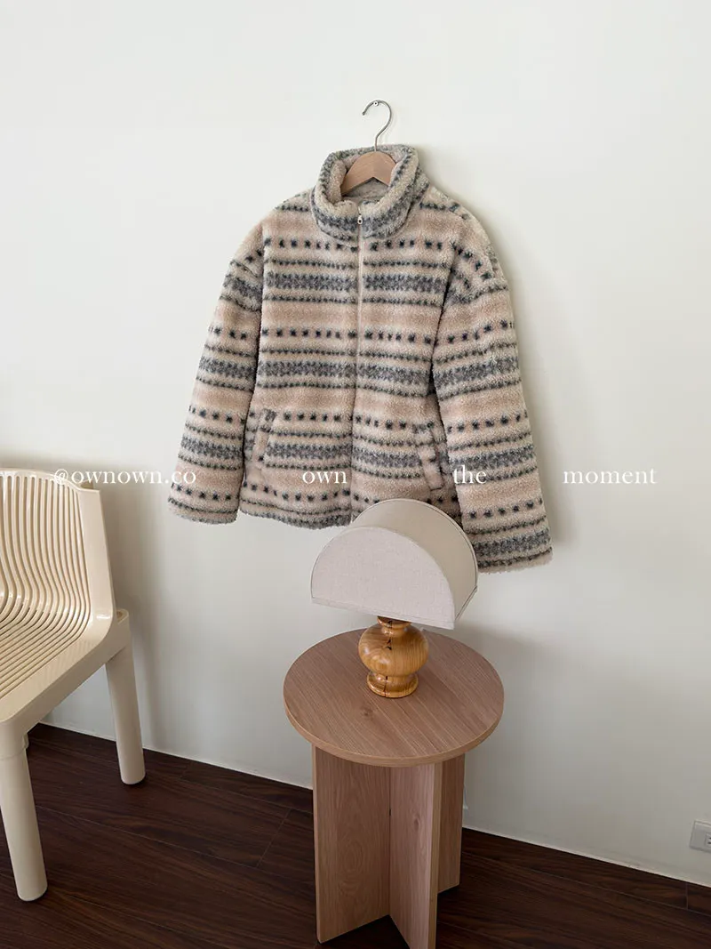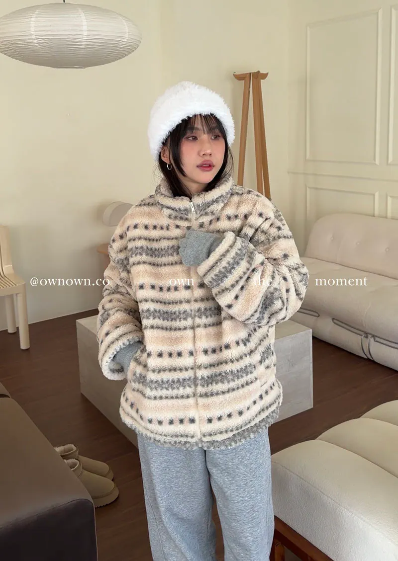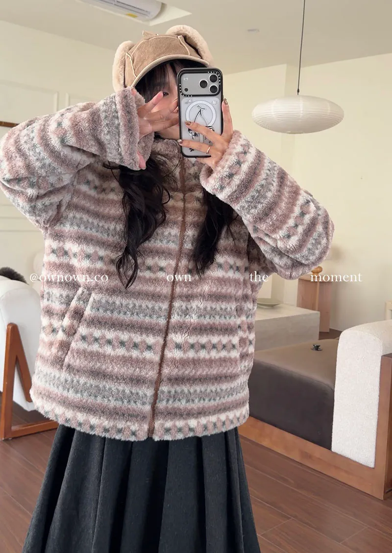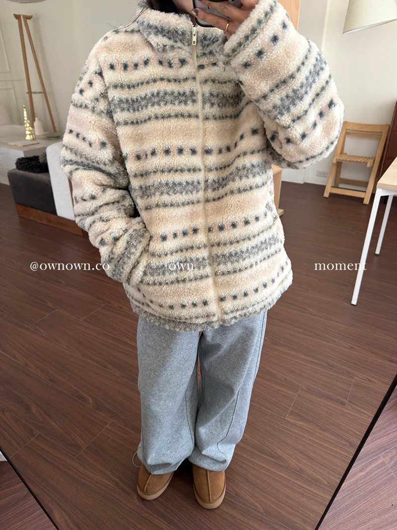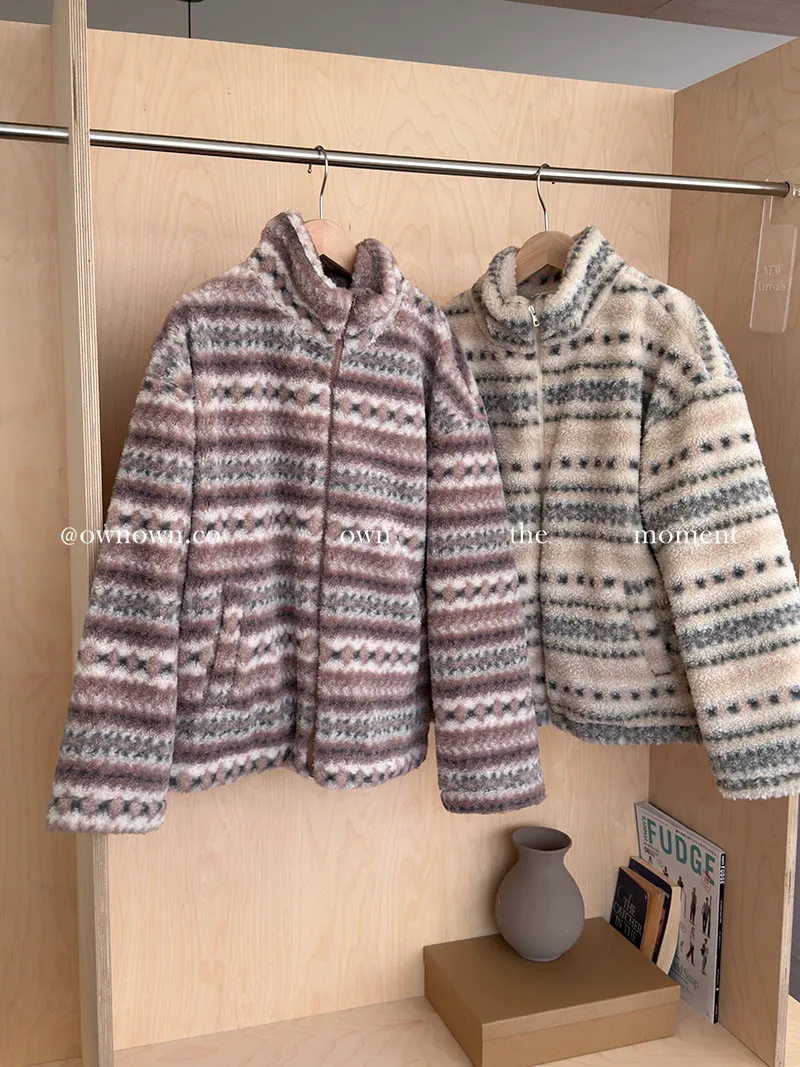 冬日氛圍 立領圖騰搖粒絨内刷毛外套 2colors
