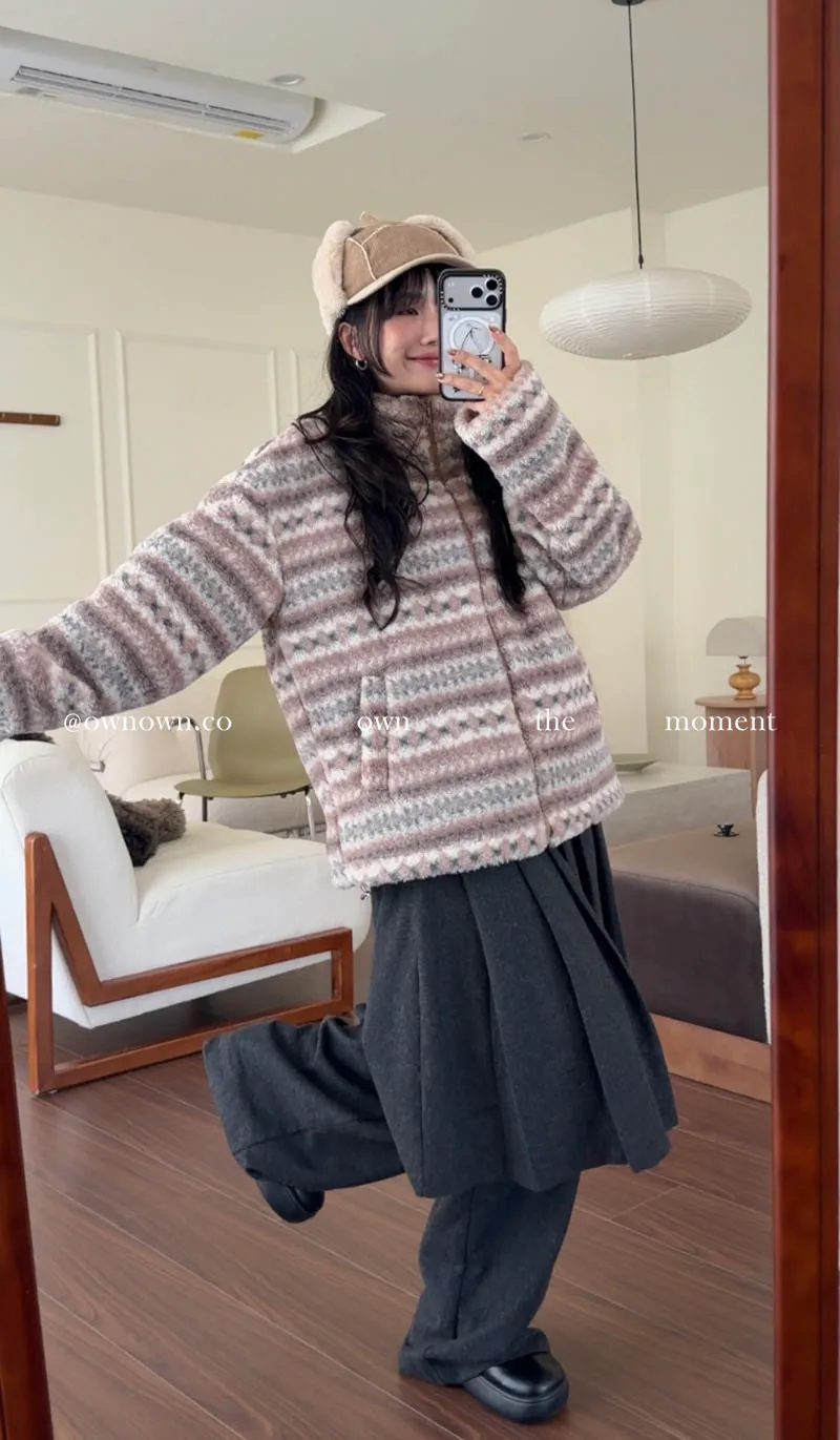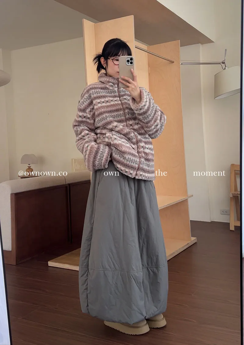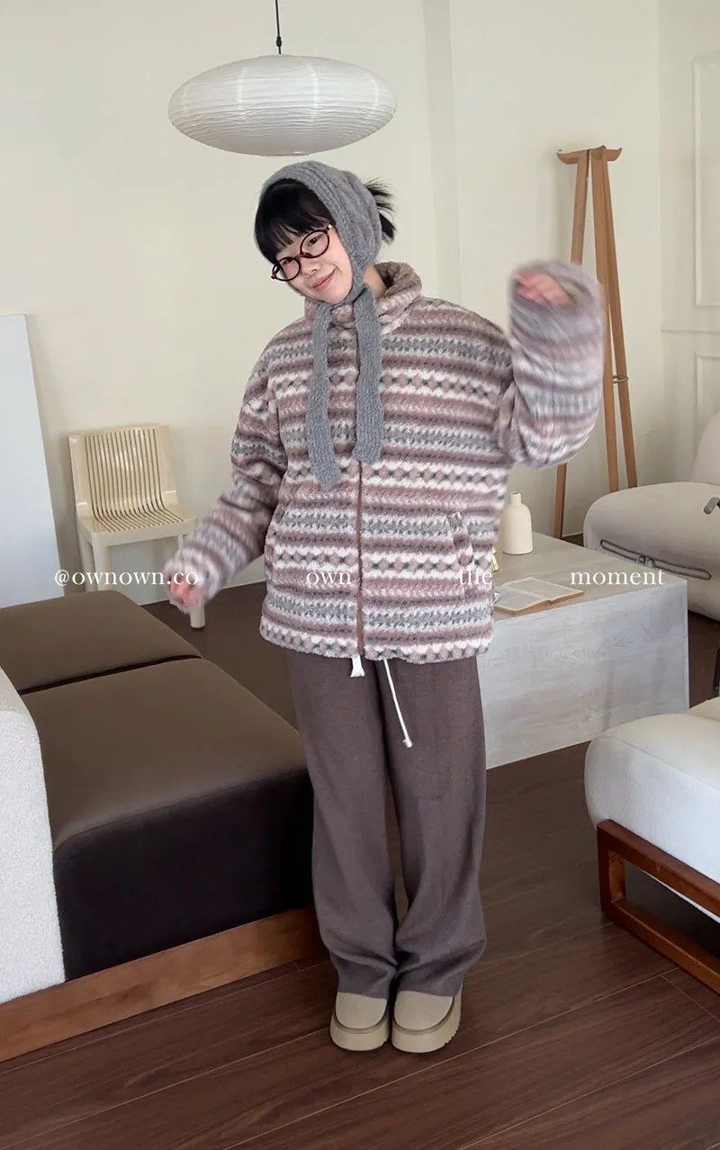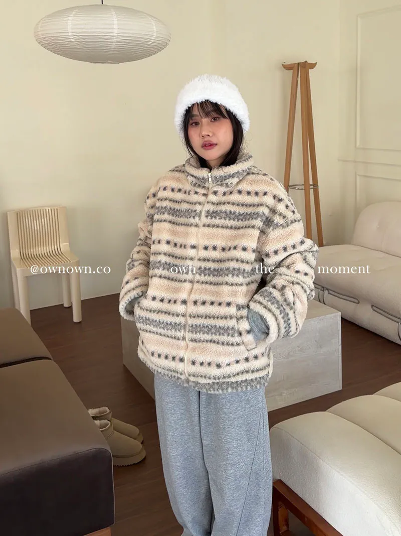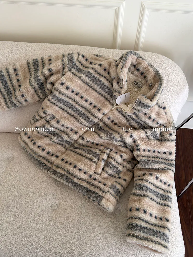 冬日氛圍 立領圖騰搖粒絨内刷毛外套 2colors