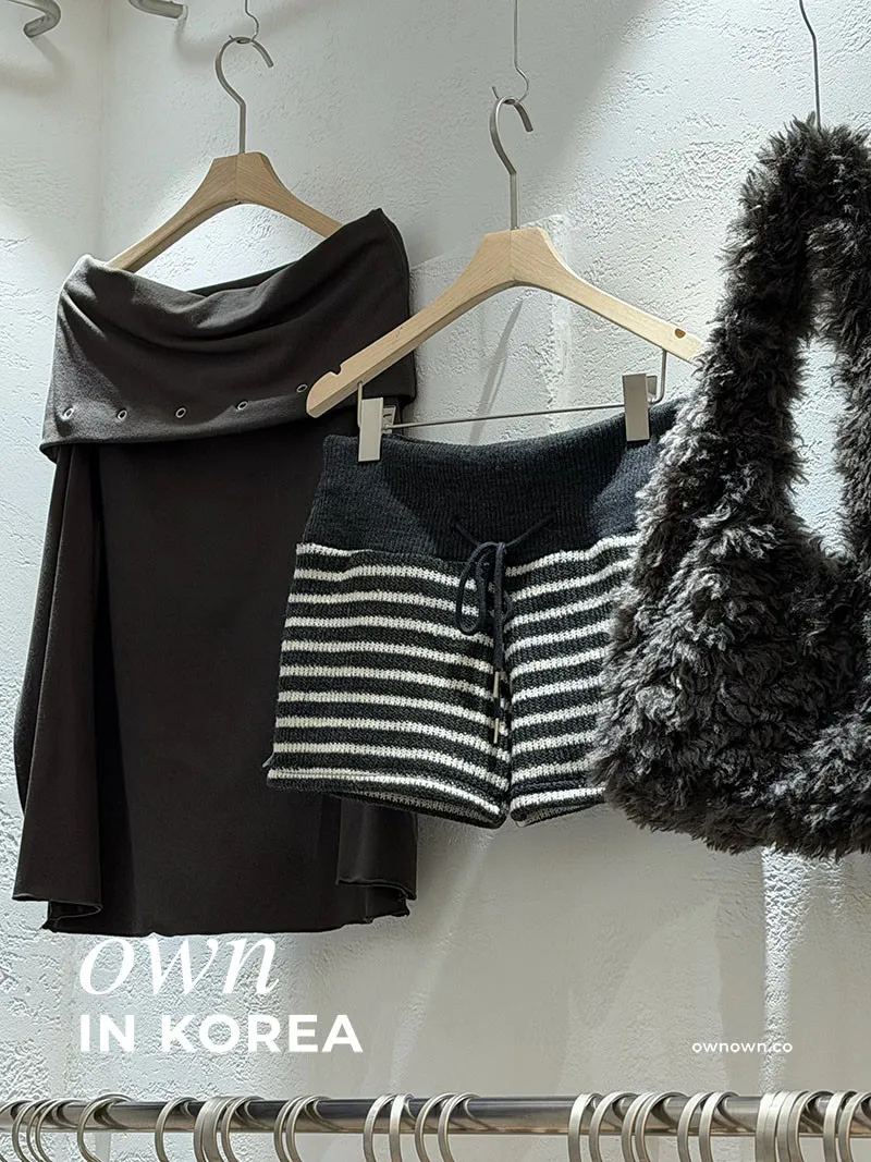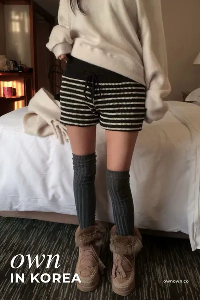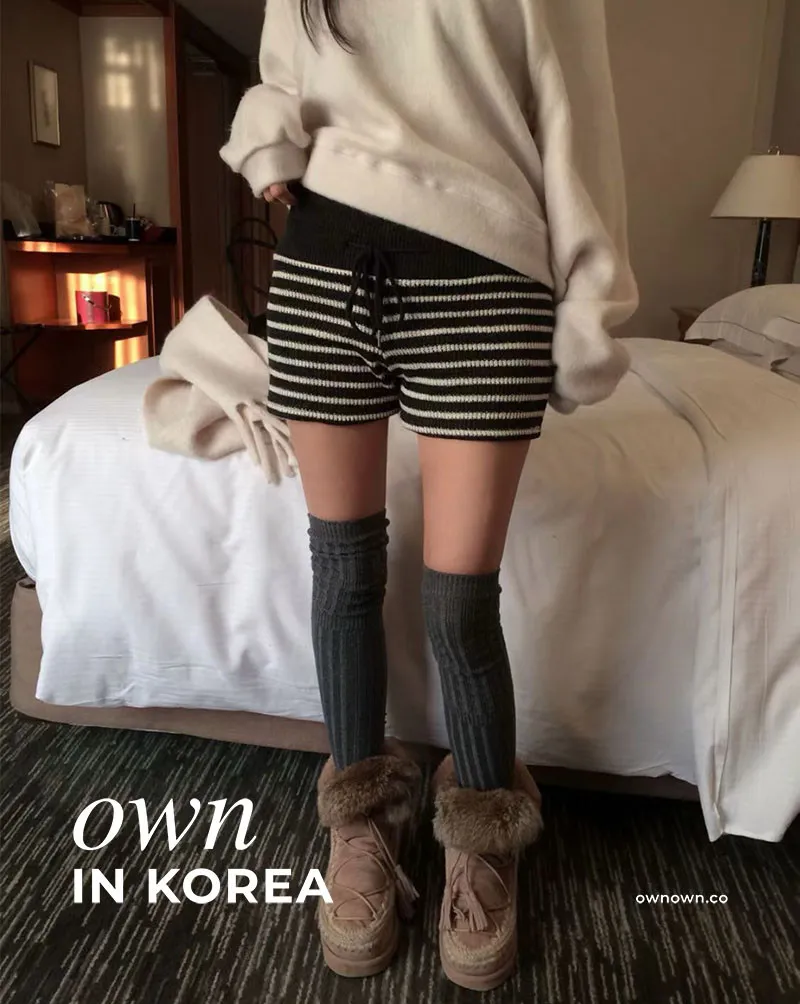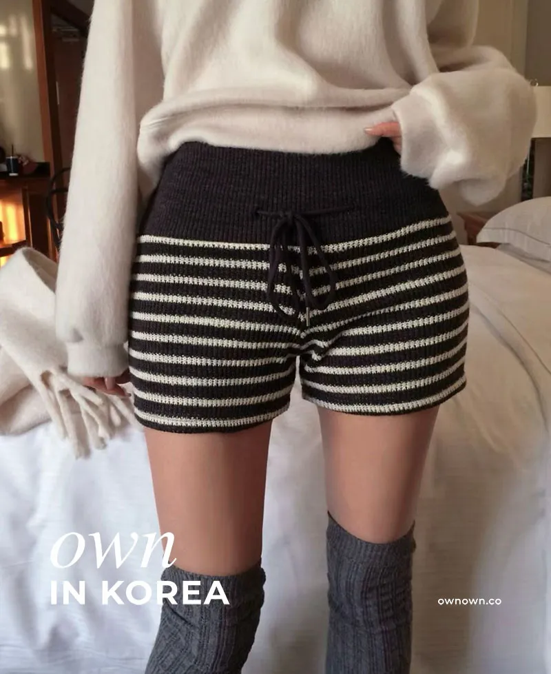 【正韓連線】冬天也要露腿 針織條紋短褲