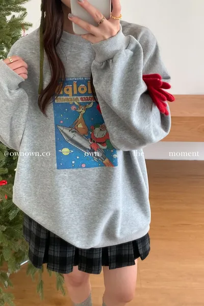 【2件組合價$888】Santa陪你過聖誕!寬鬆大學Tee