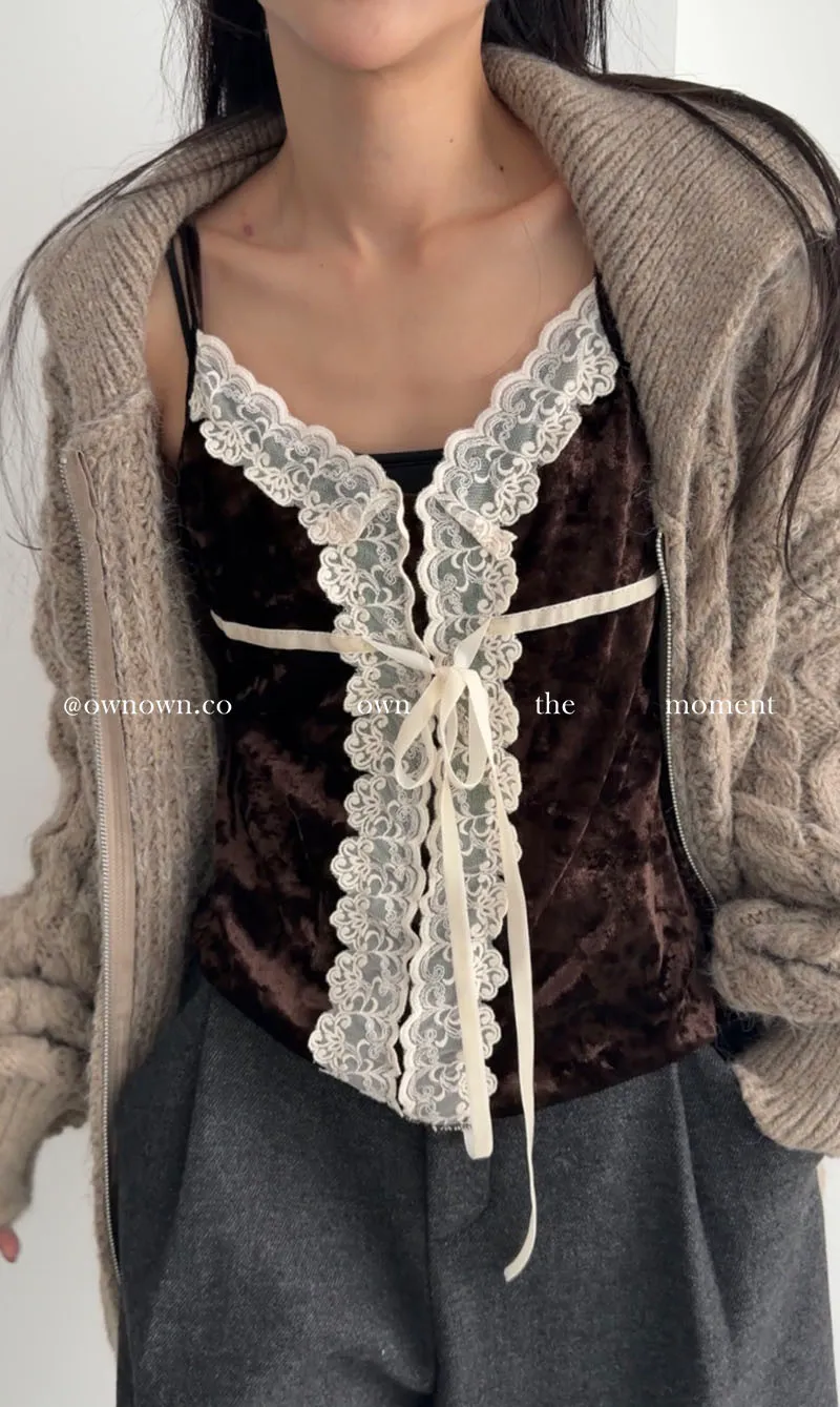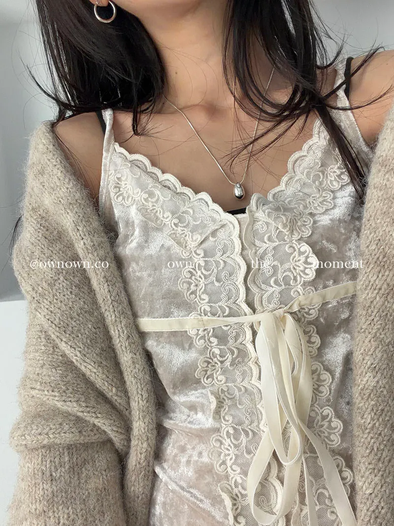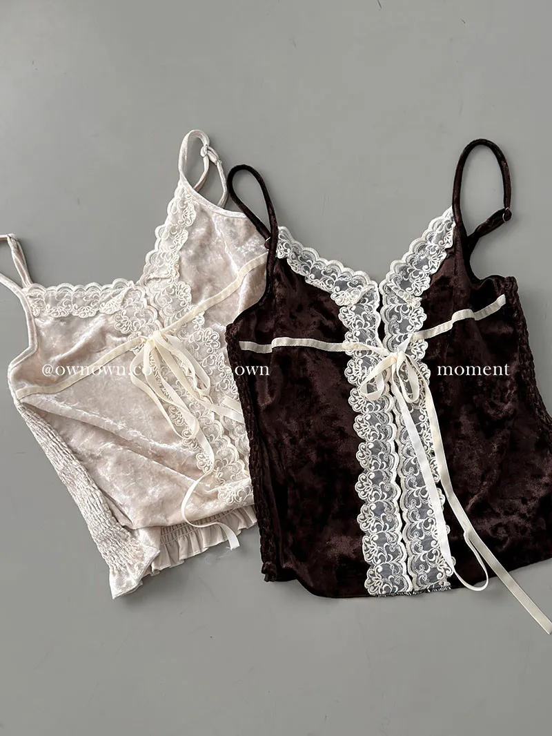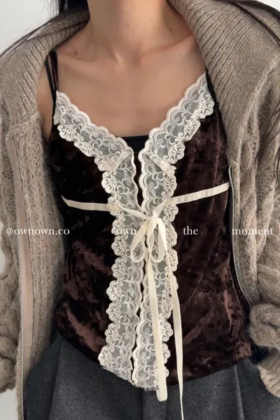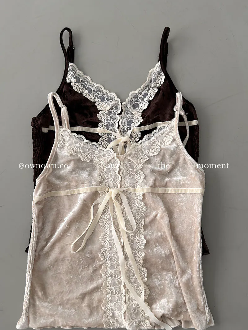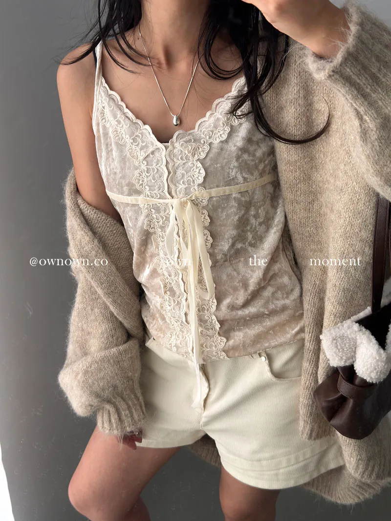 簡約又吸睛 蕾絲綁帶細肩背心 2colors