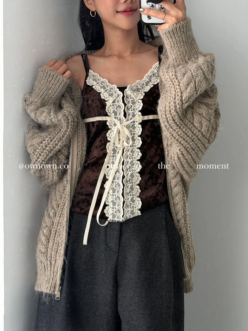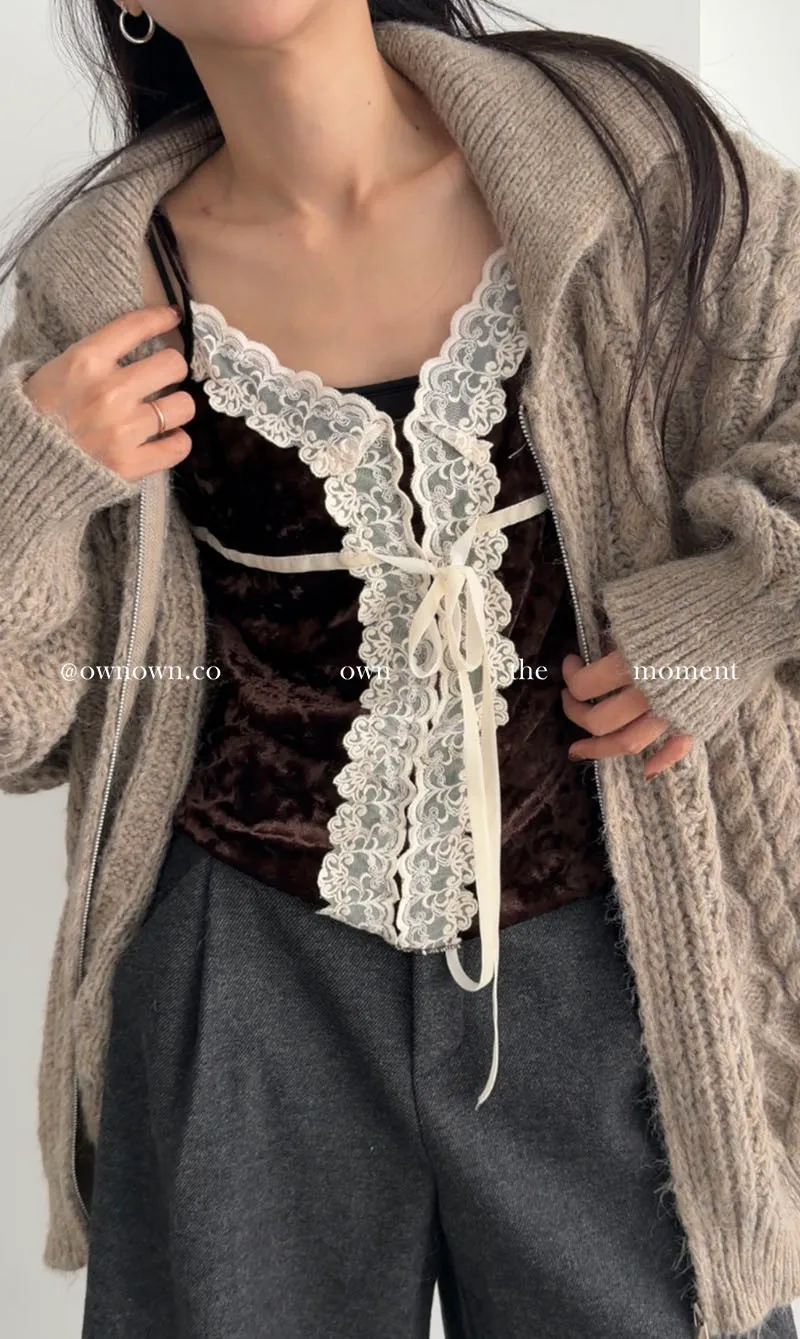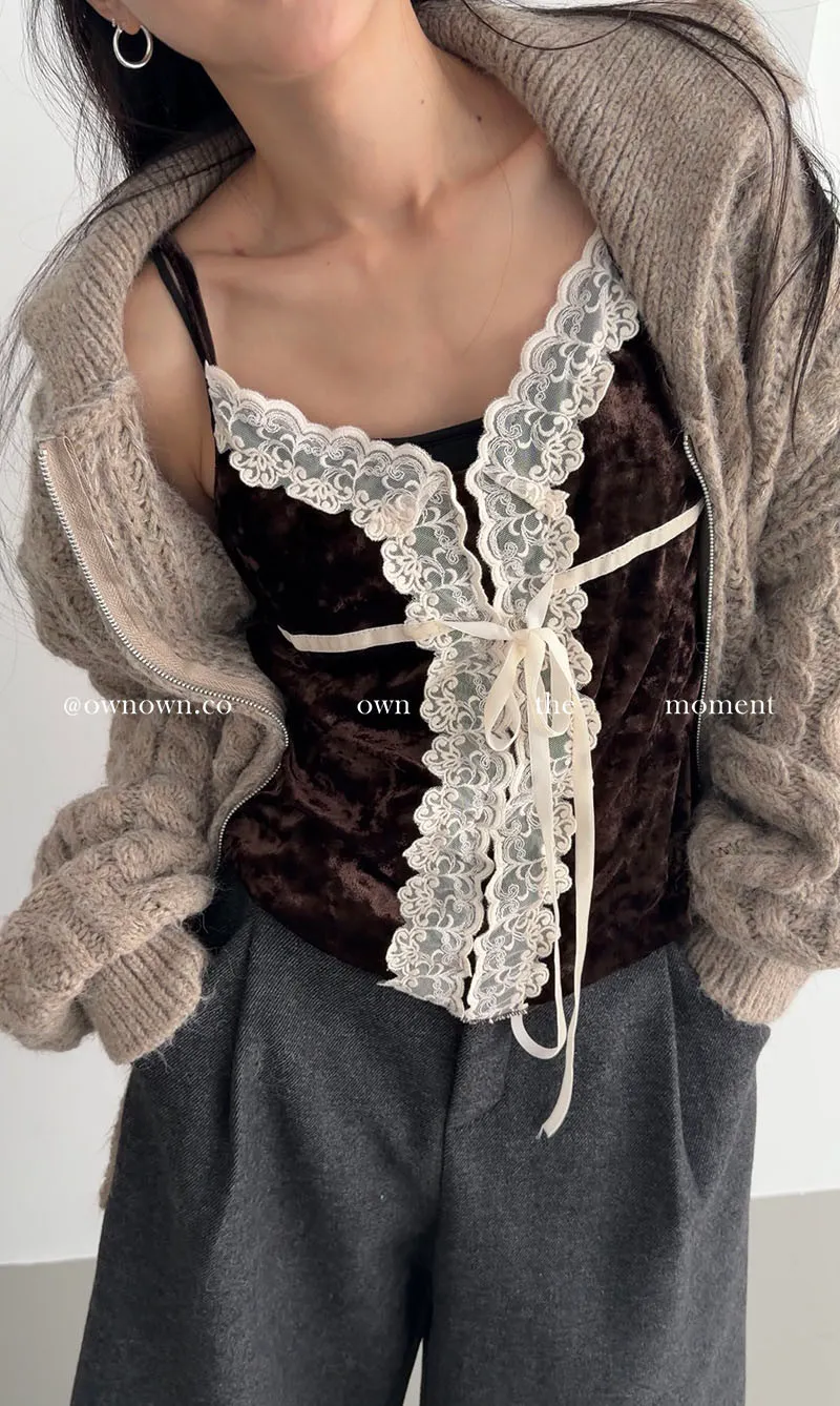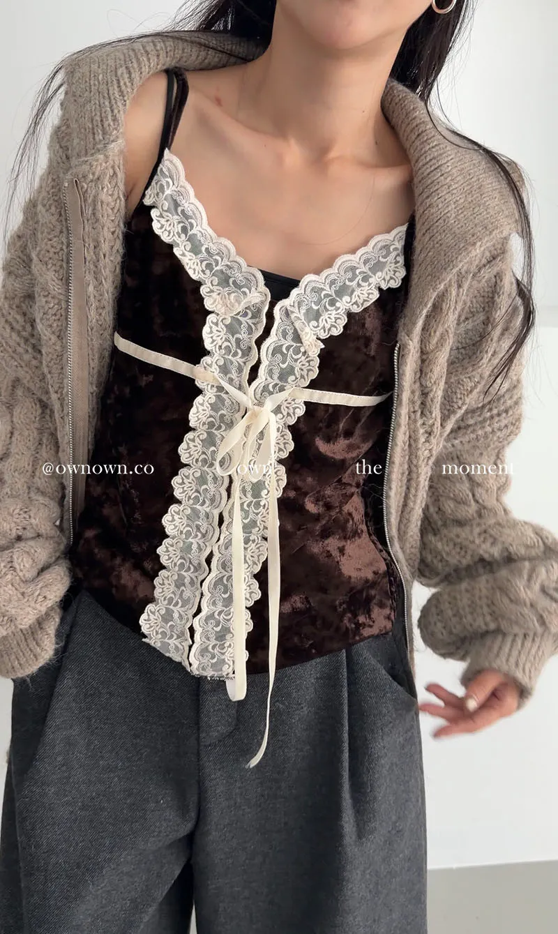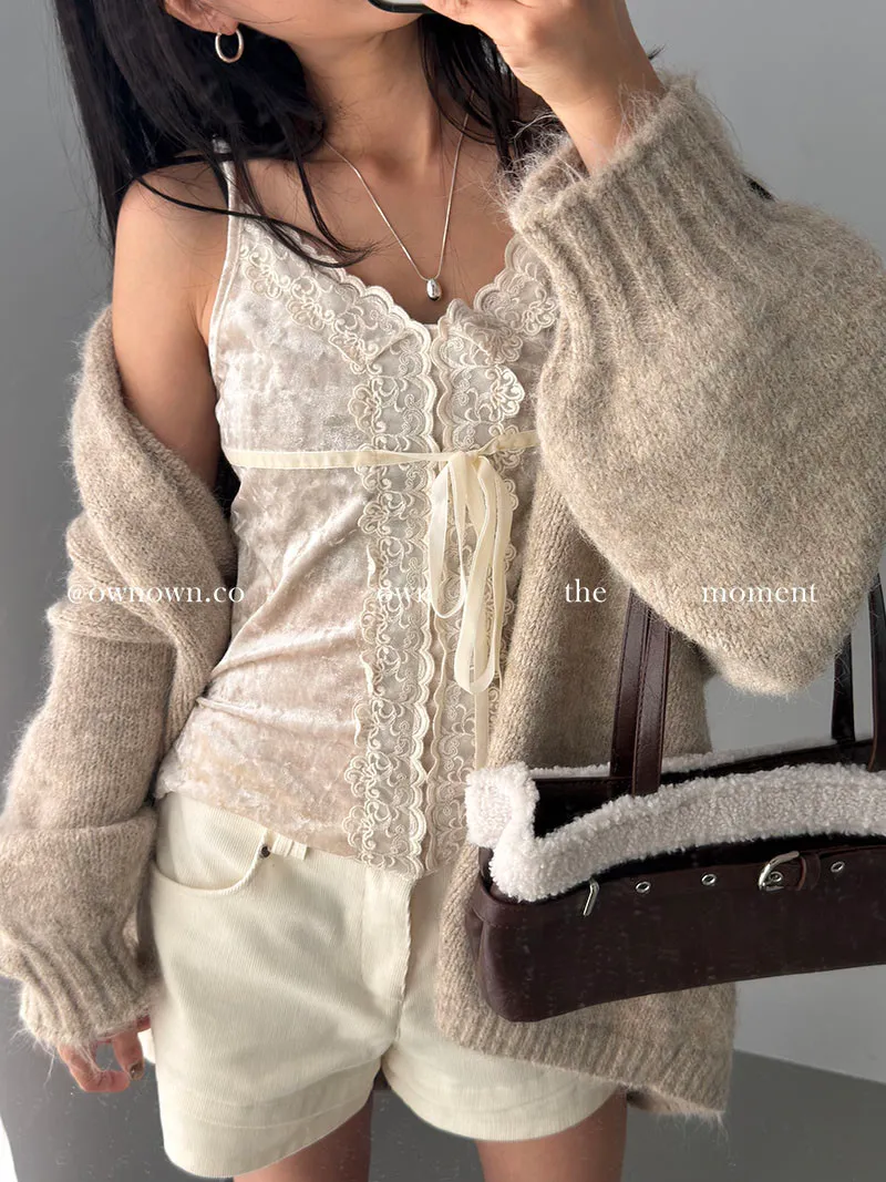 簡約又吸睛 蕾絲綁帶細肩背心 2colors
