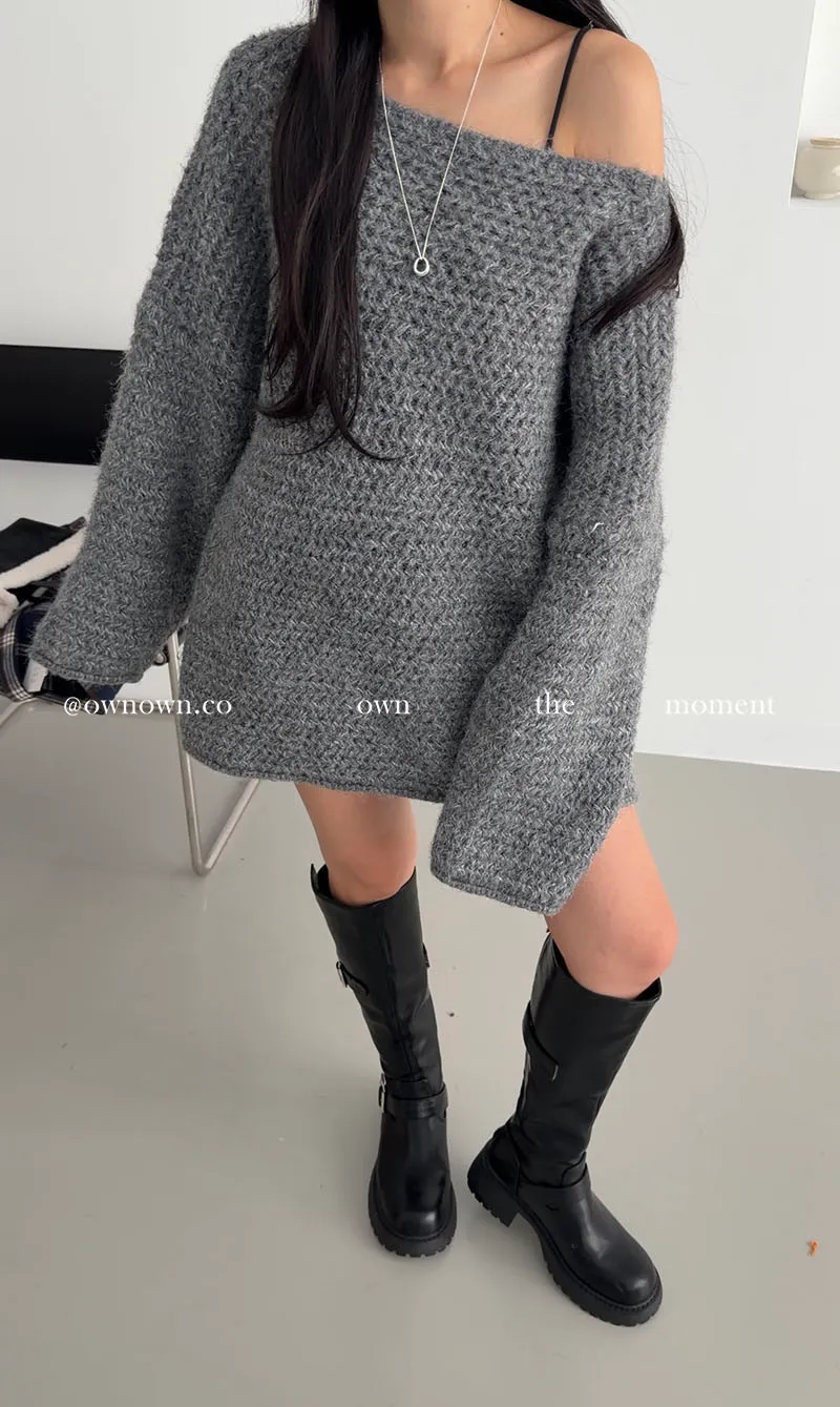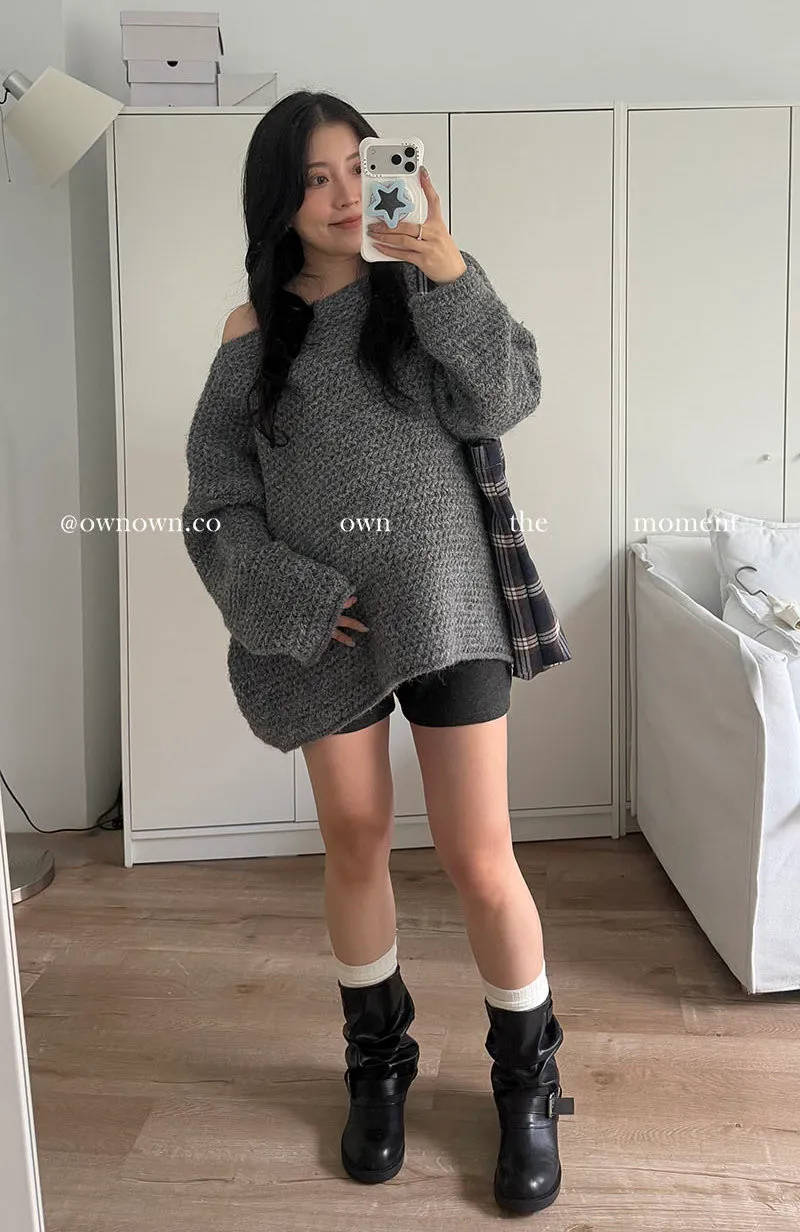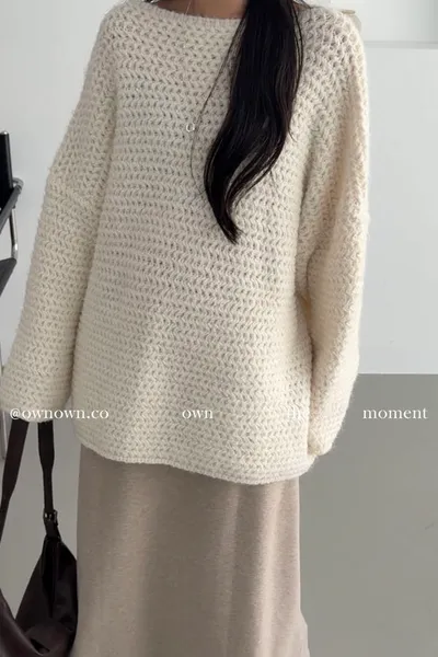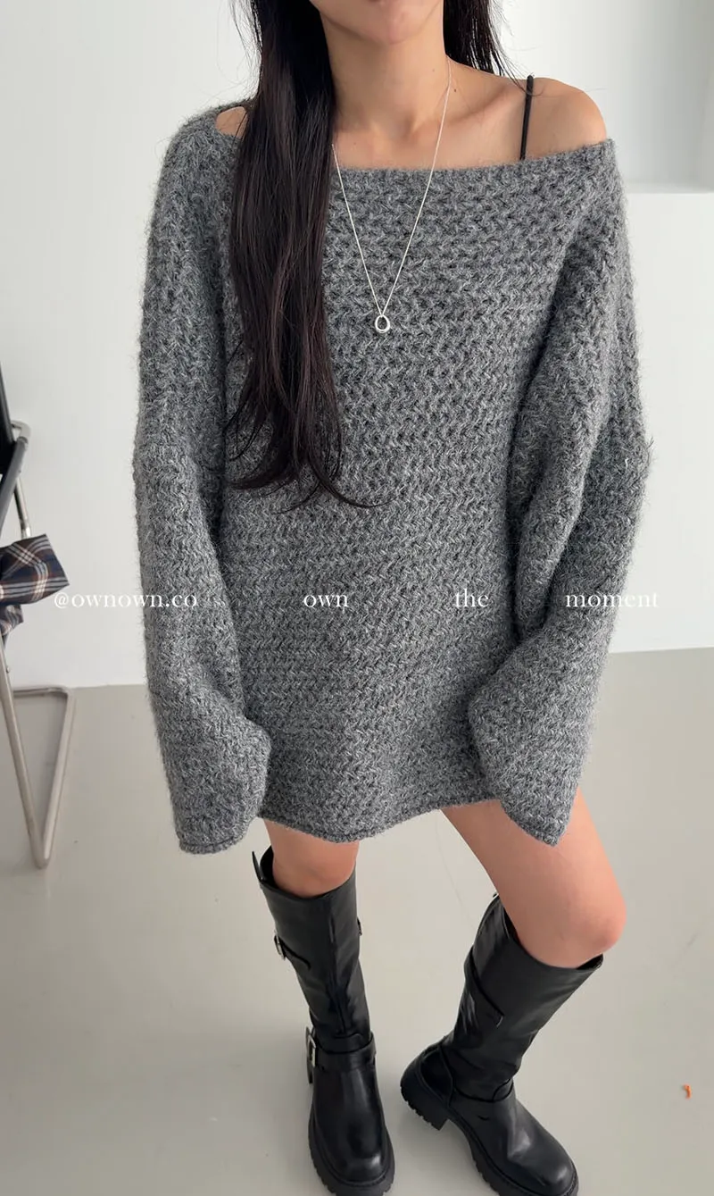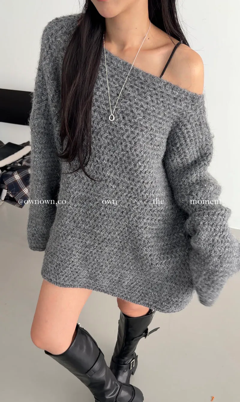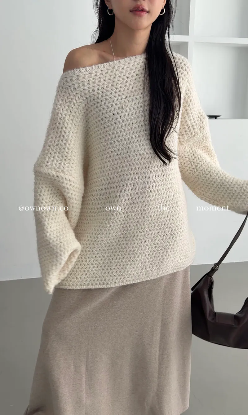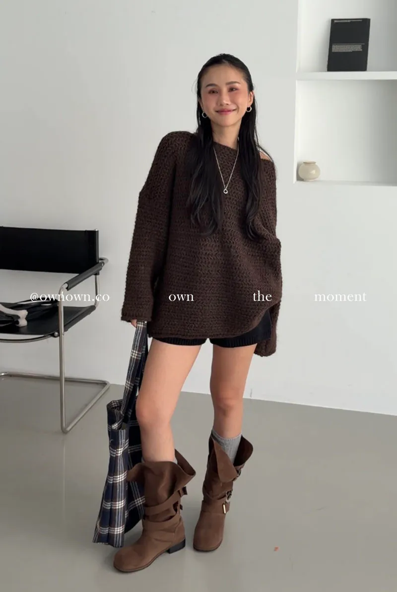慵懶感爆棚 一字領寬袖粗織毛衣 3colors