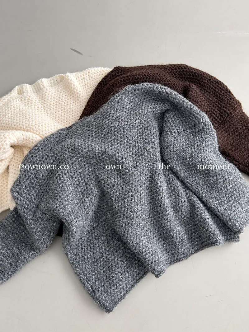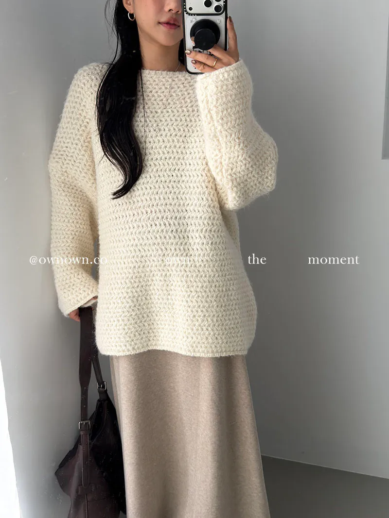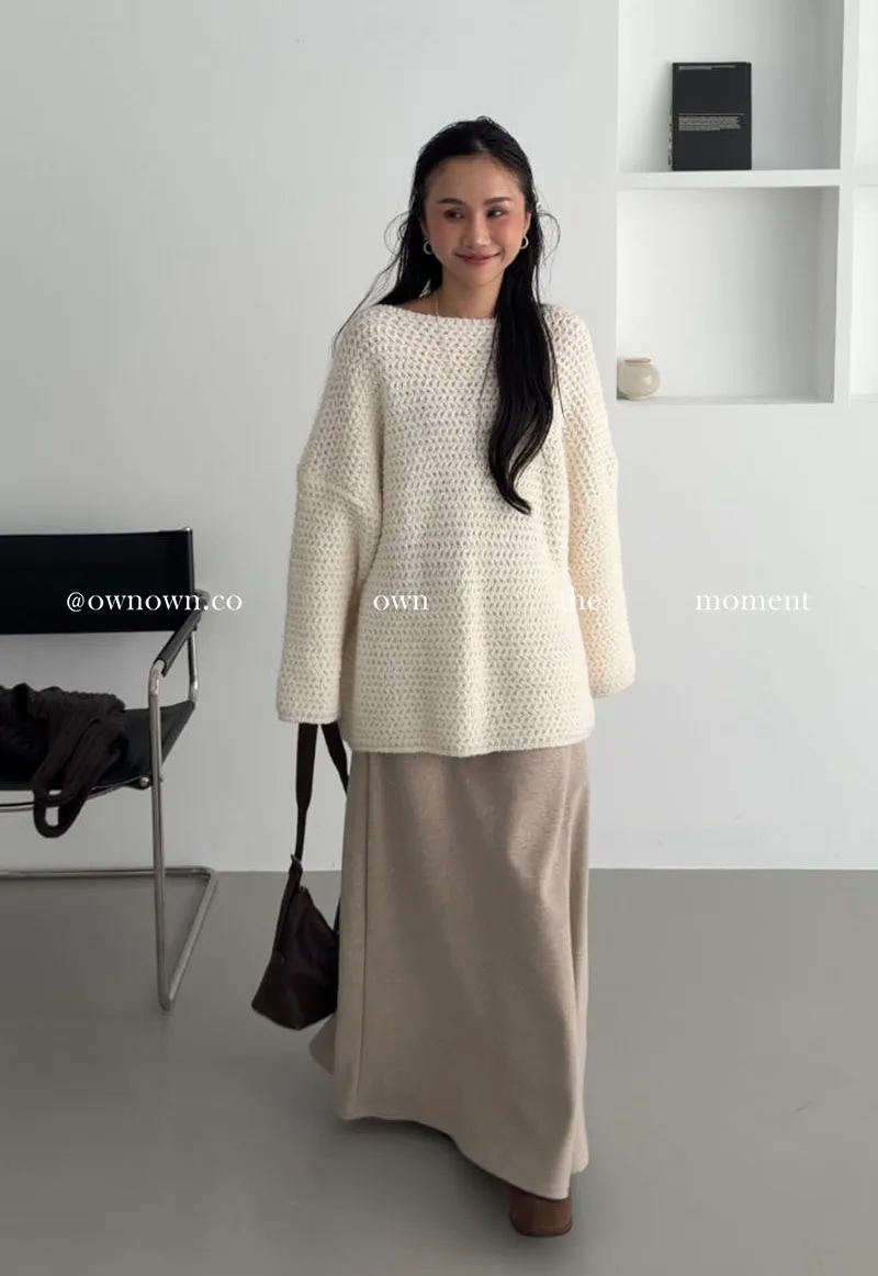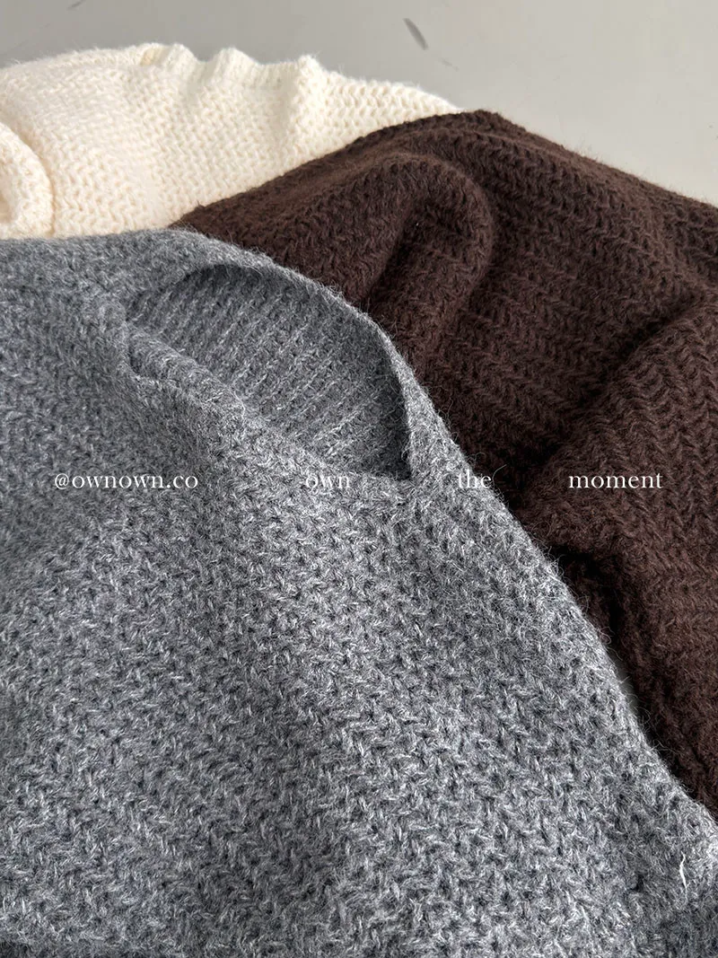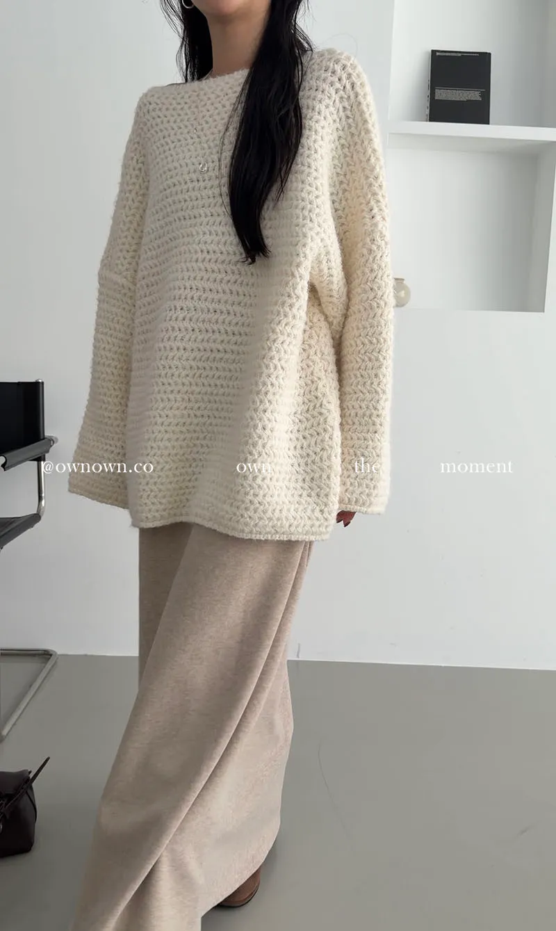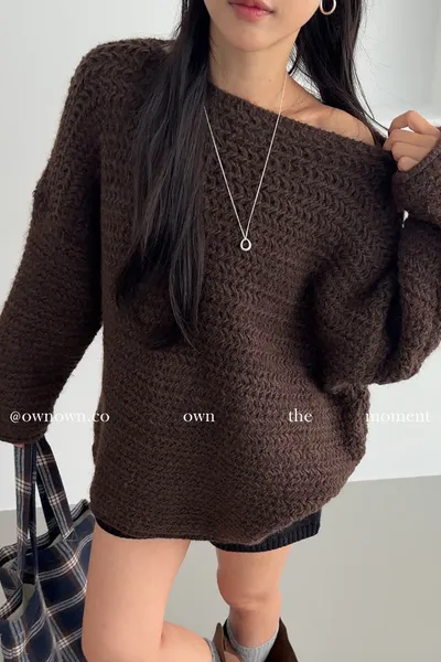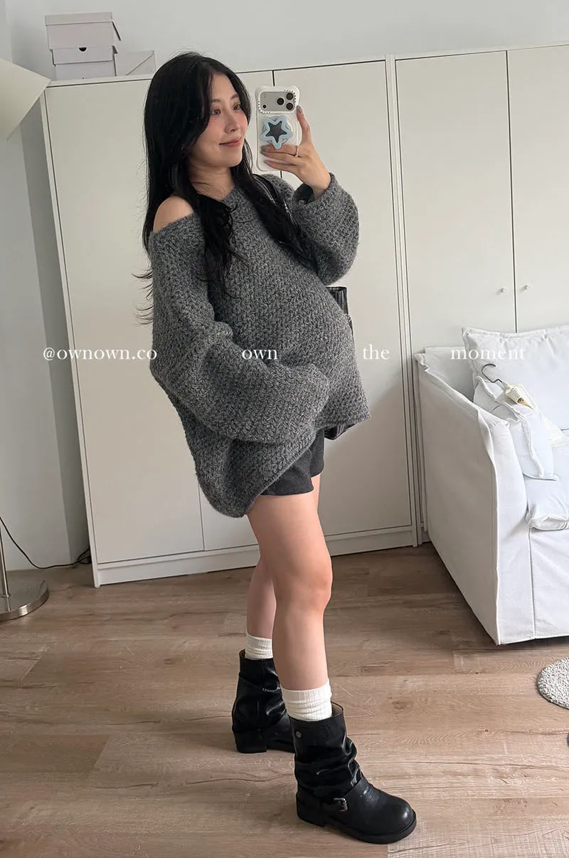 慵懶感爆棚 一字領寬袖粗織毛衣 3colors