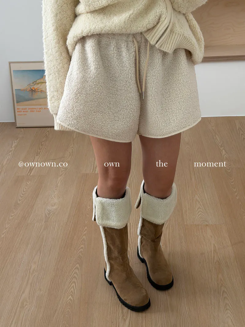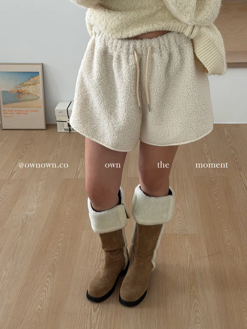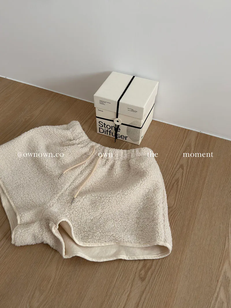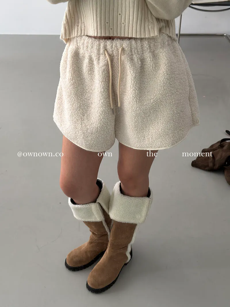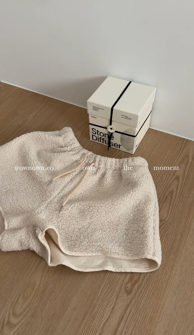 奶呼呼!羊羔毛鬆緊抽繩短褲