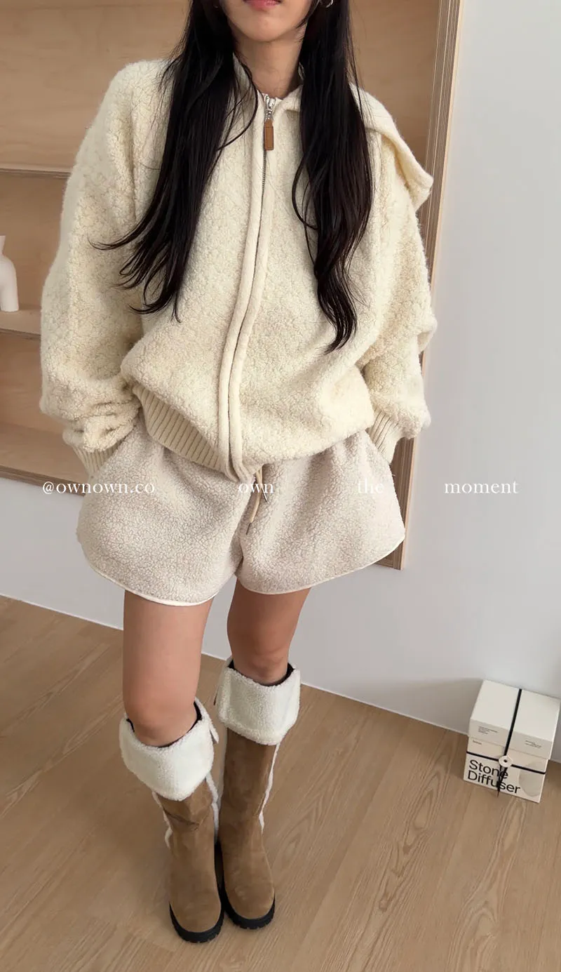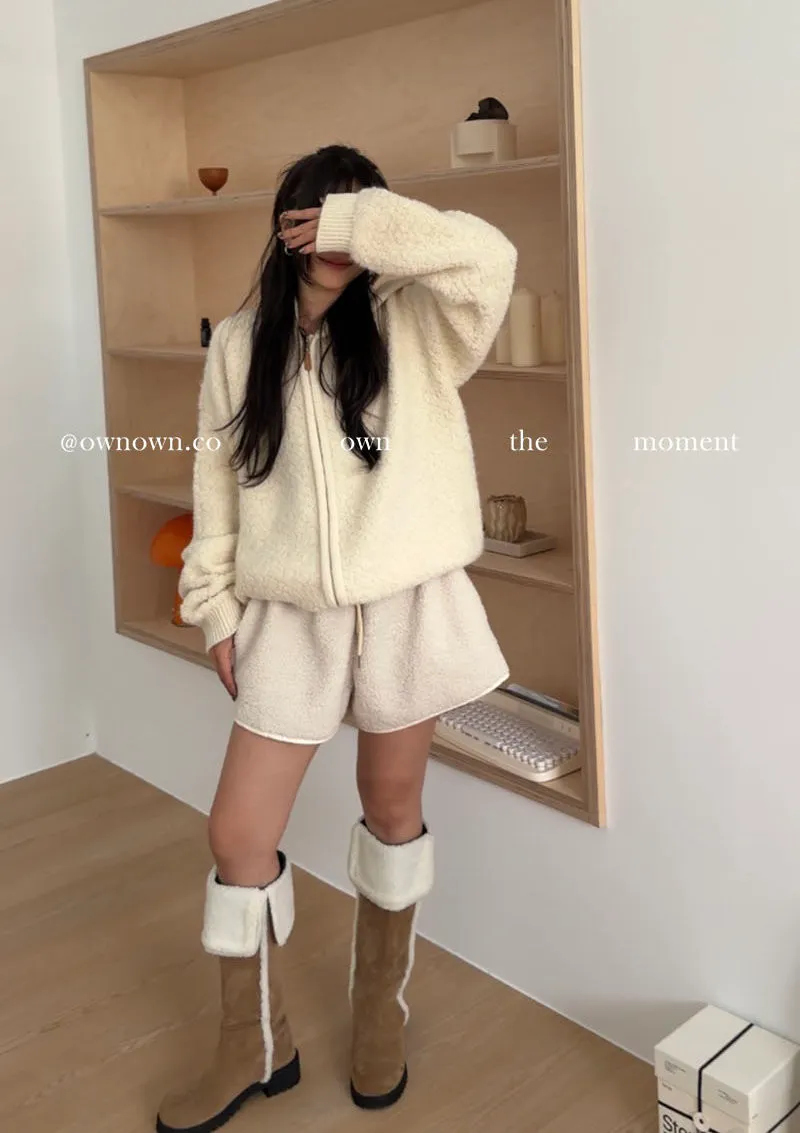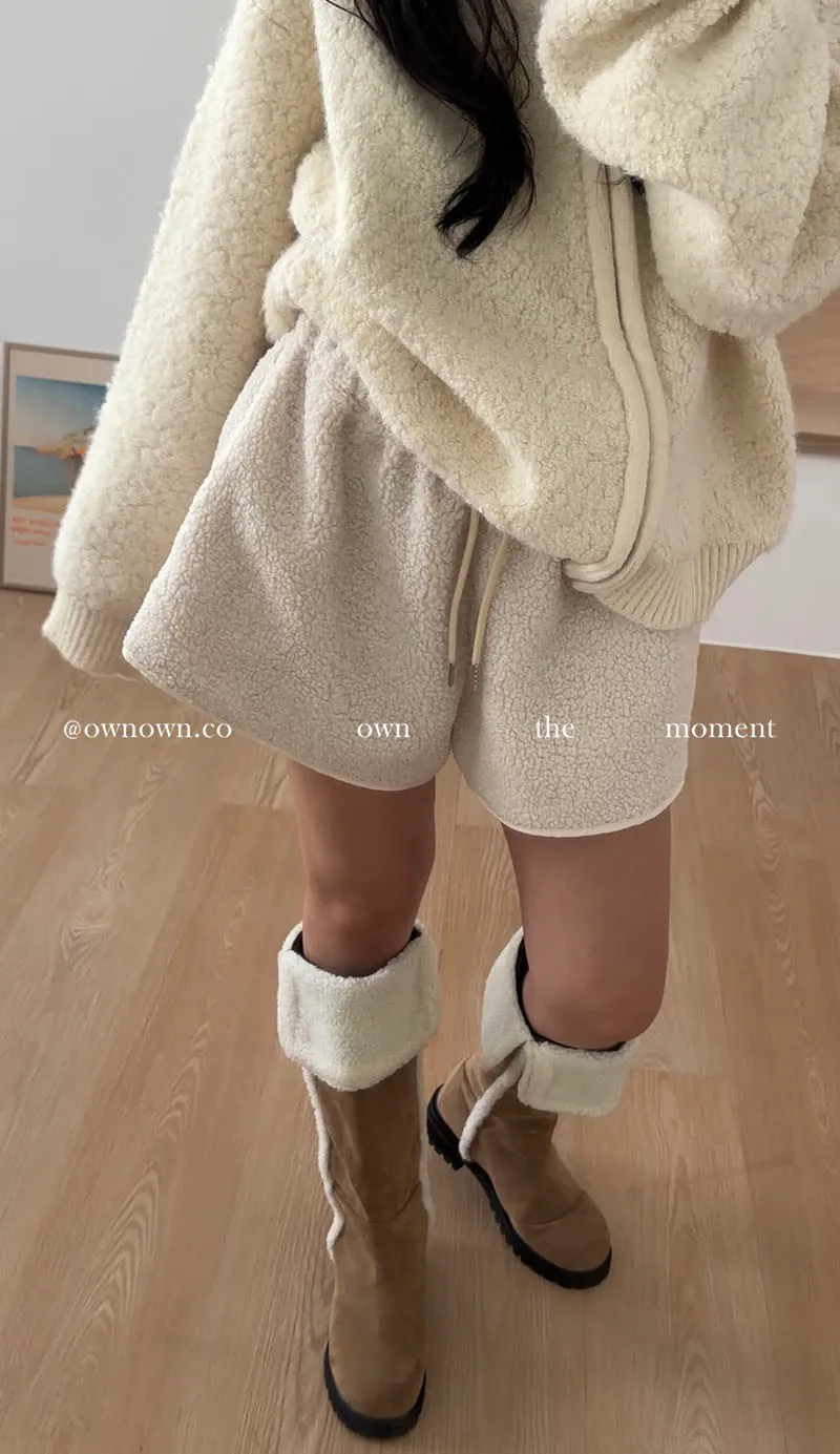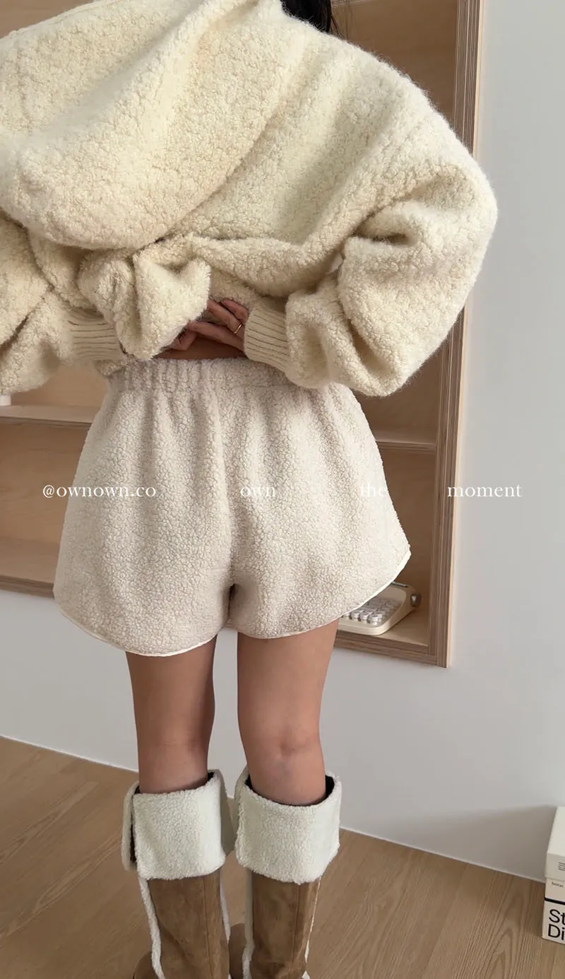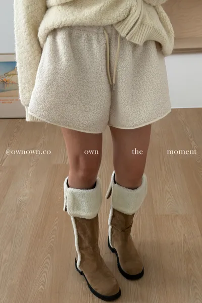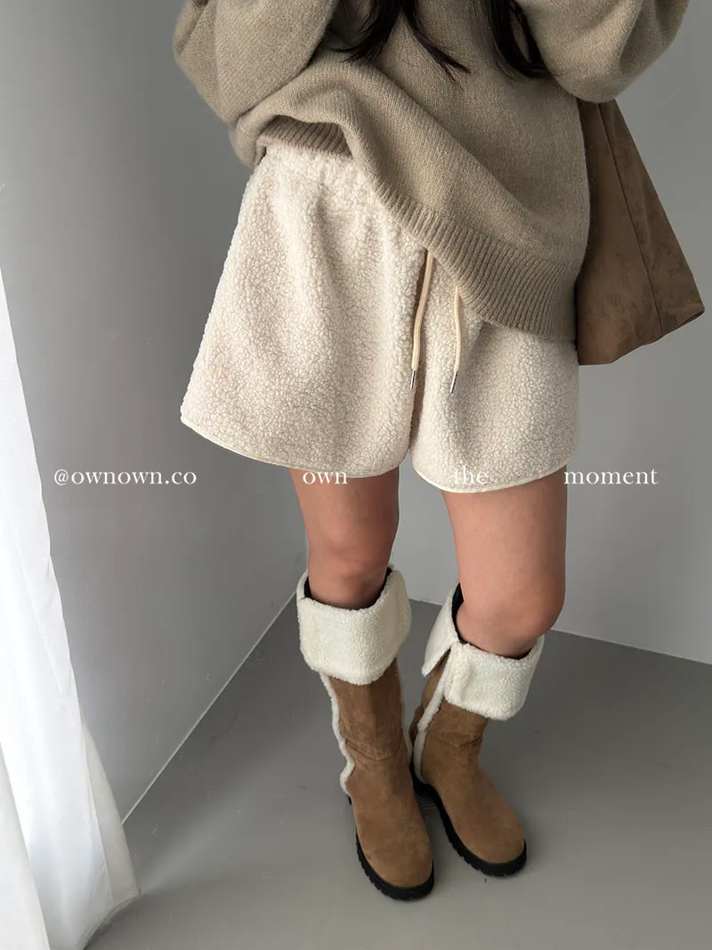 奶呼呼!羊羔毛鬆緊抽繩短褲