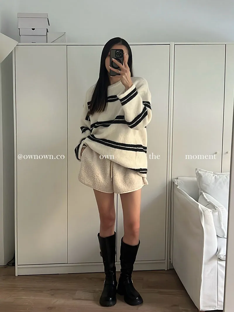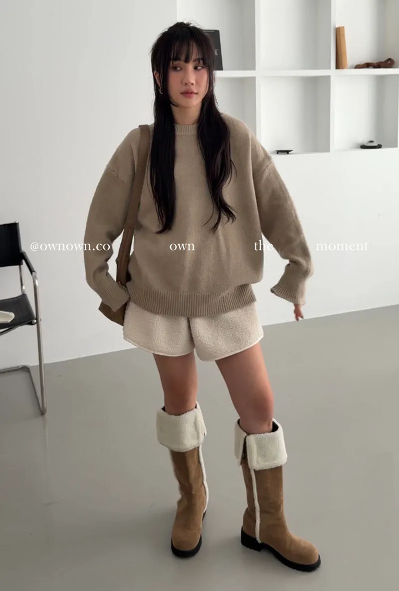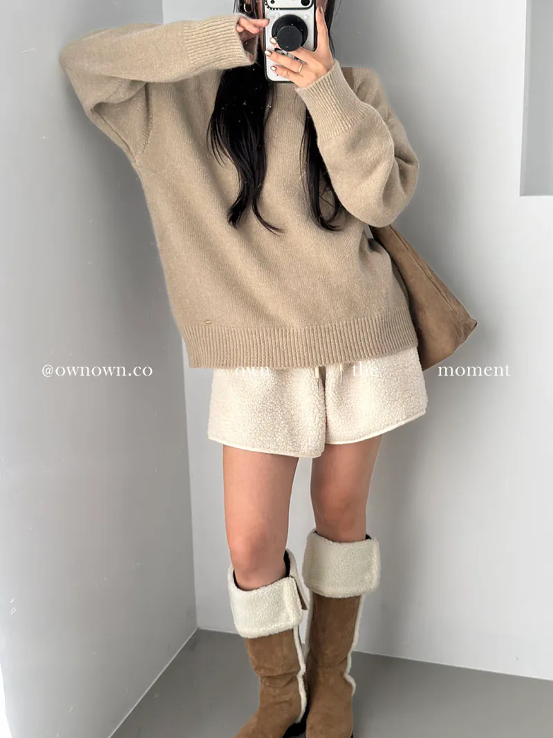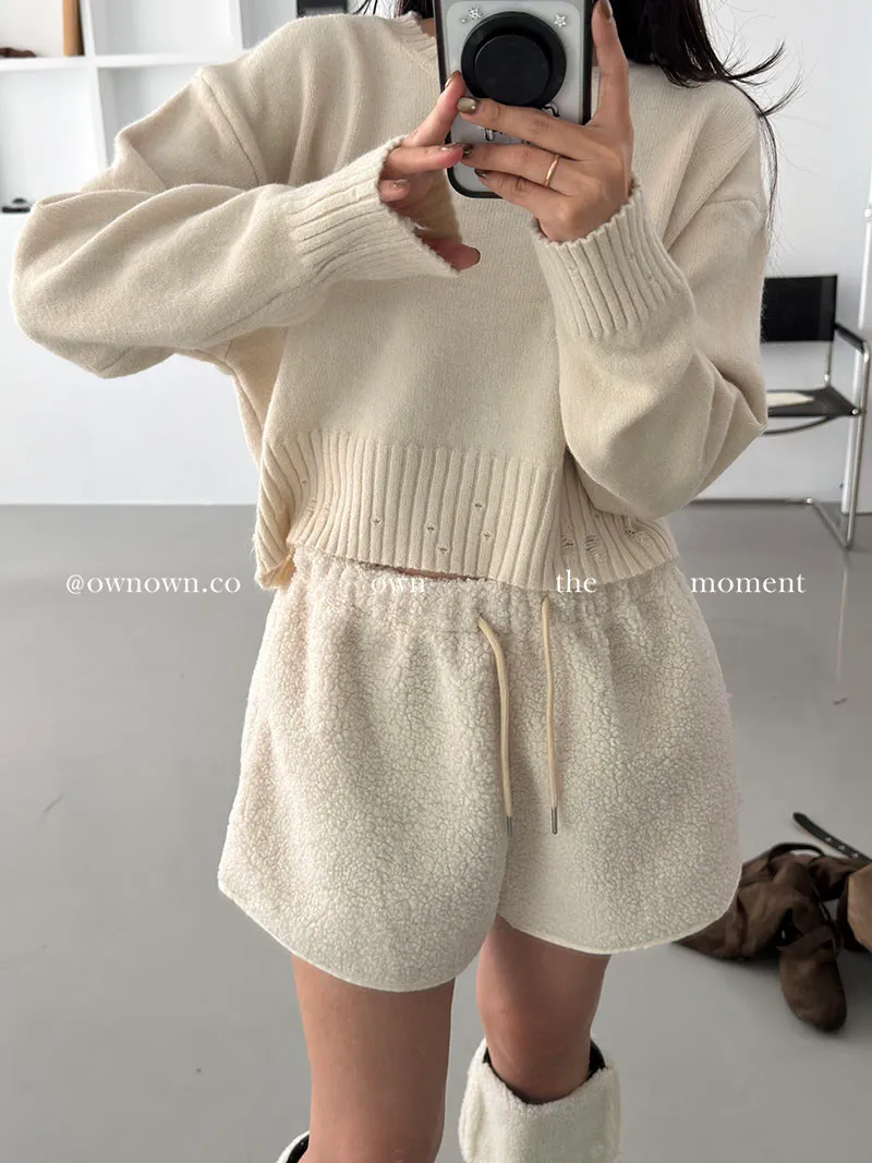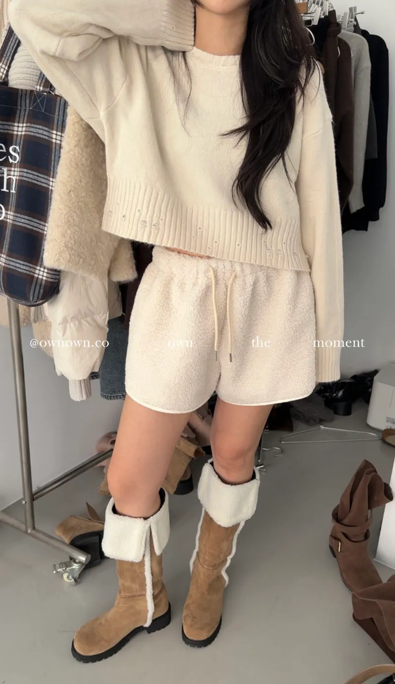 奶呼呼!羊羔毛鬆緊抽繩短褲