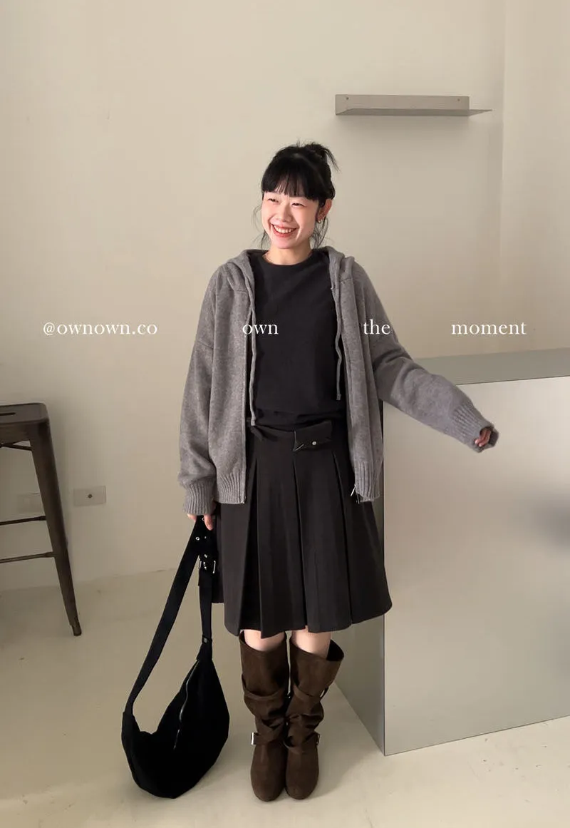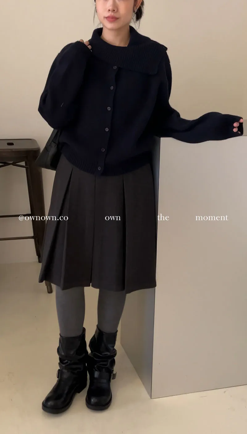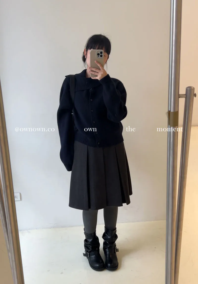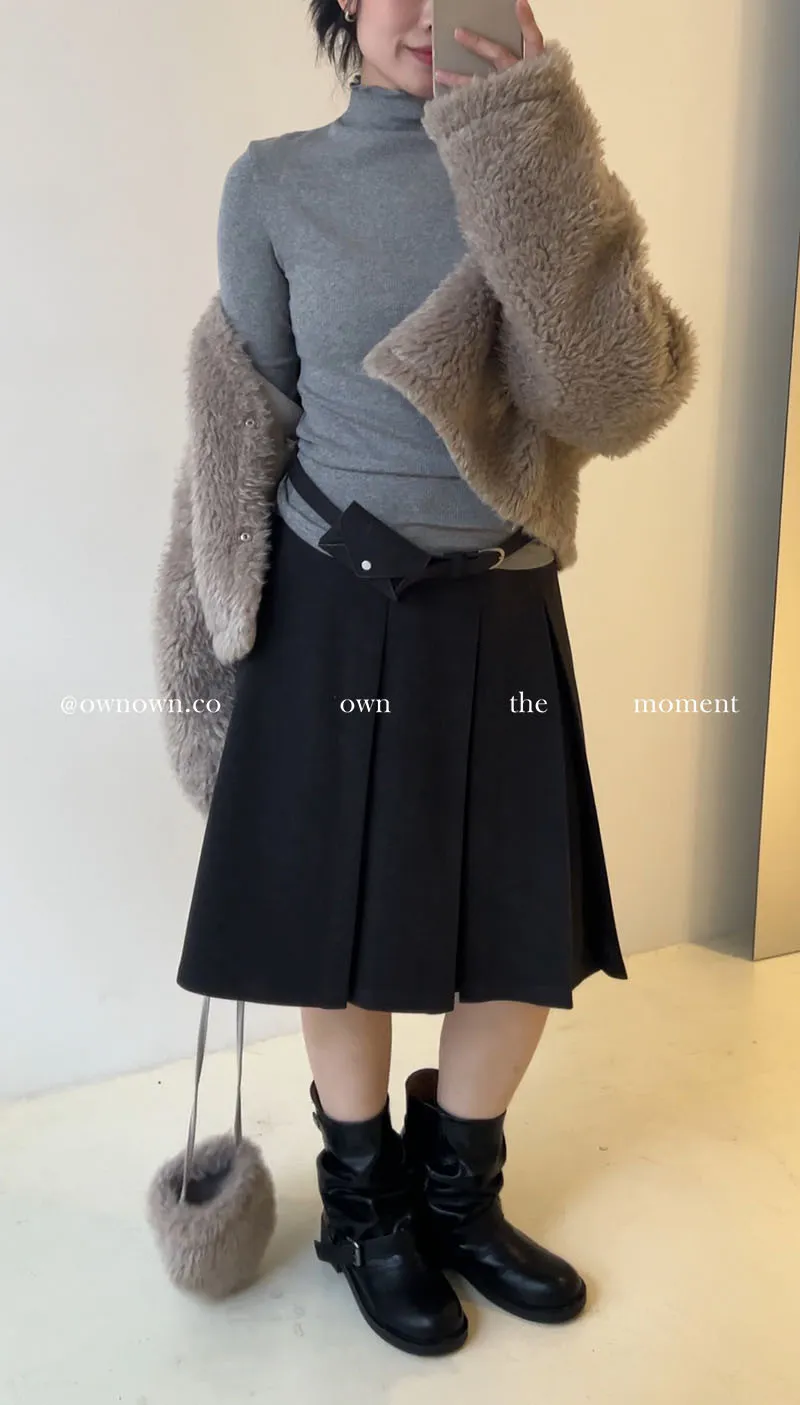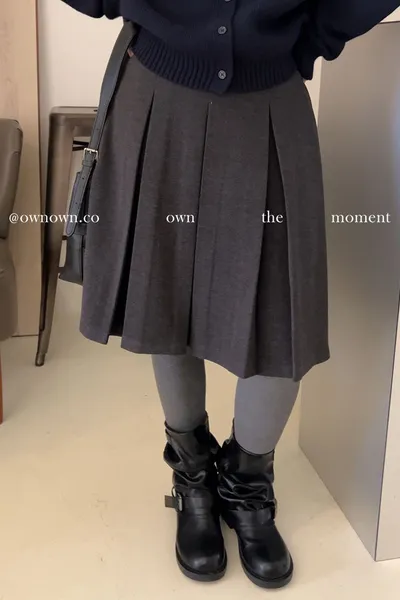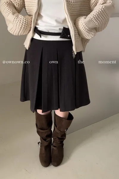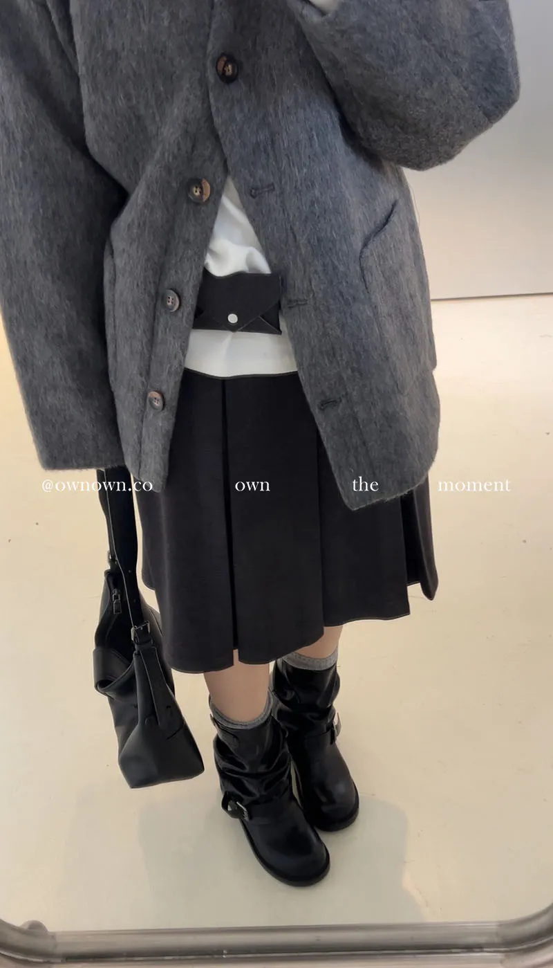 穿搭質感加分 打褶毛呢五分裙 2colors S/M/L