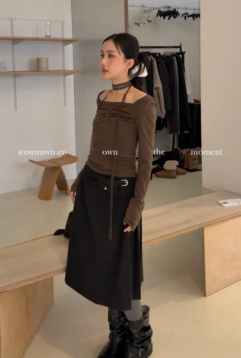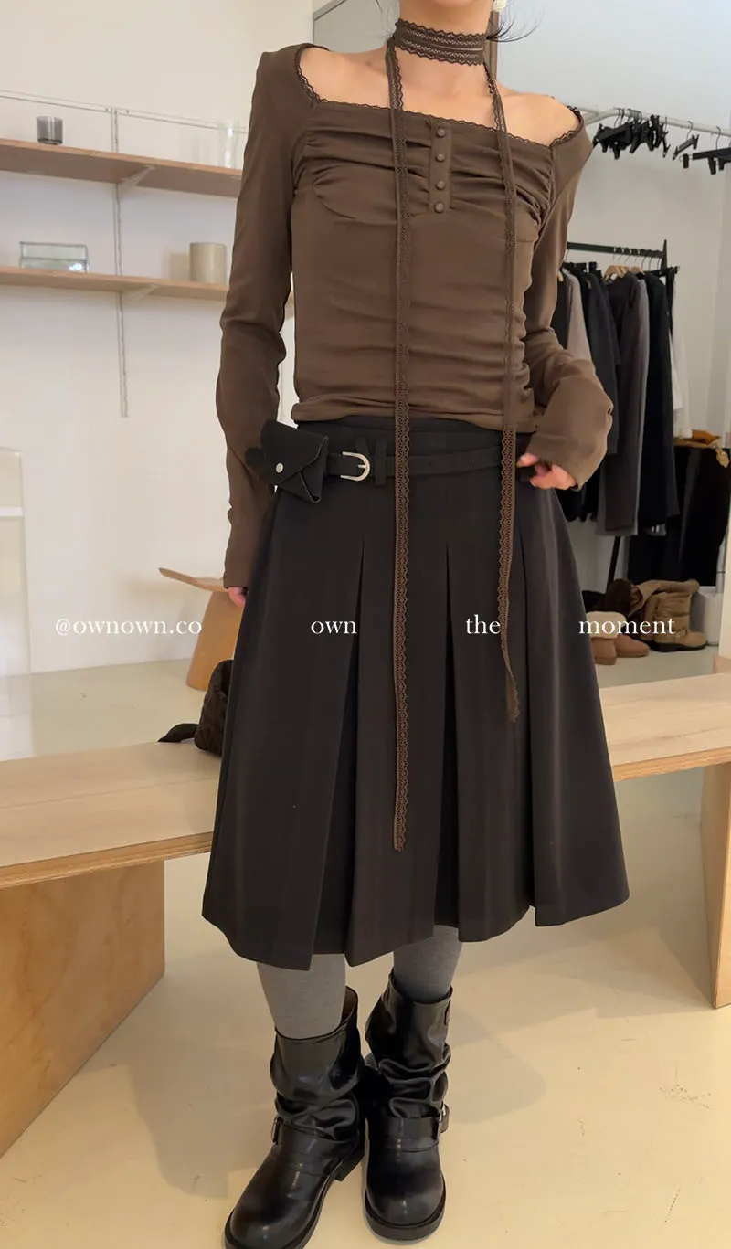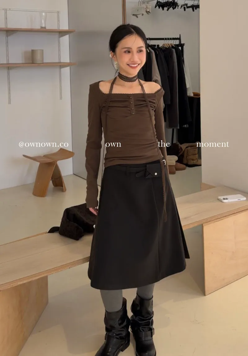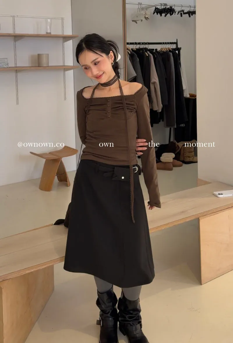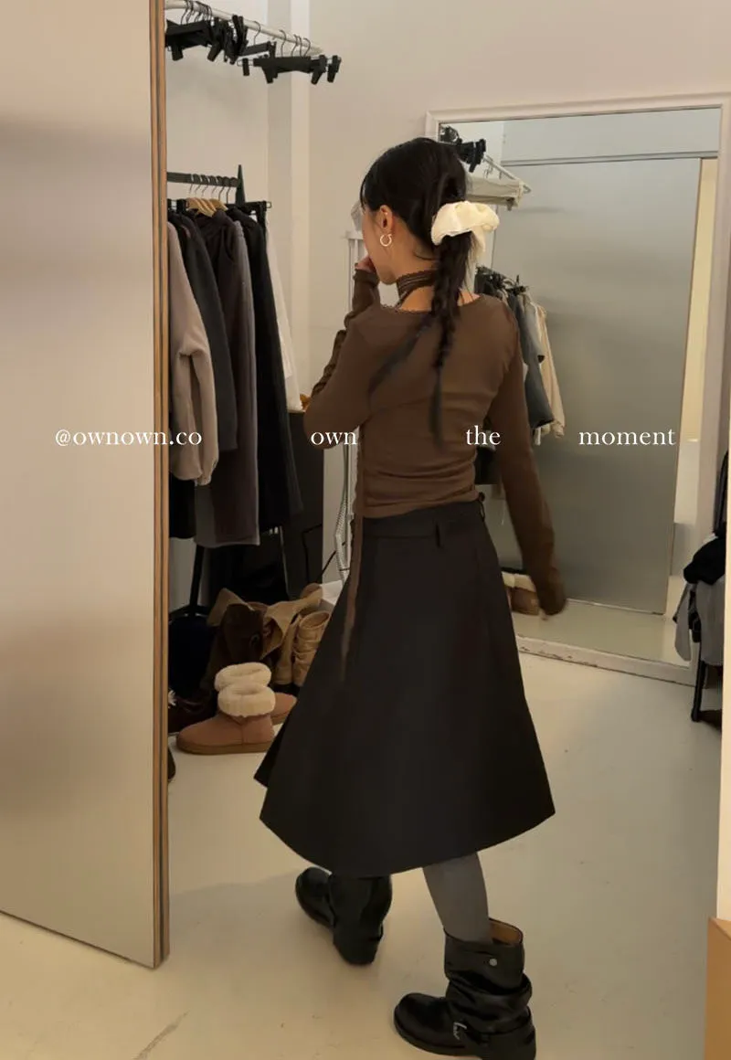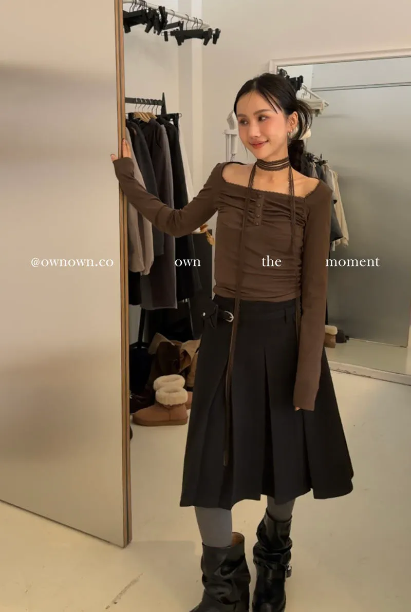 穿搭質感加分 打褶毛呢五分裙 2colors S/M/L