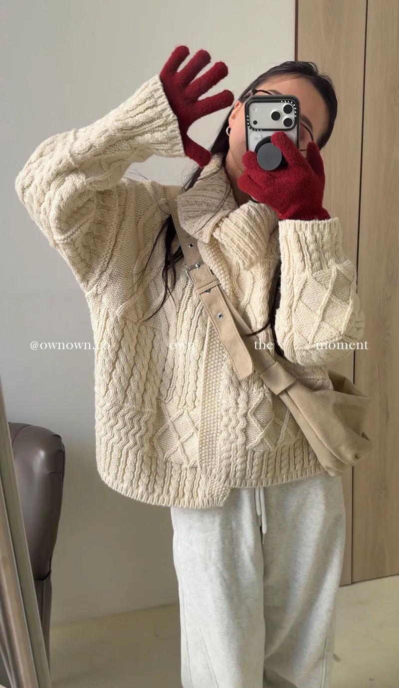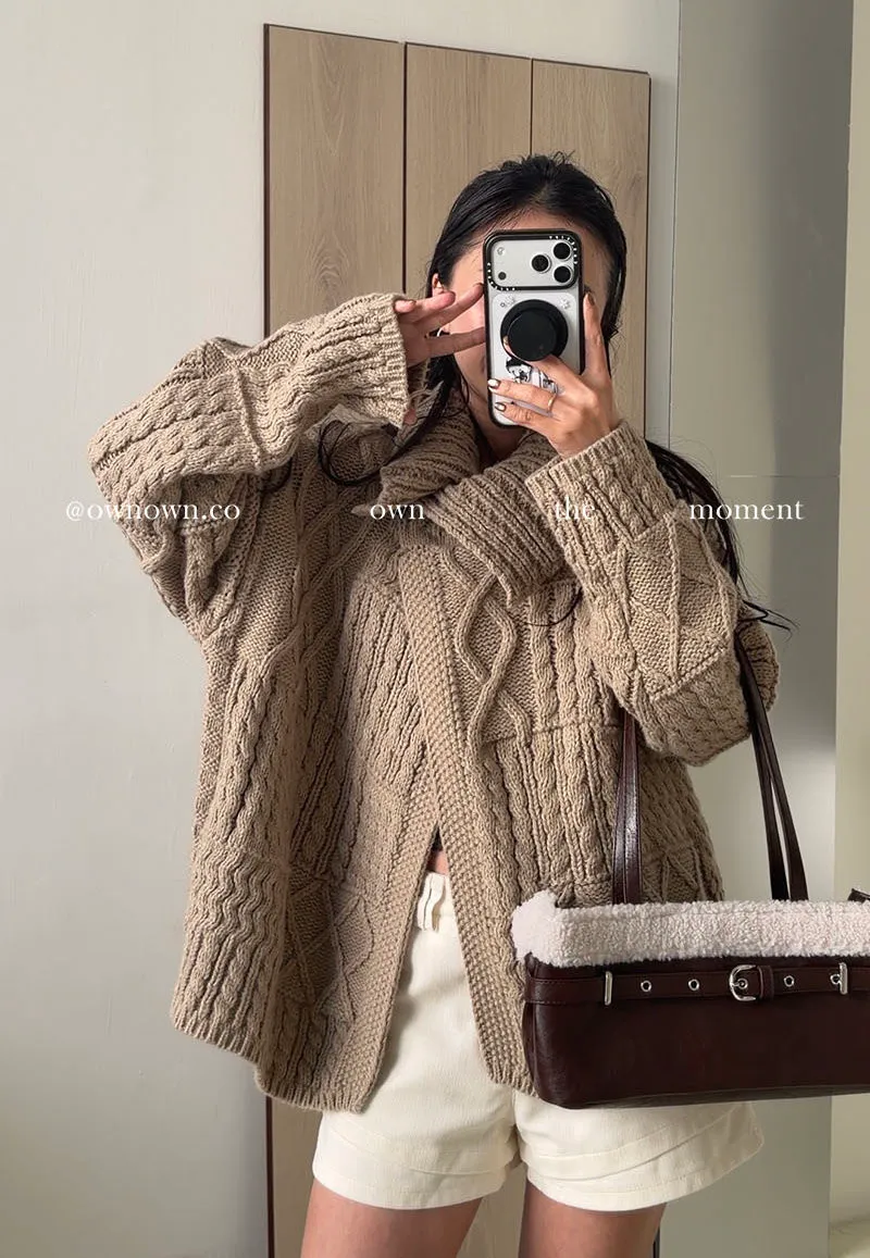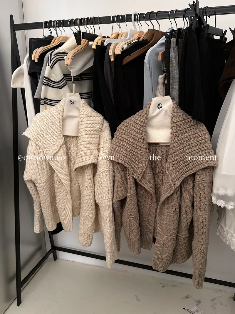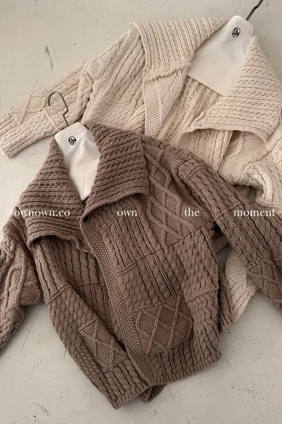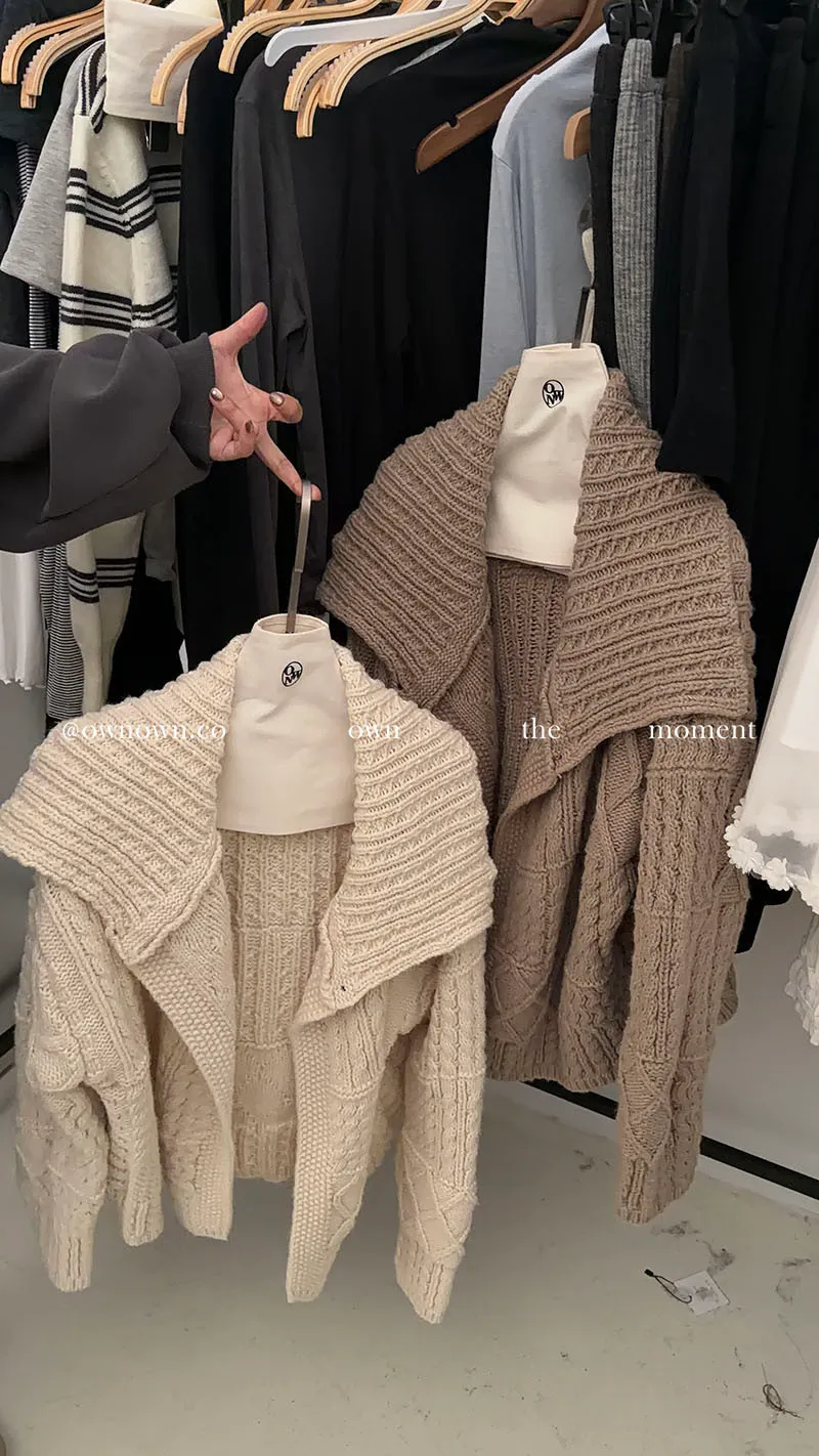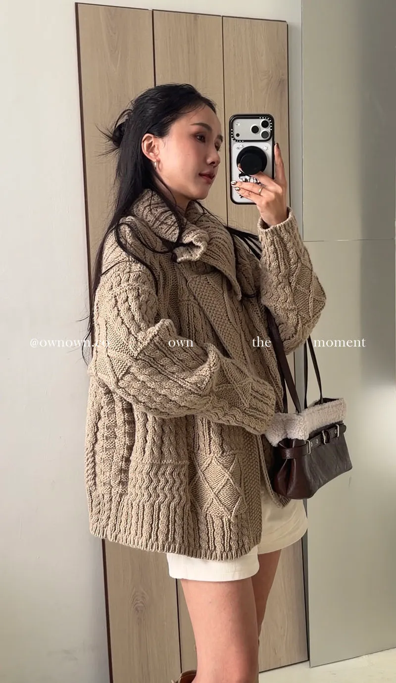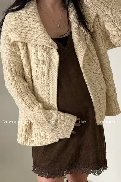 【限時優惠】給你不一樣的時髦 麻花大翻領開釦毛衣 2colors