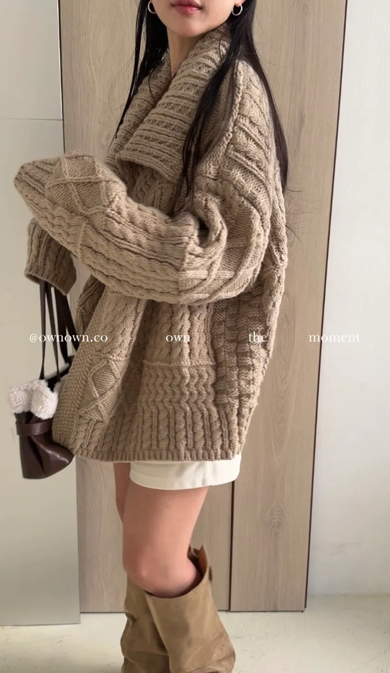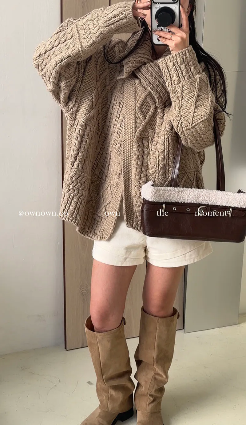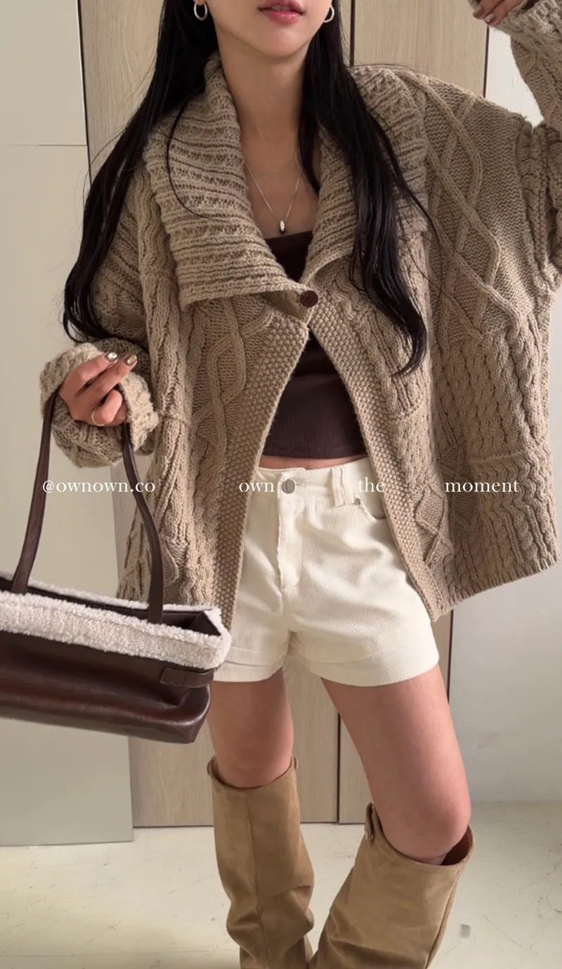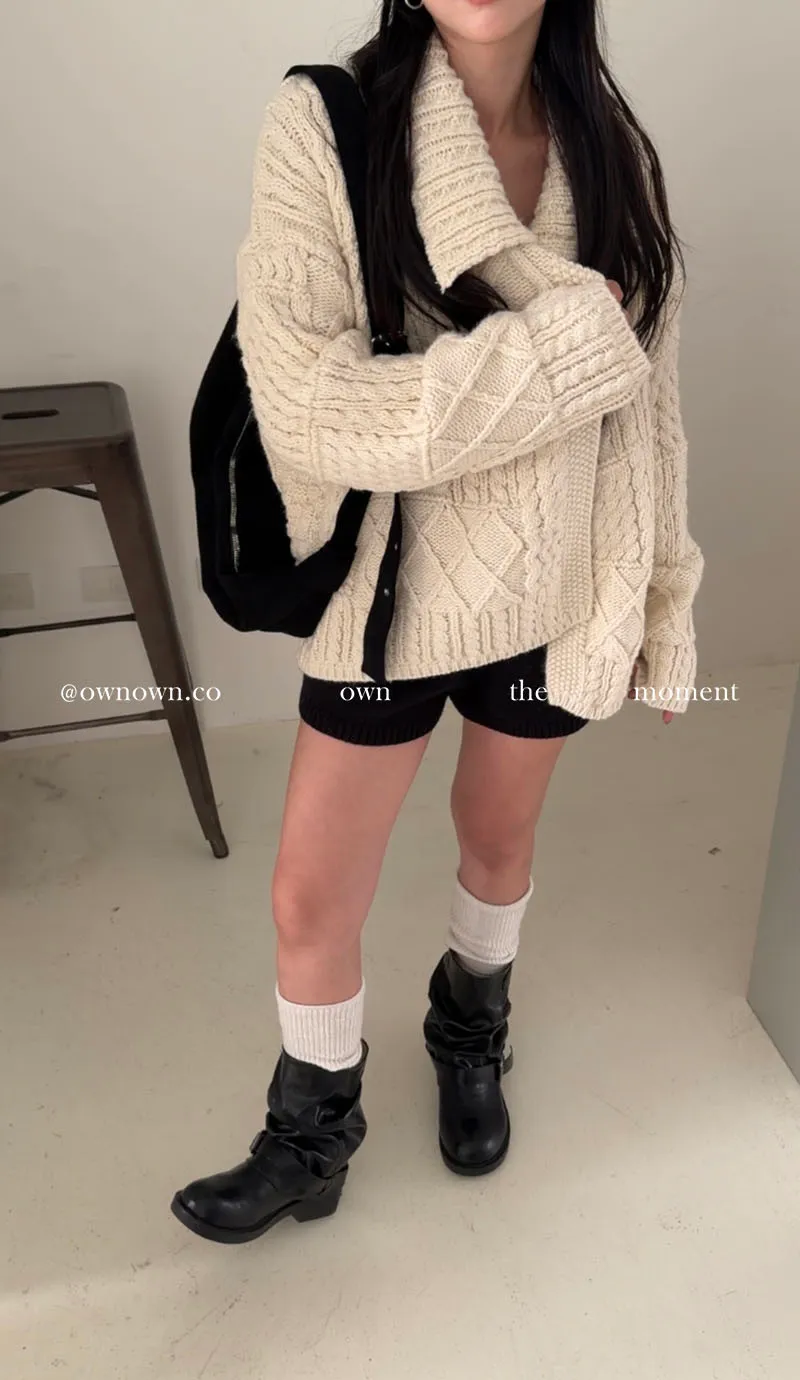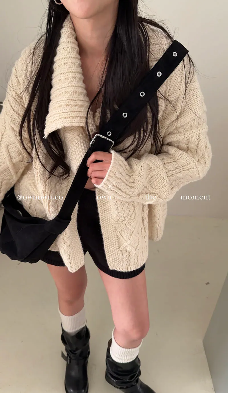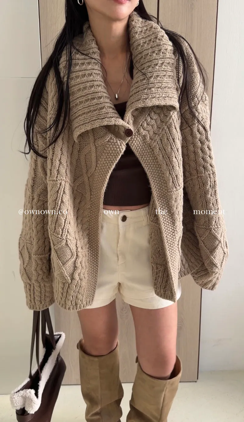 【限時優惠】給你不一樣的時髦 麻花大翻領開釦毛衣 2colors