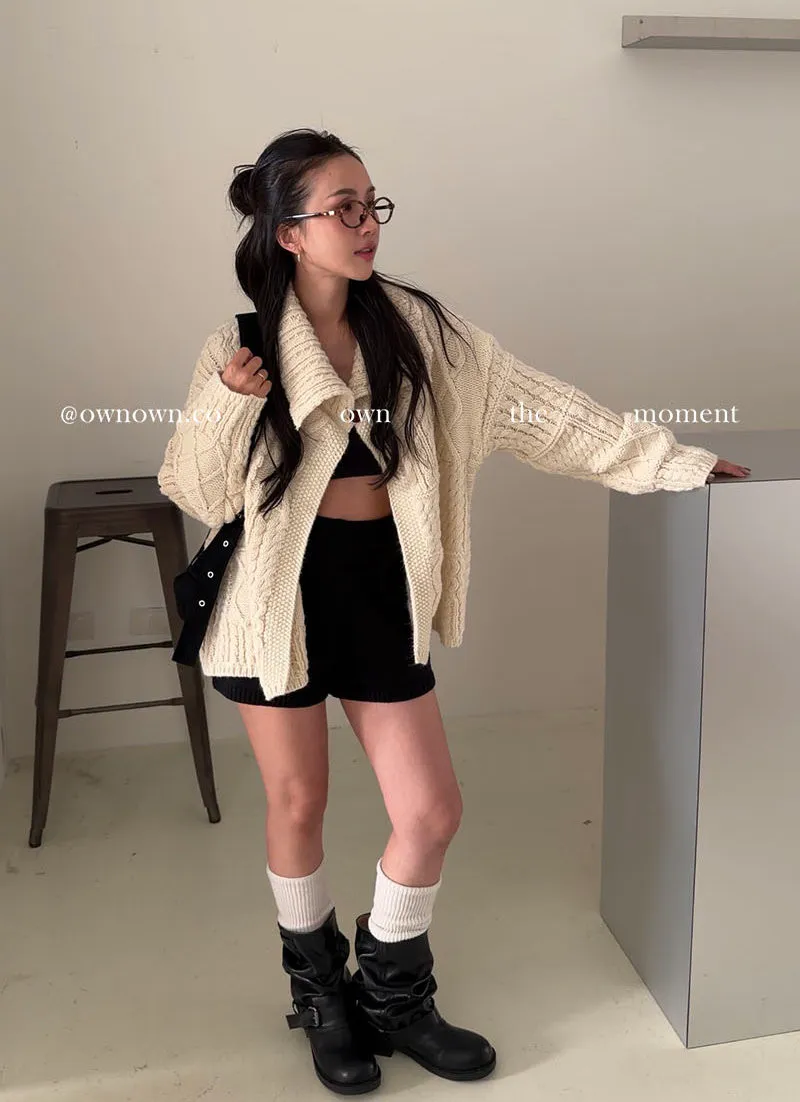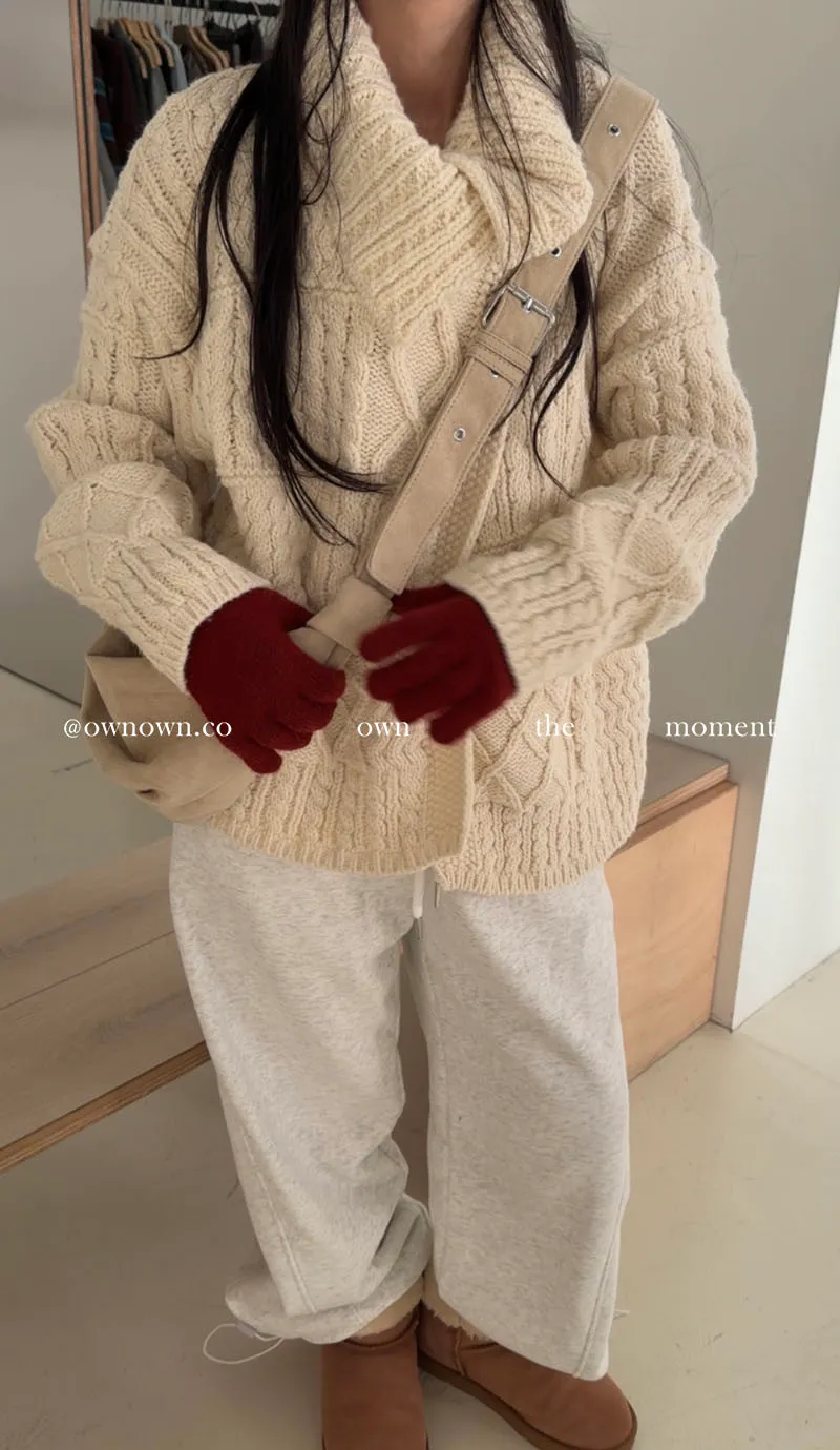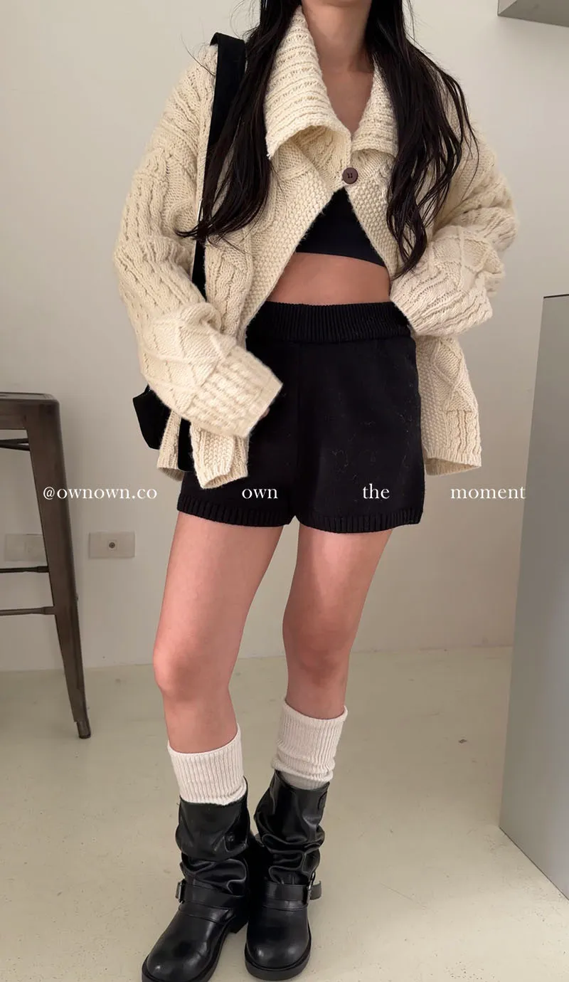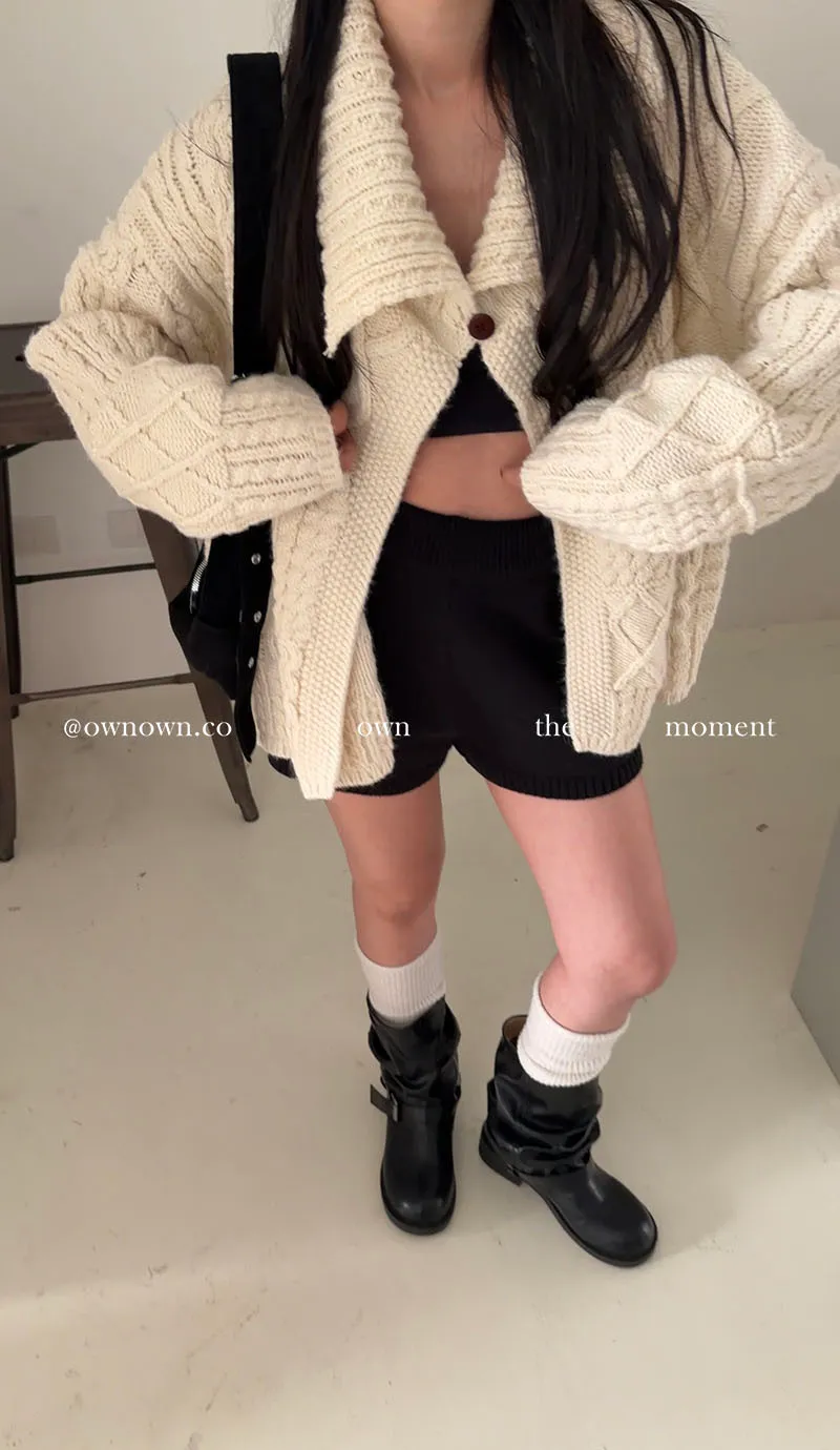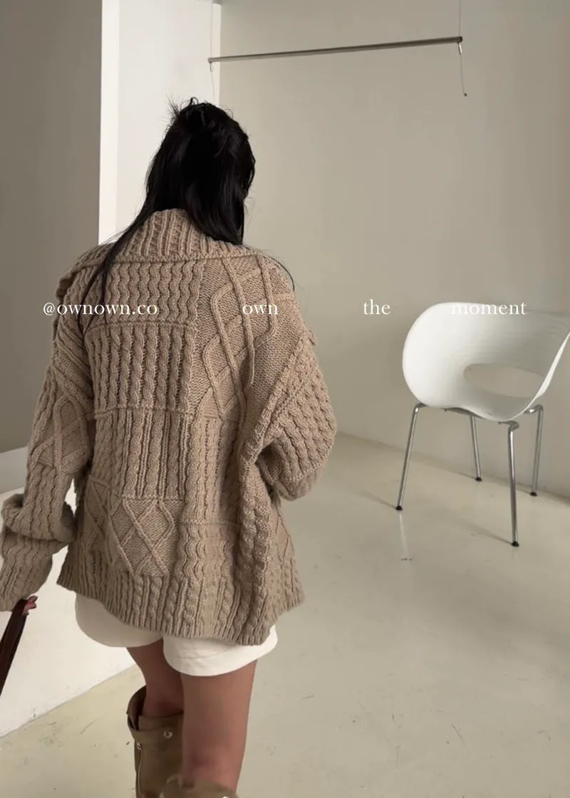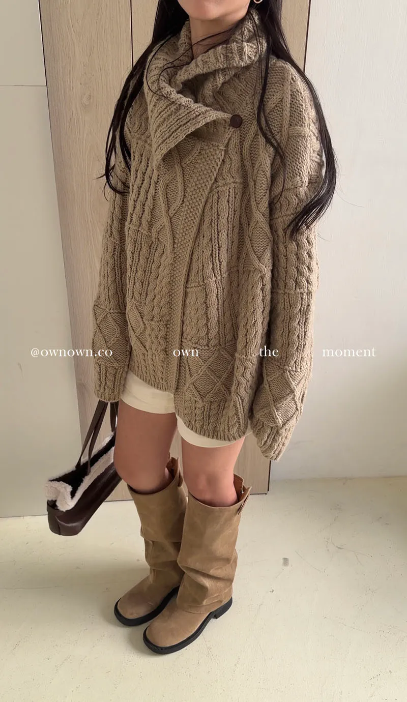 【限時優惠】給你不一樣的時髦 麻花大翻領開釦毛衣 2colors
