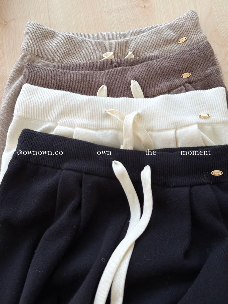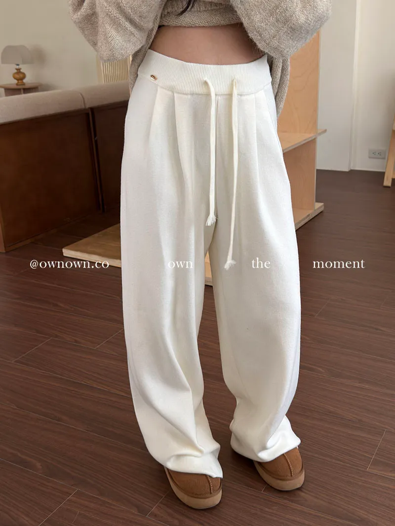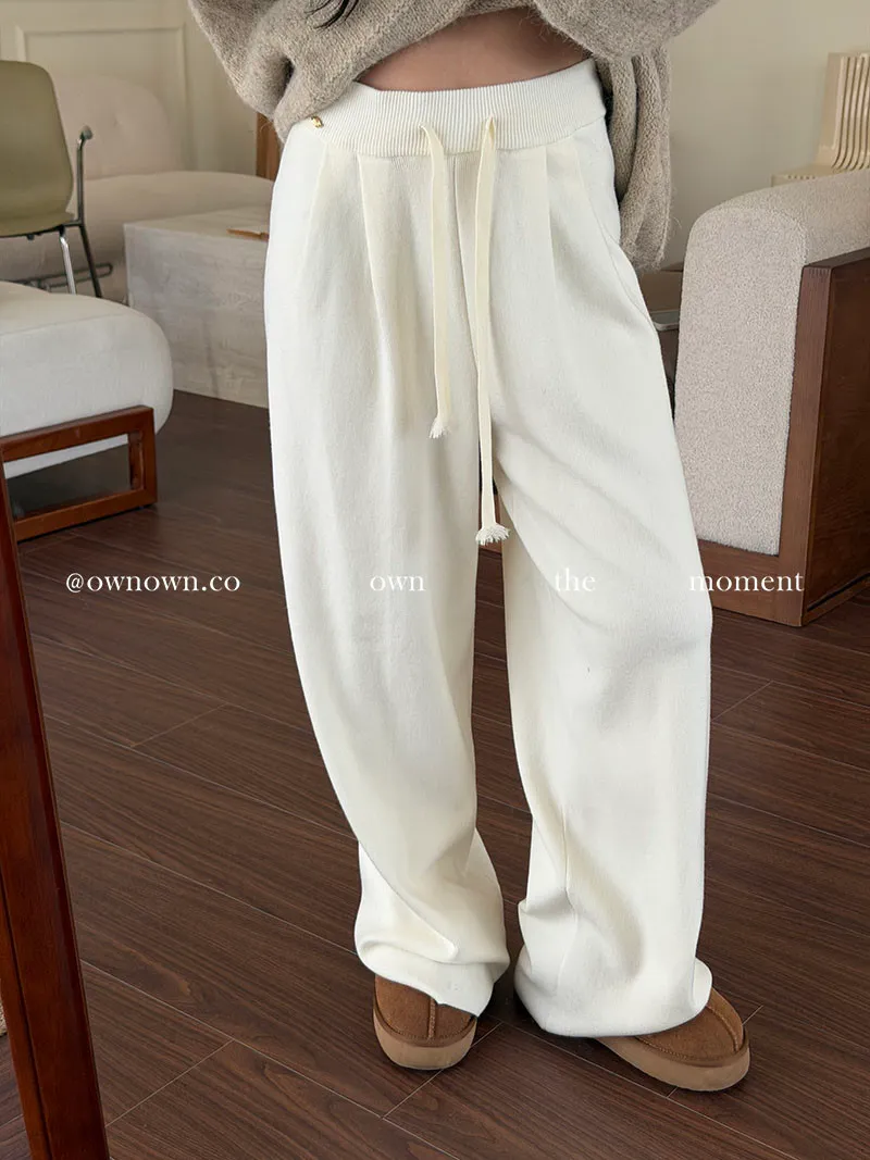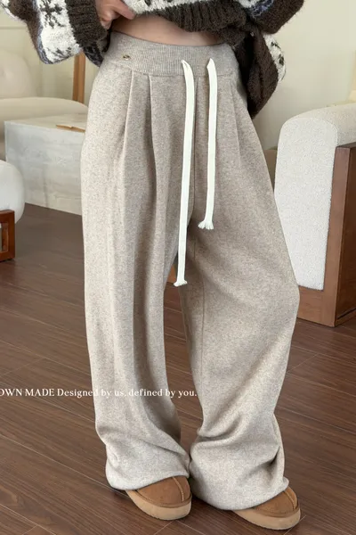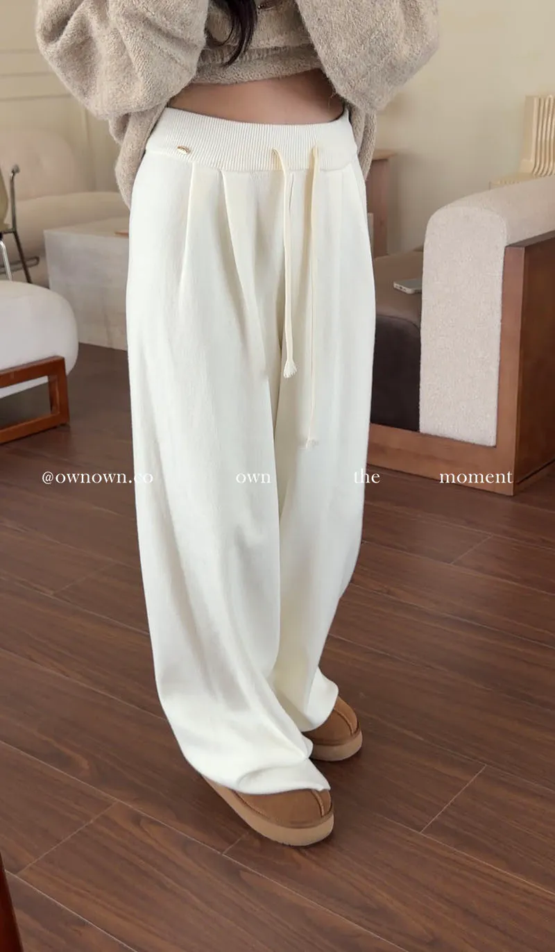 【OWN自訂款】可以天天穿 針織抽繩打摺落地褲 5colors