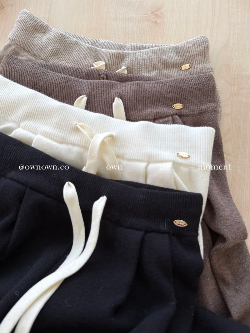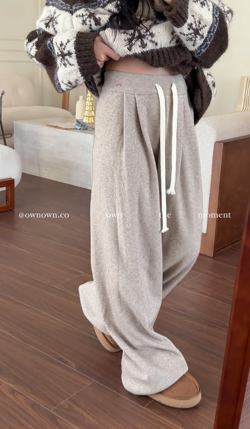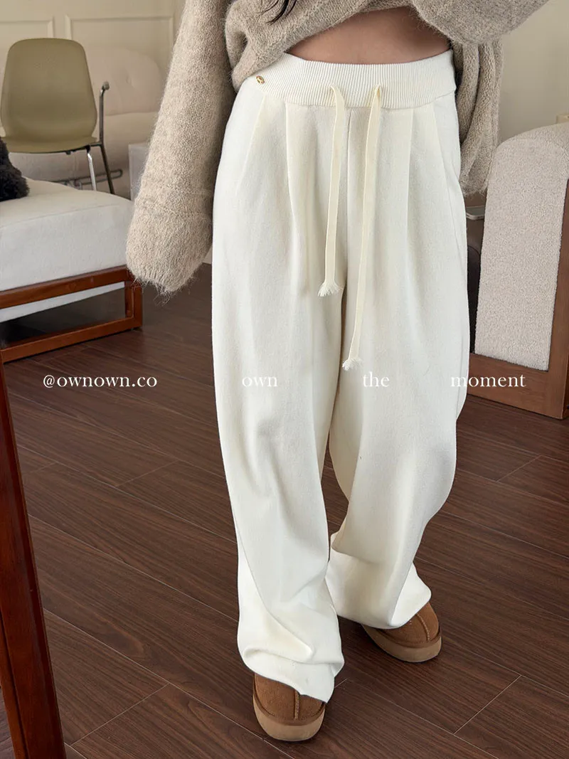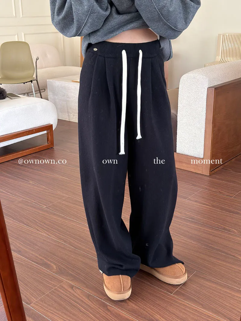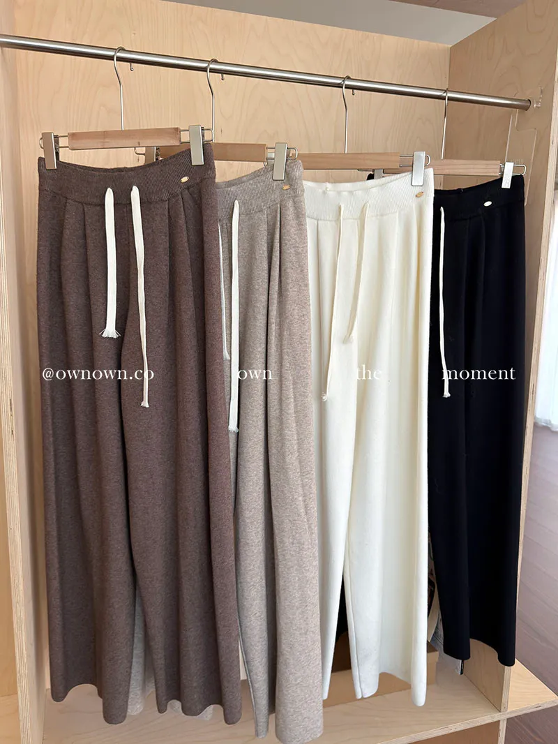 【OWN自訂款】可以天天穿 針織抽繩打摺落地褲 5colors