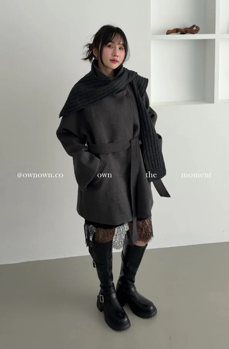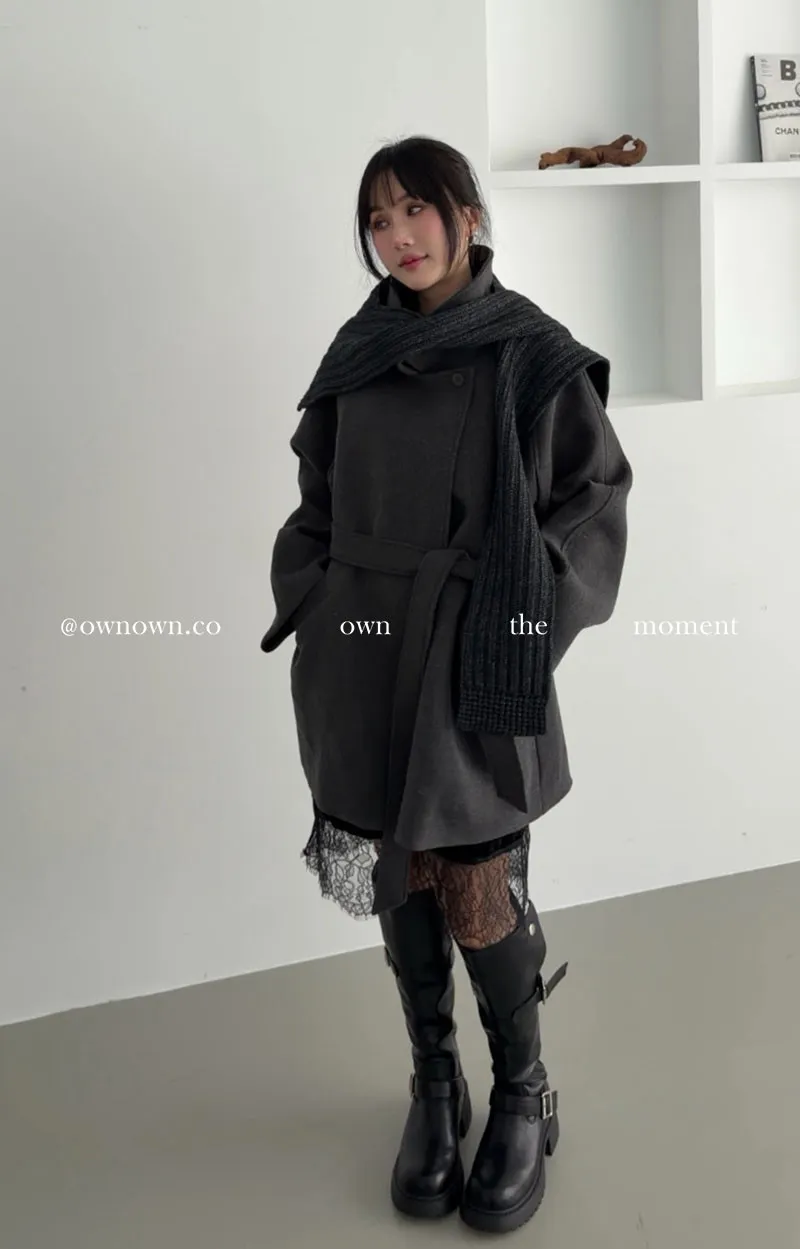 低調高級派 厚毛呢大衣(附披肩)3colors