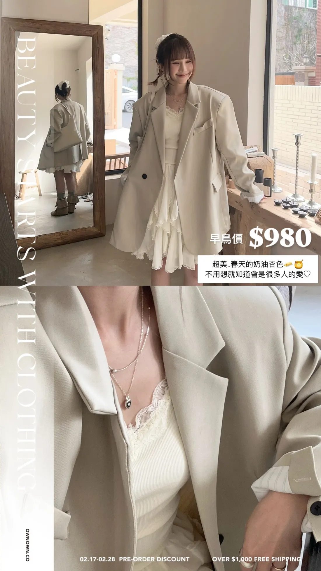 【OWN自訂款】想穿西外的春天 側釦西裝外套 3colors