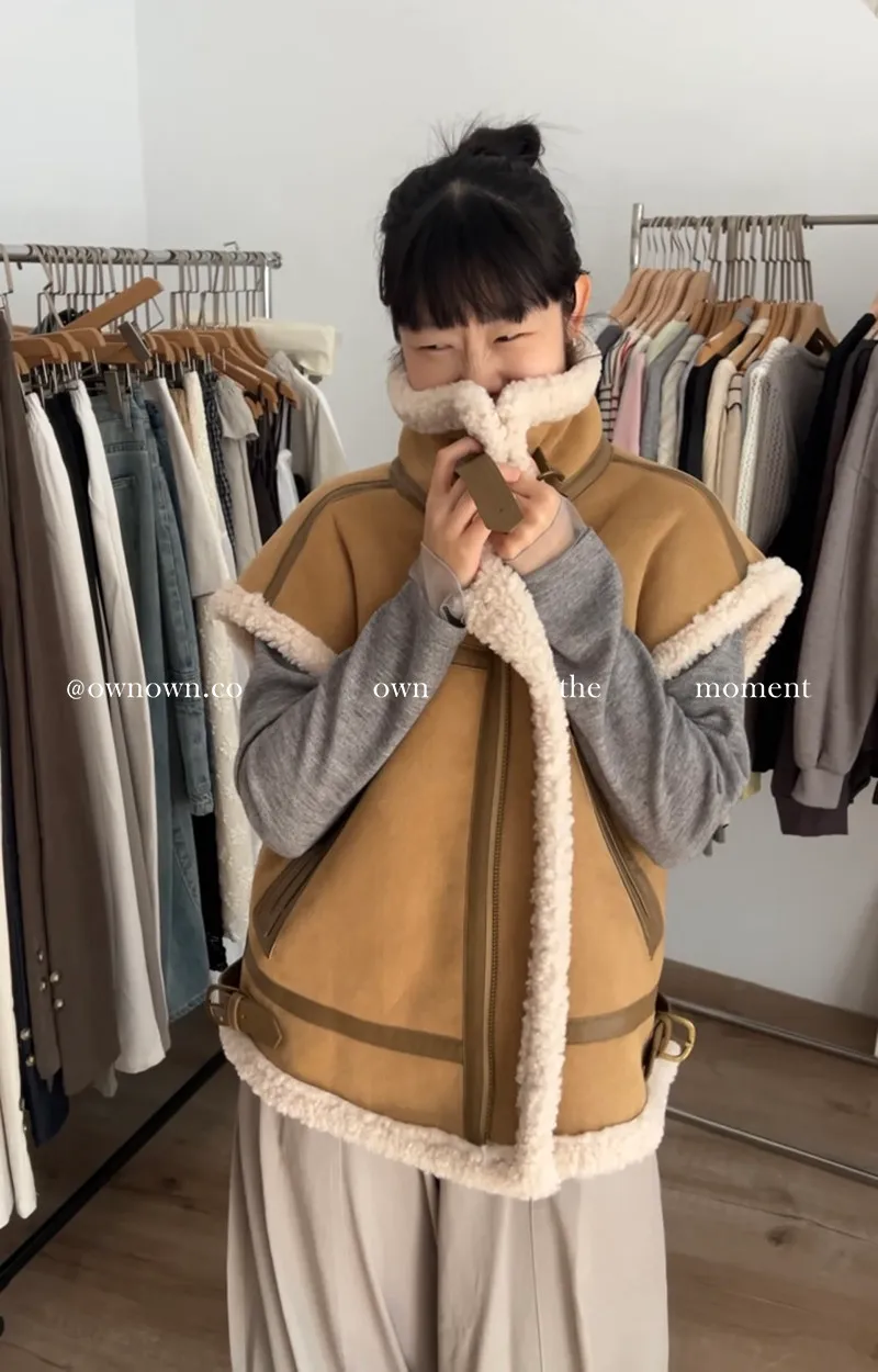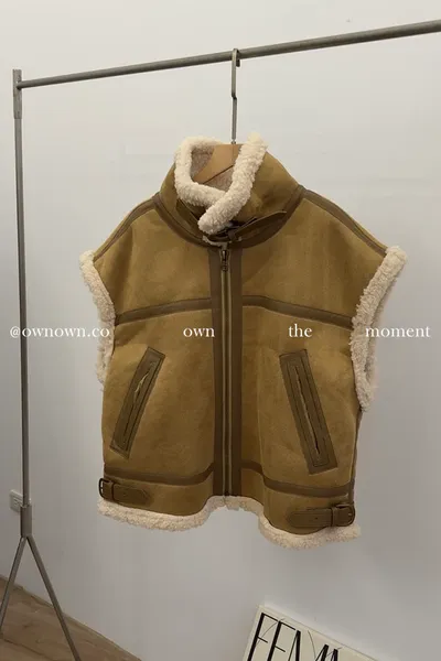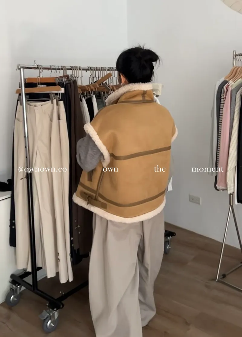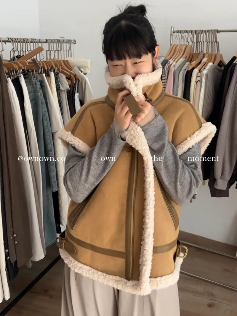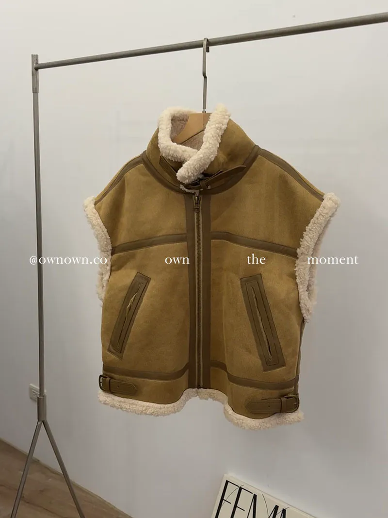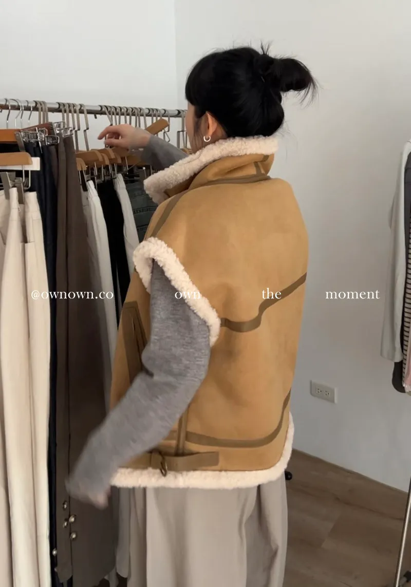 【正韓】溫柔又帥氣!羊羔毛麂皮拼接馬甲