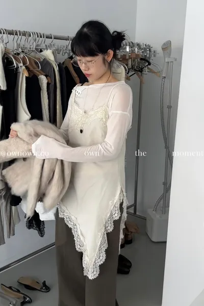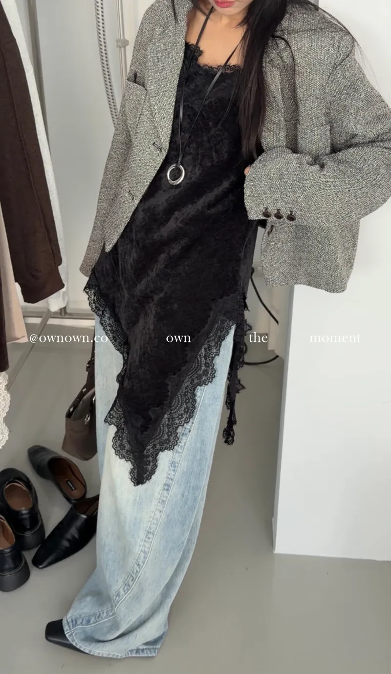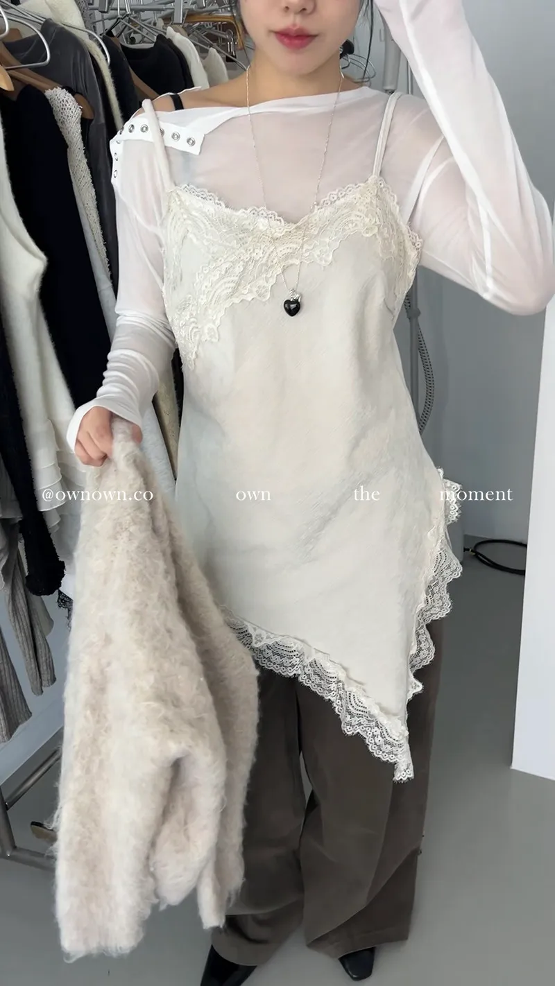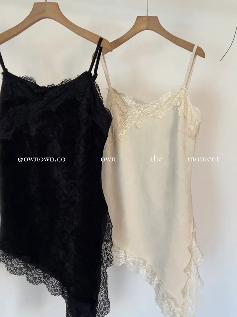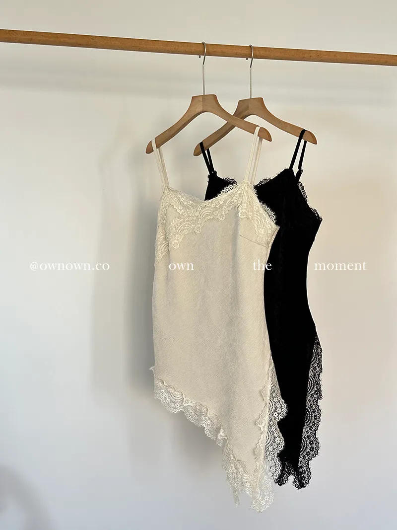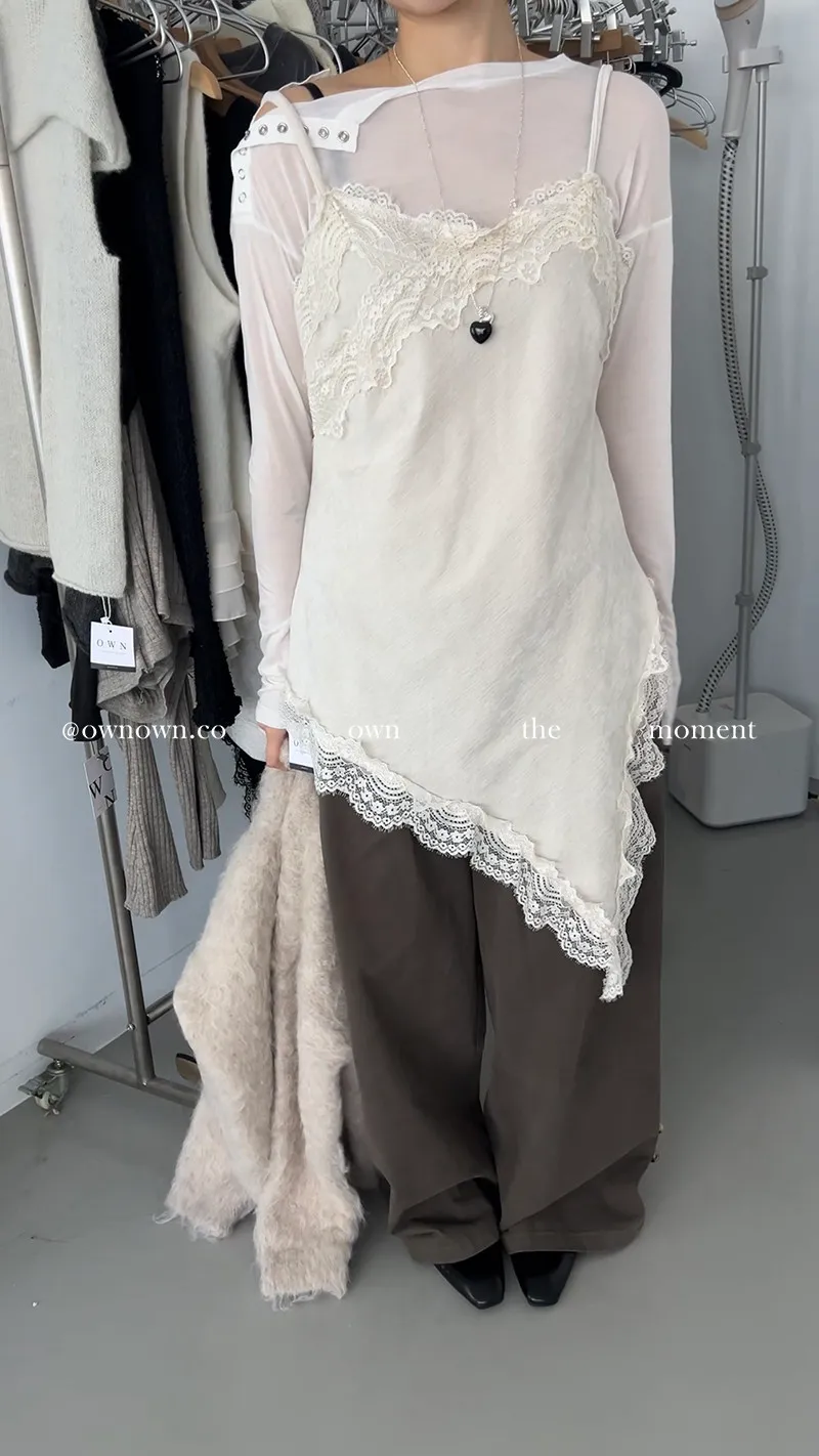 出門自帶精緻感 不對稱蕾絲長版背心 2colors