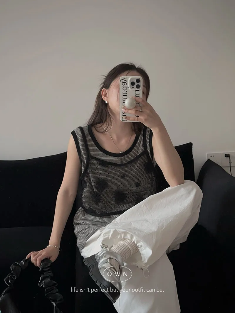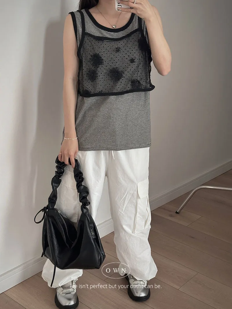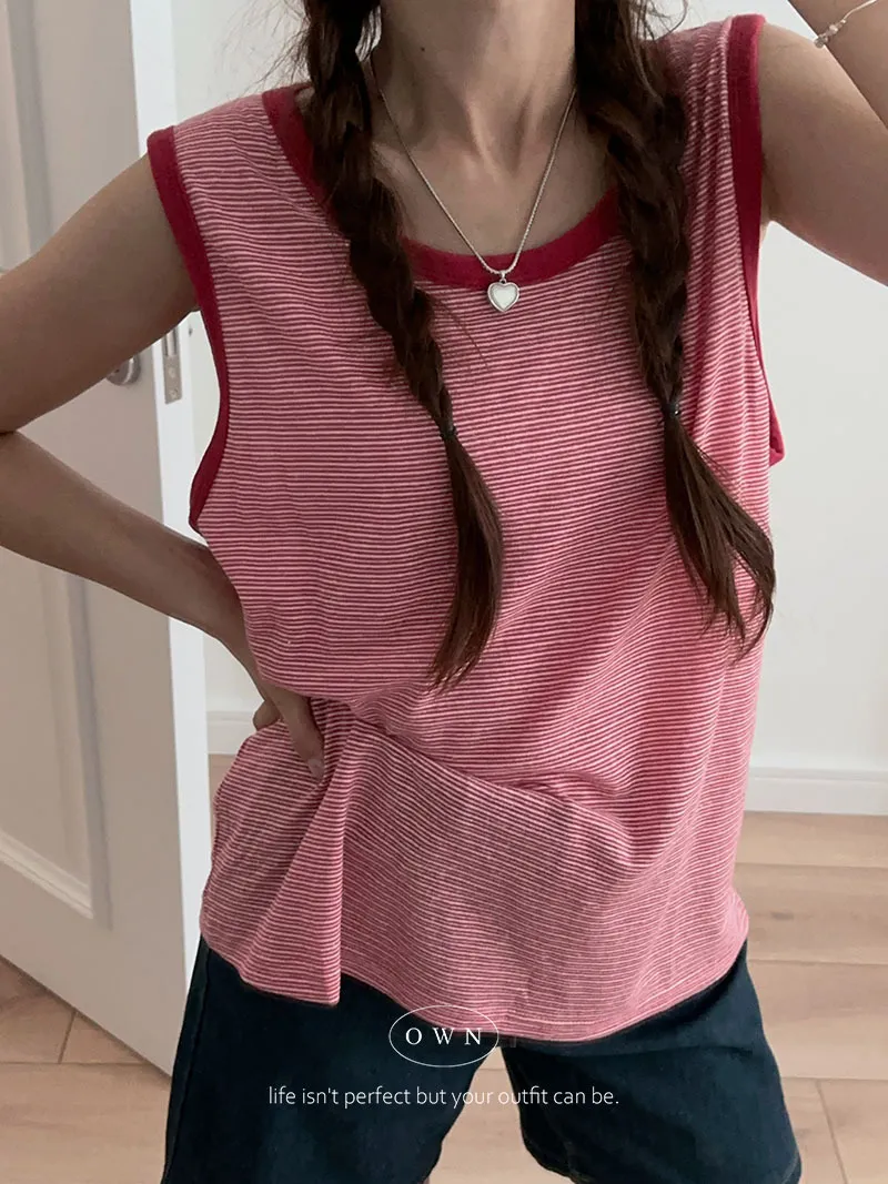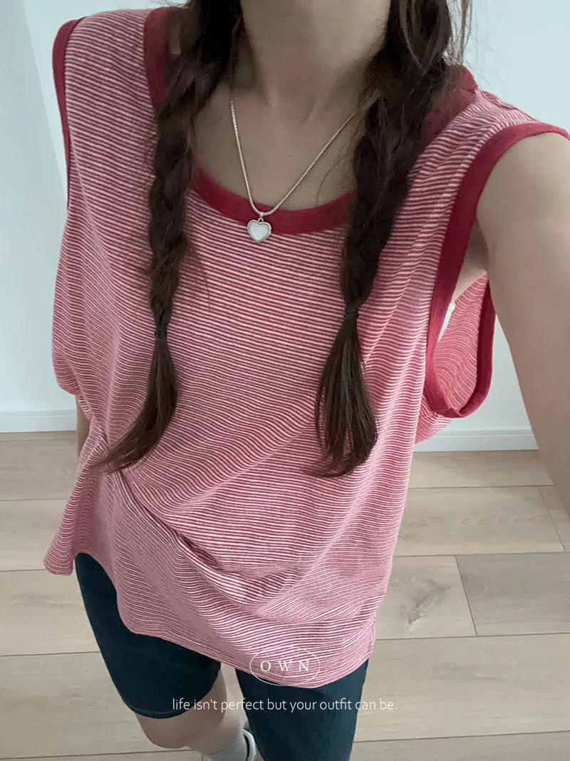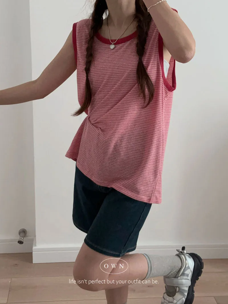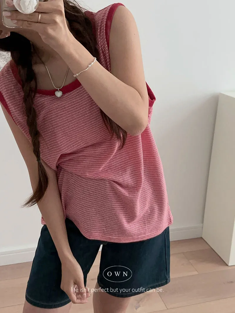 大愛這種鹽系慵懶!!細條紋寬肩背心 3colors