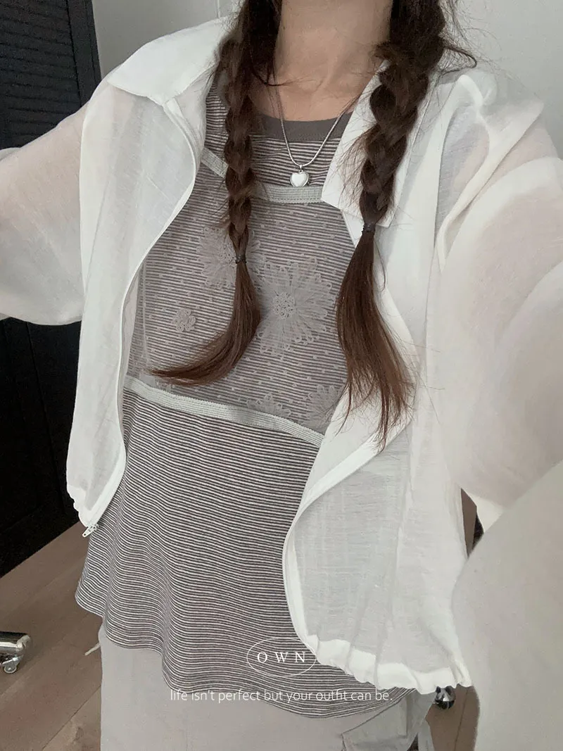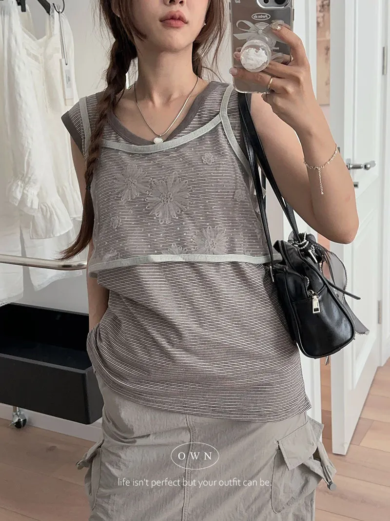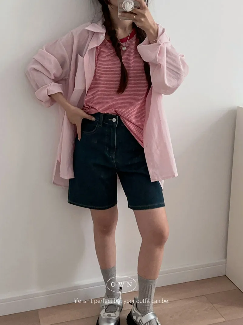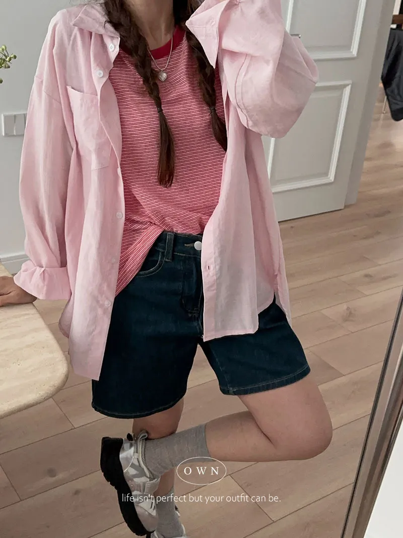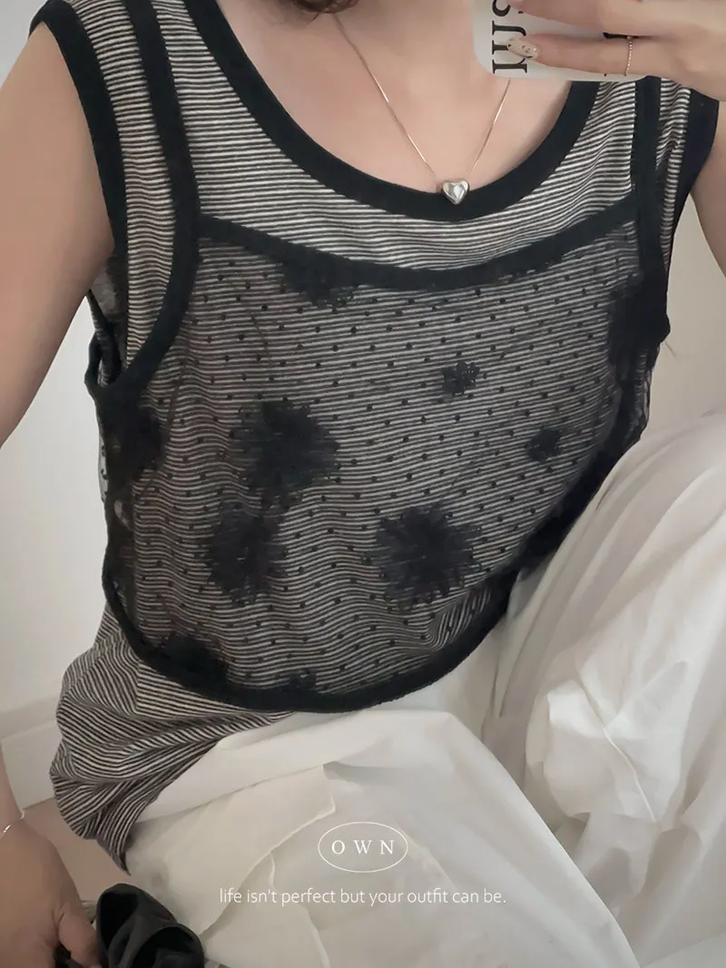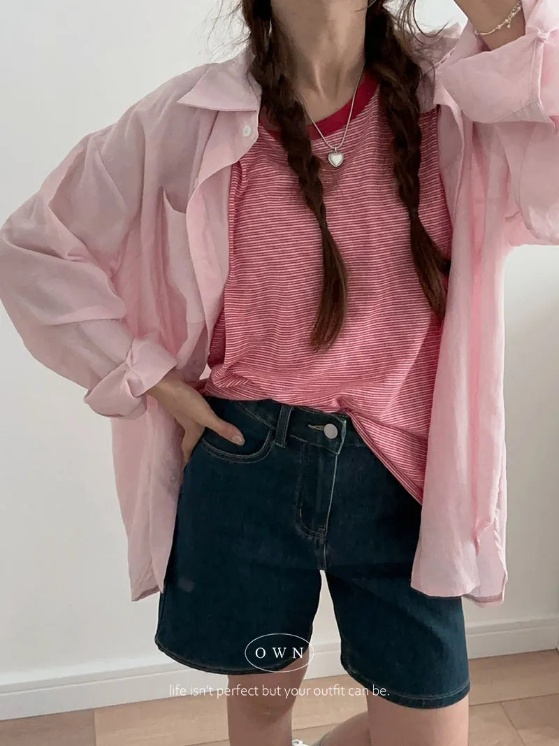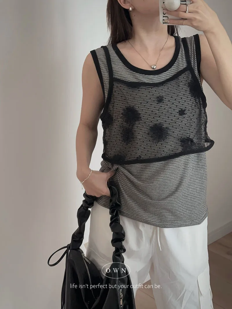 大愛這種鹽系慵懶!!細條紋寬肩背心 3colors