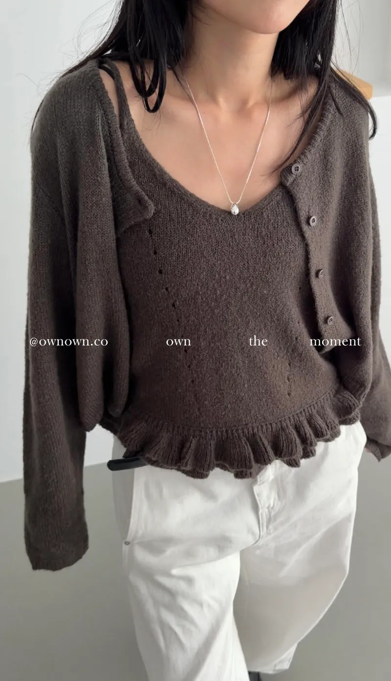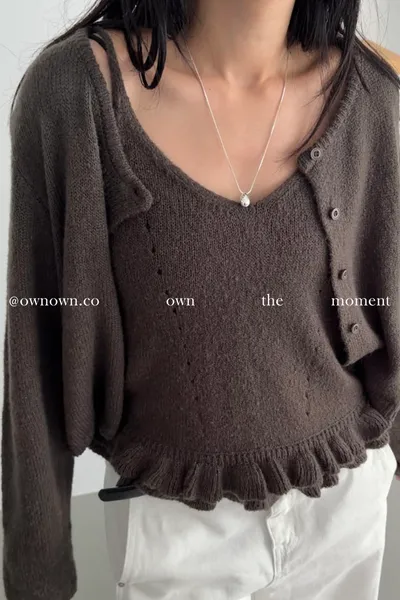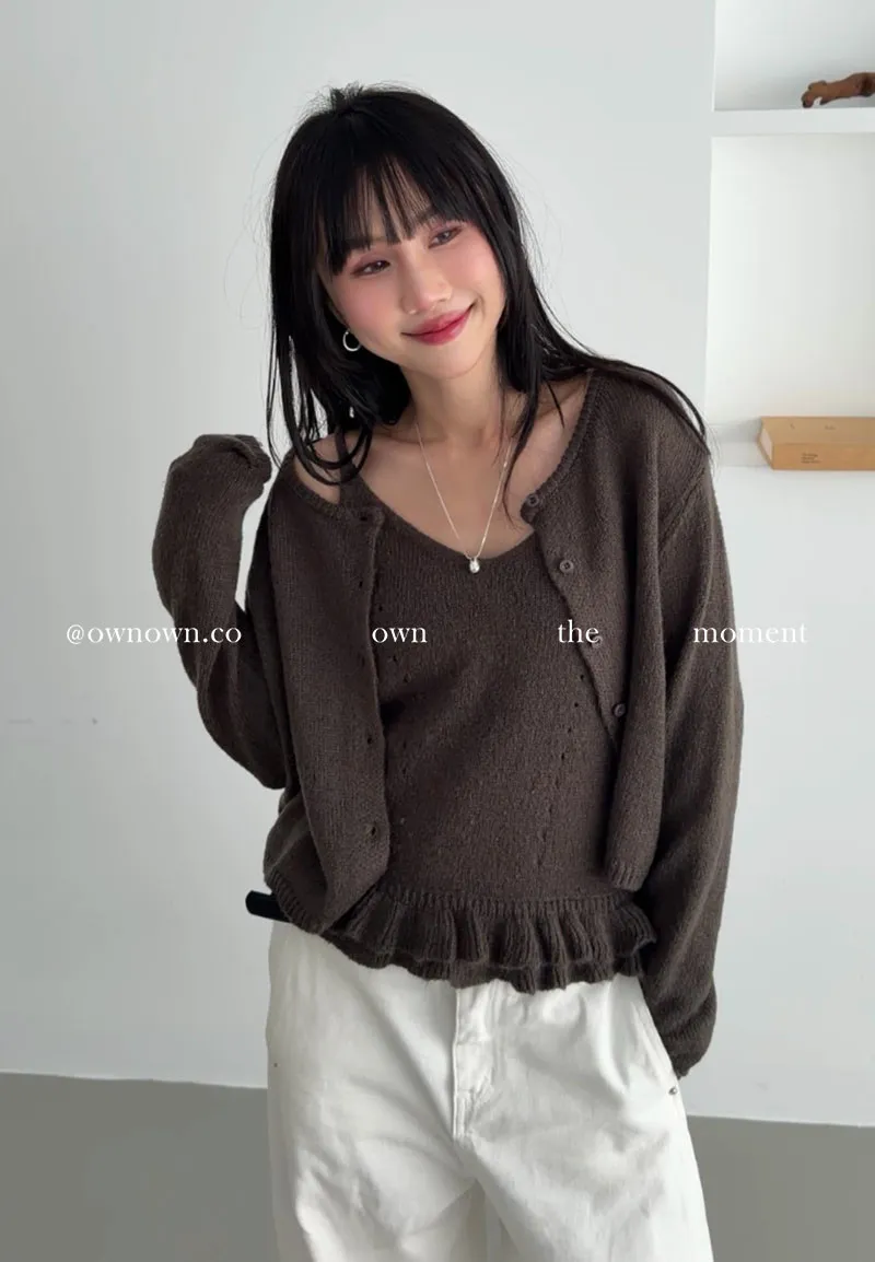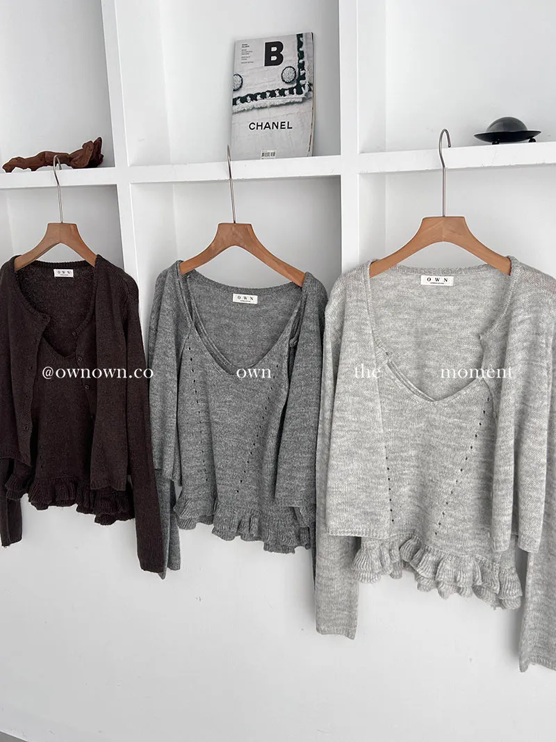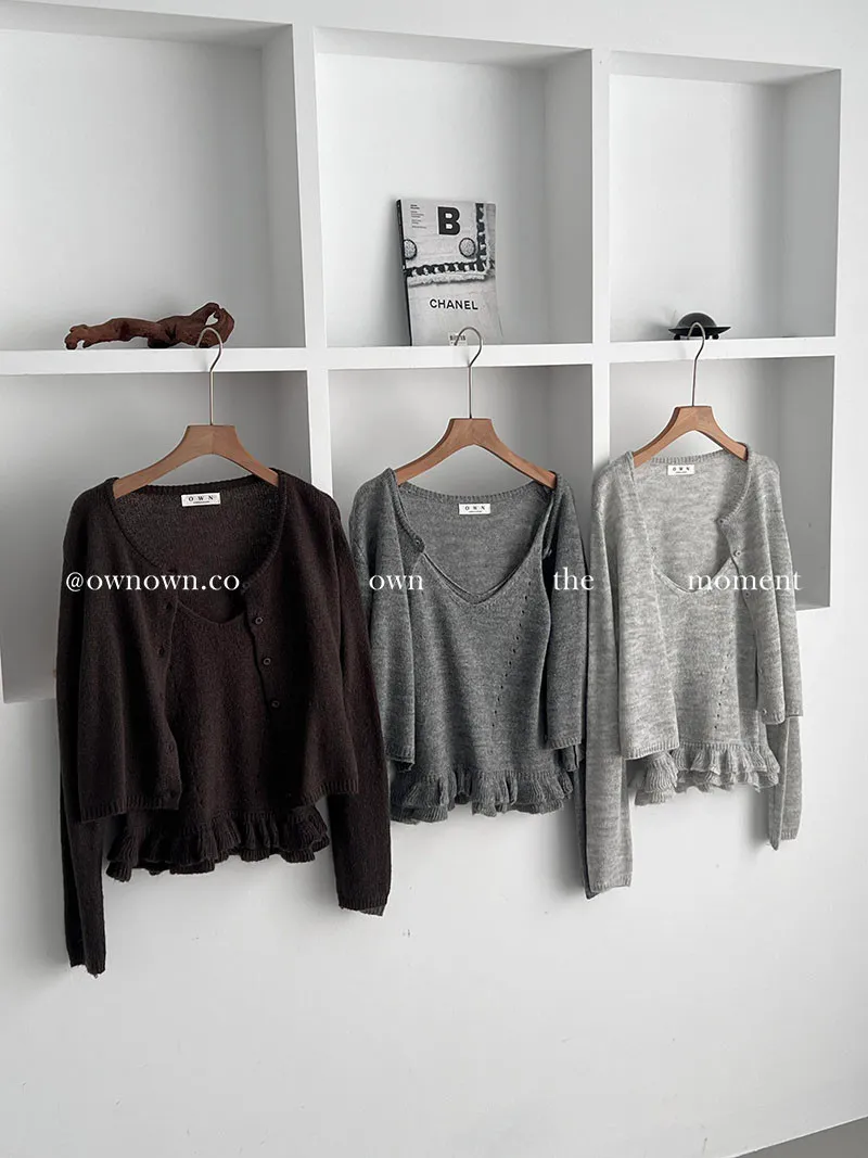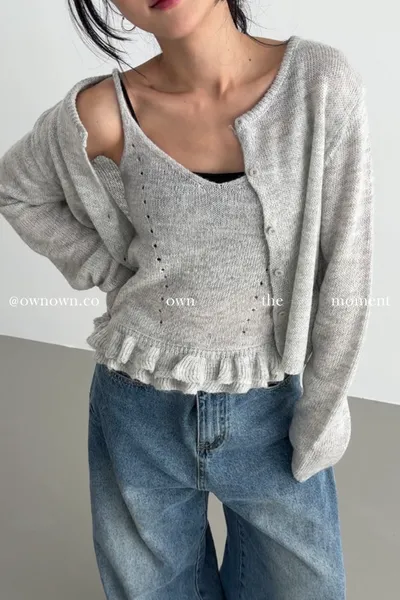 溫柔可愛並存 針織外套+花邊背心SET 3colors