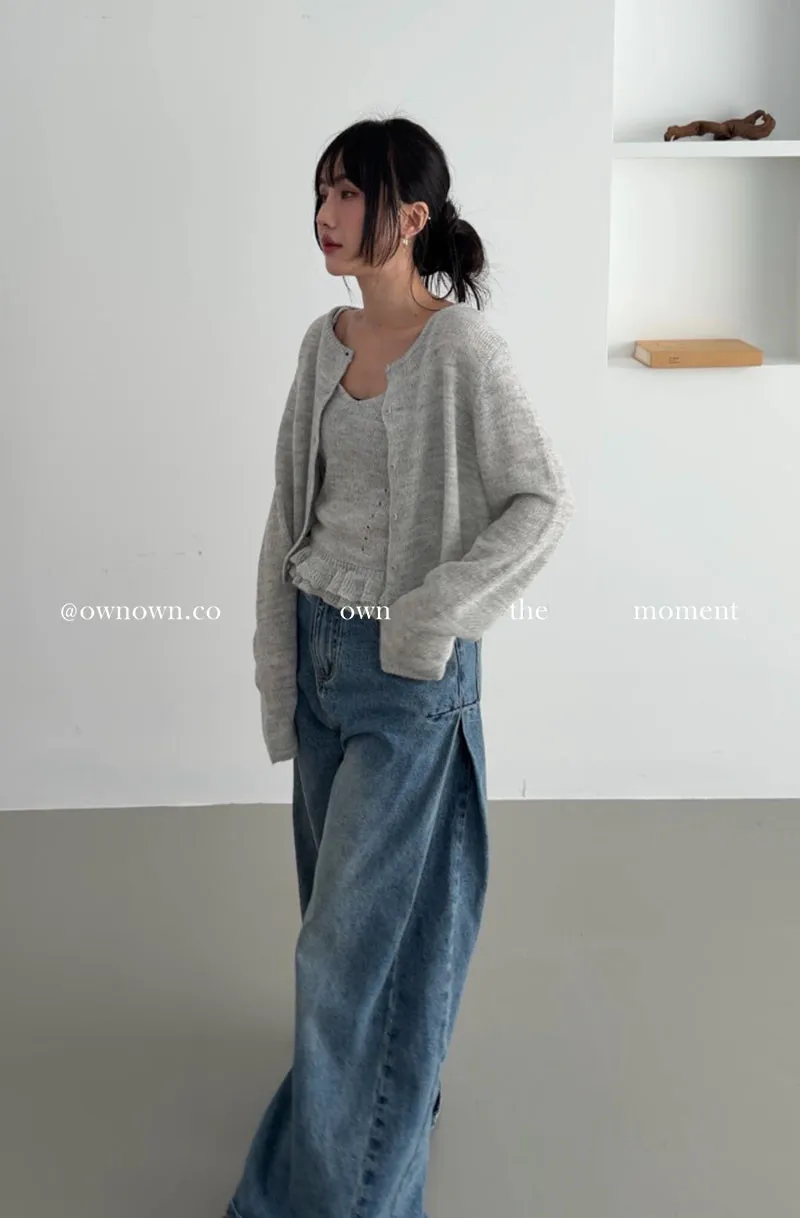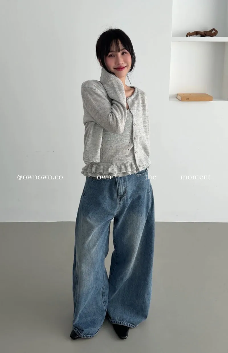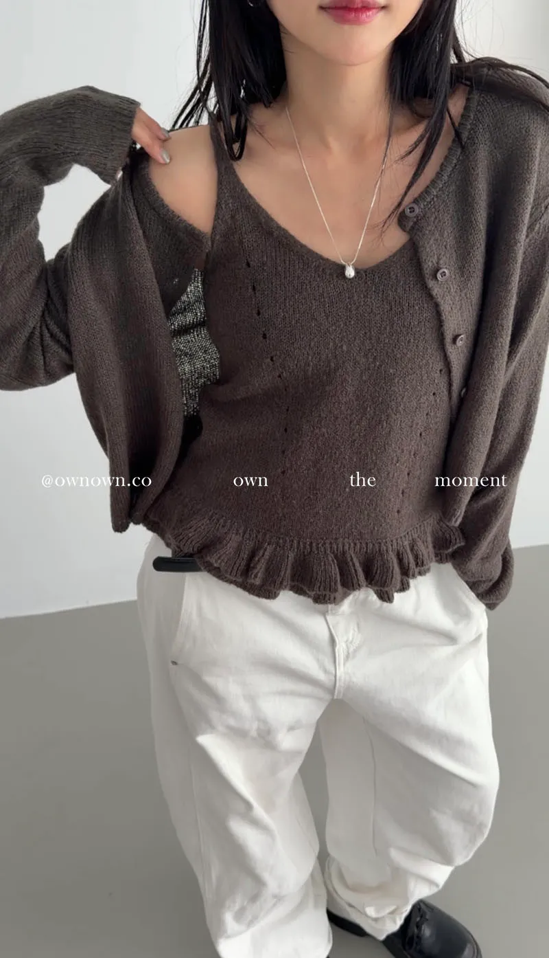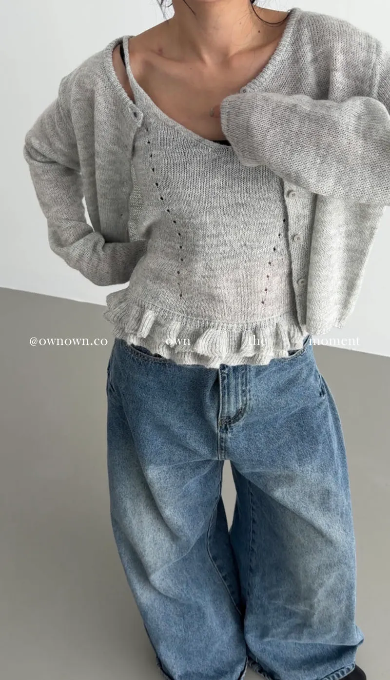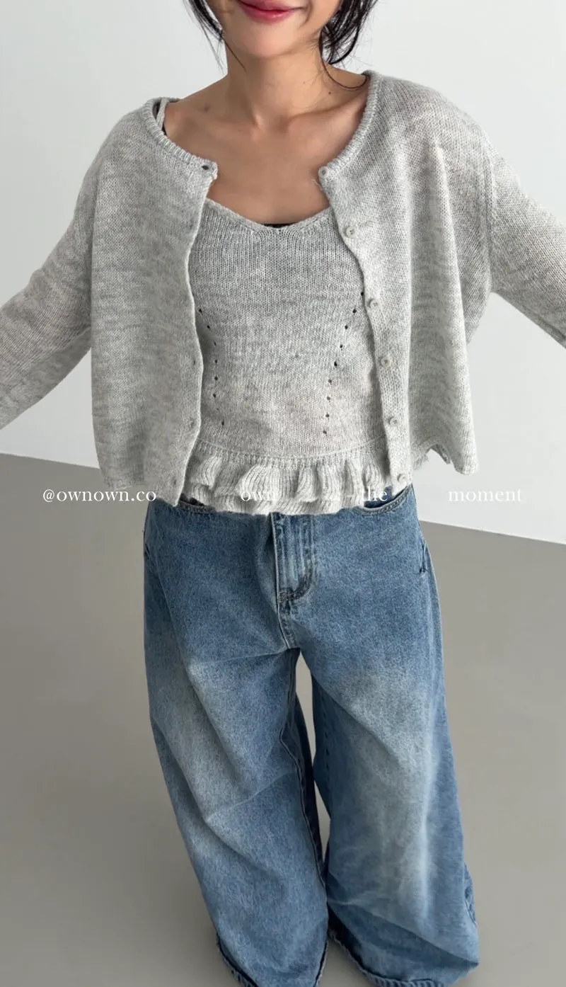 溫柔可愛並存 針織外套+花邊背心SET 3colors
