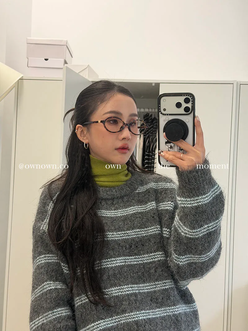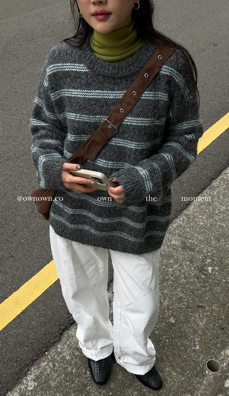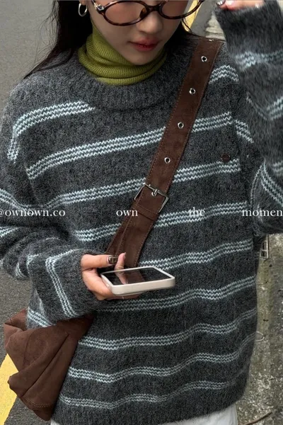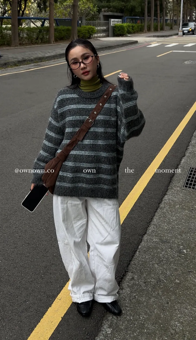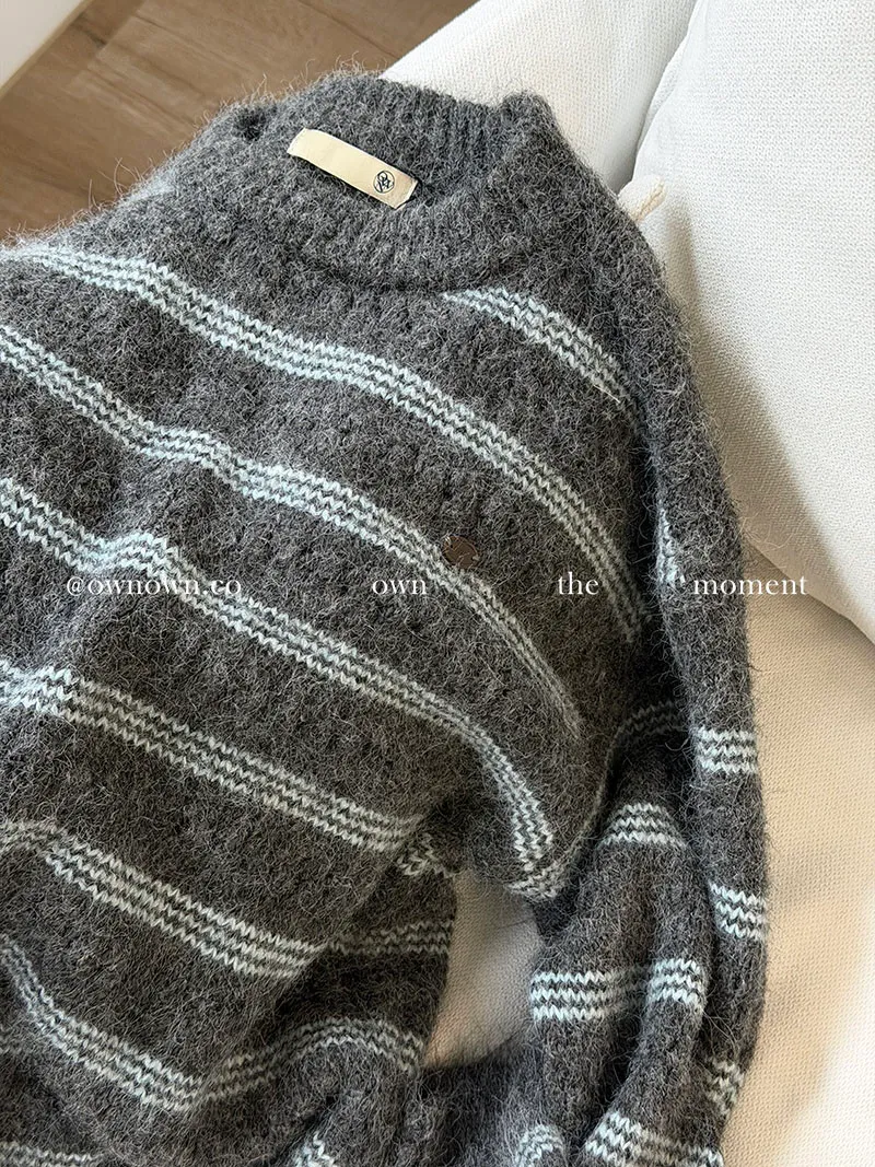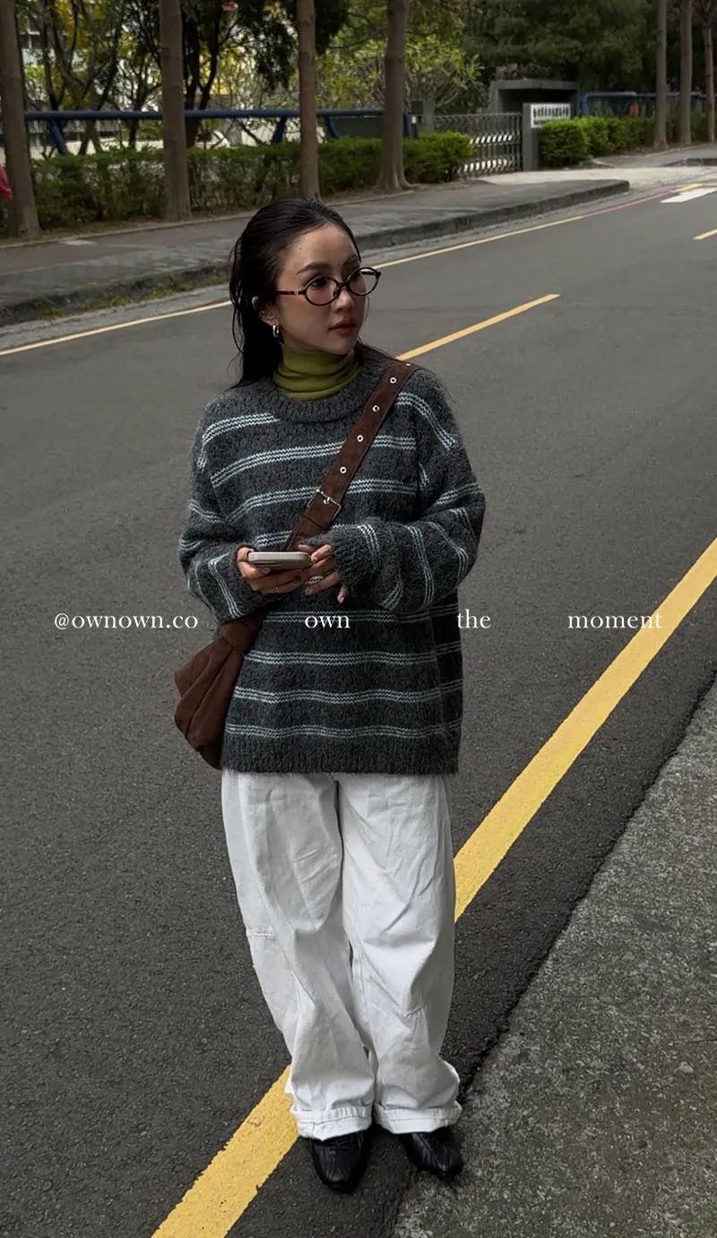 【OWN自訂款】灰藍冬日 條紋毛衣