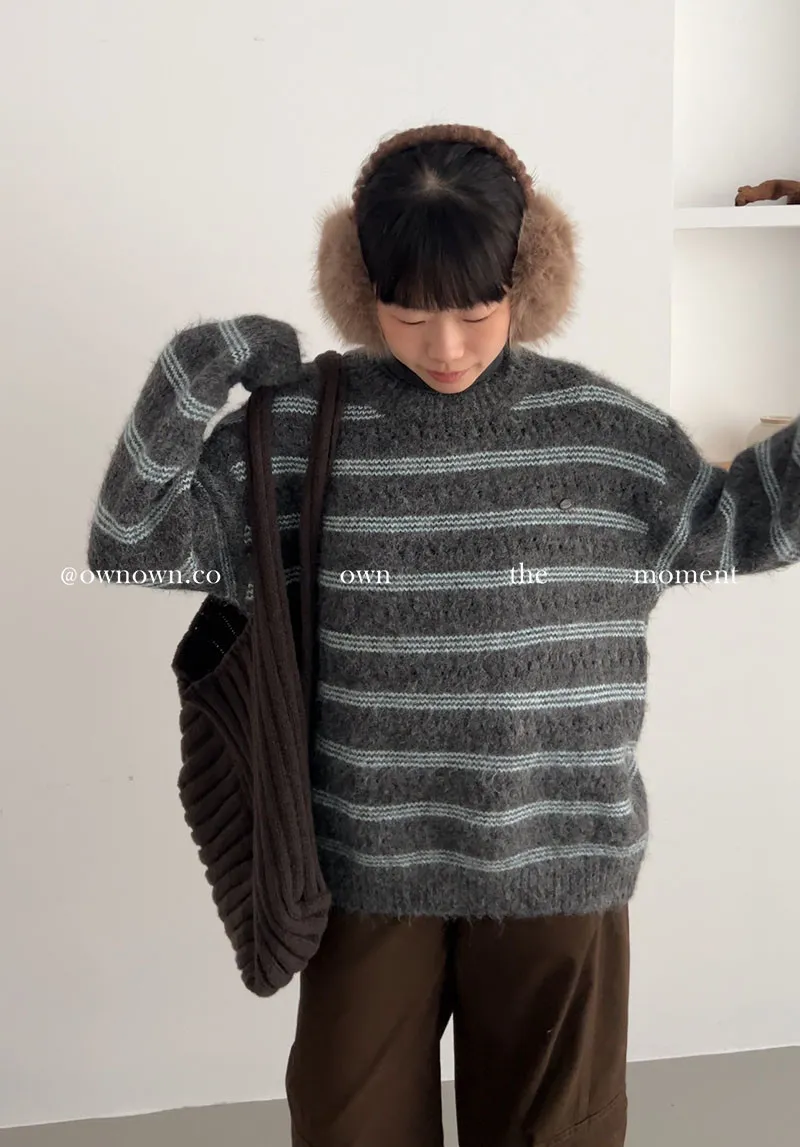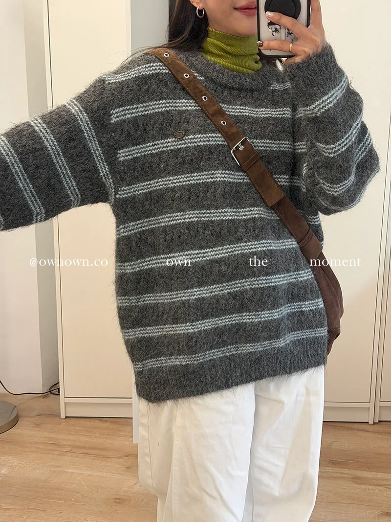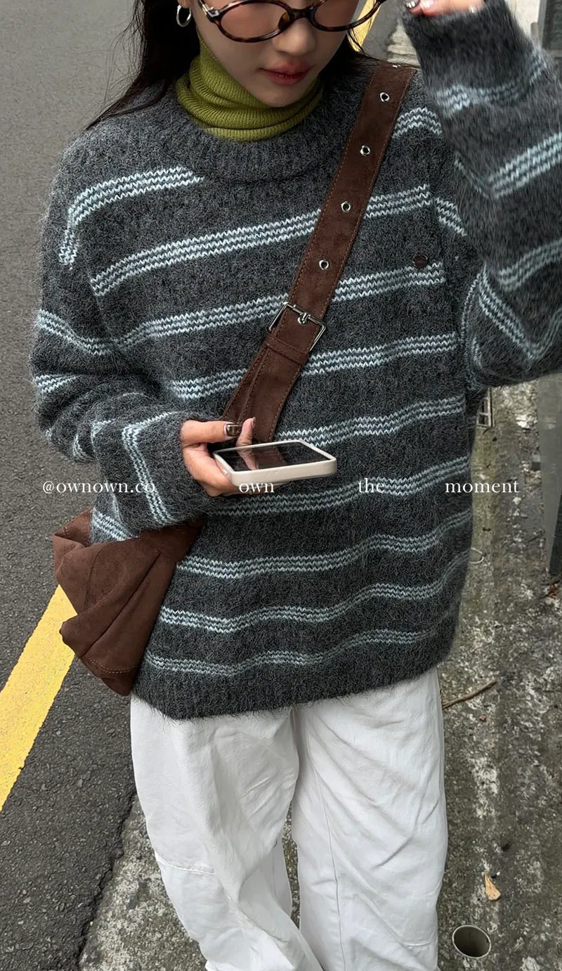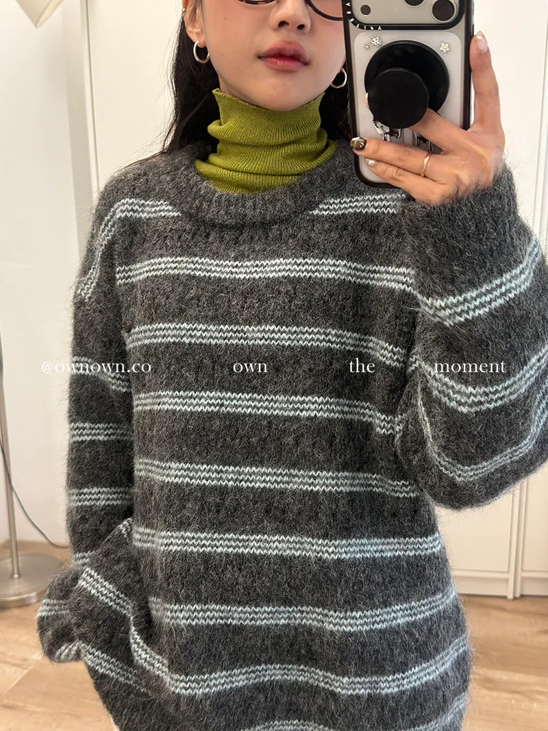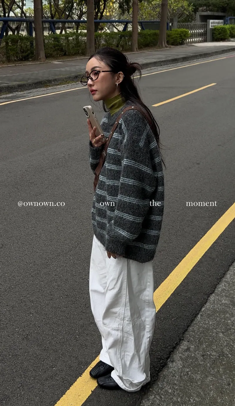 【OWN自訂款】灰藍冬日 條紋毛衣