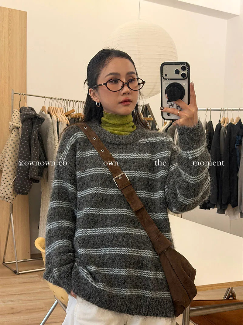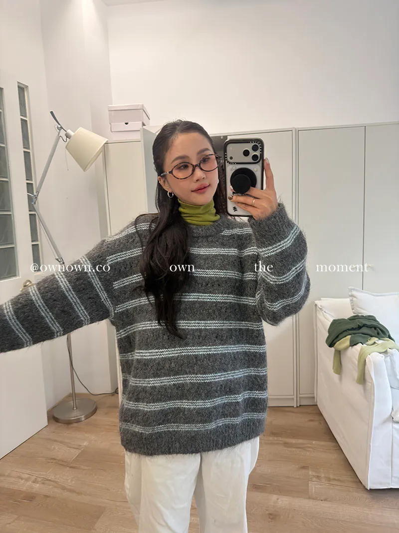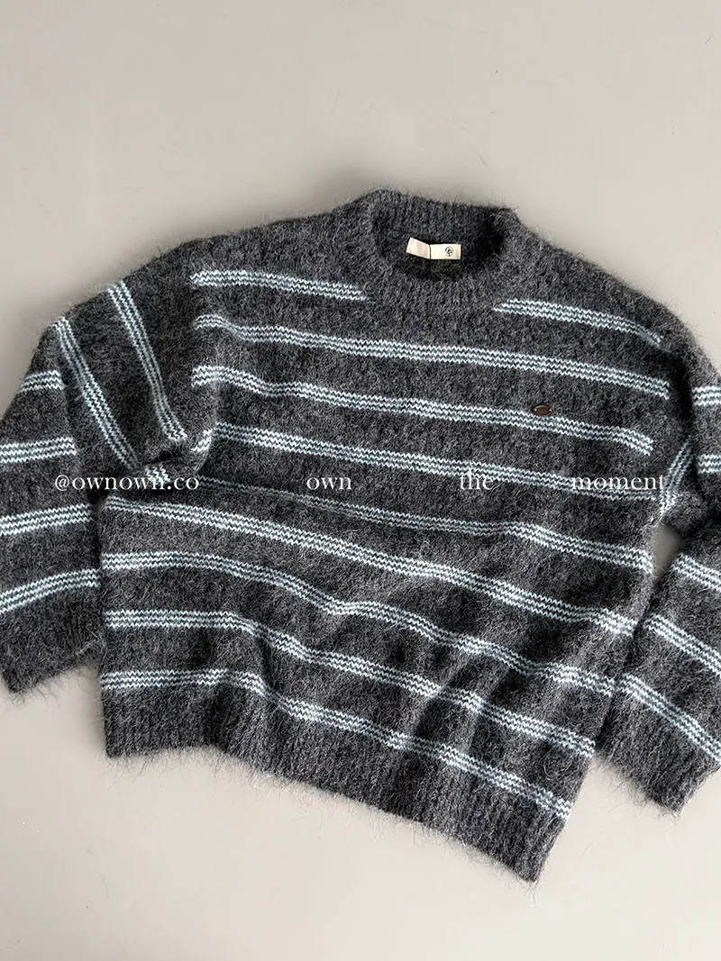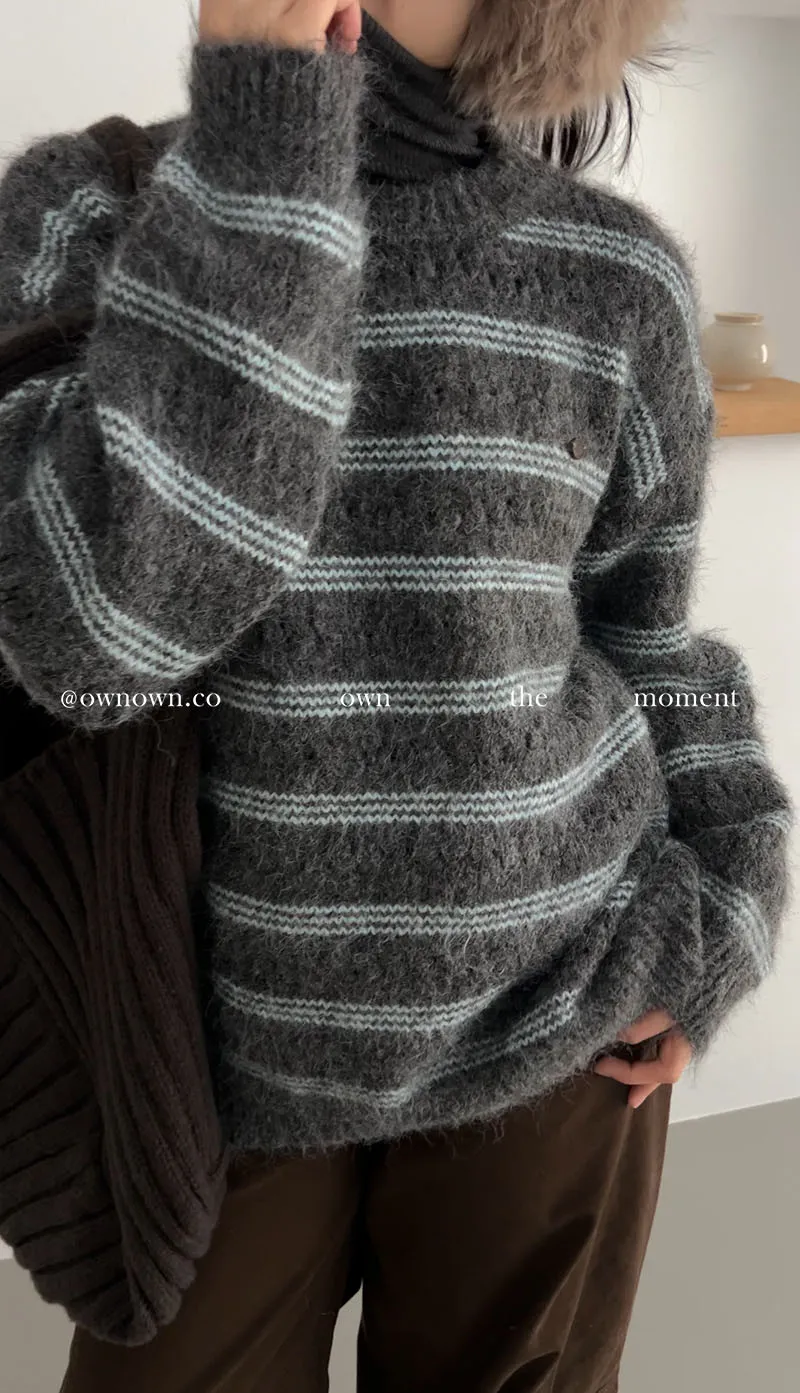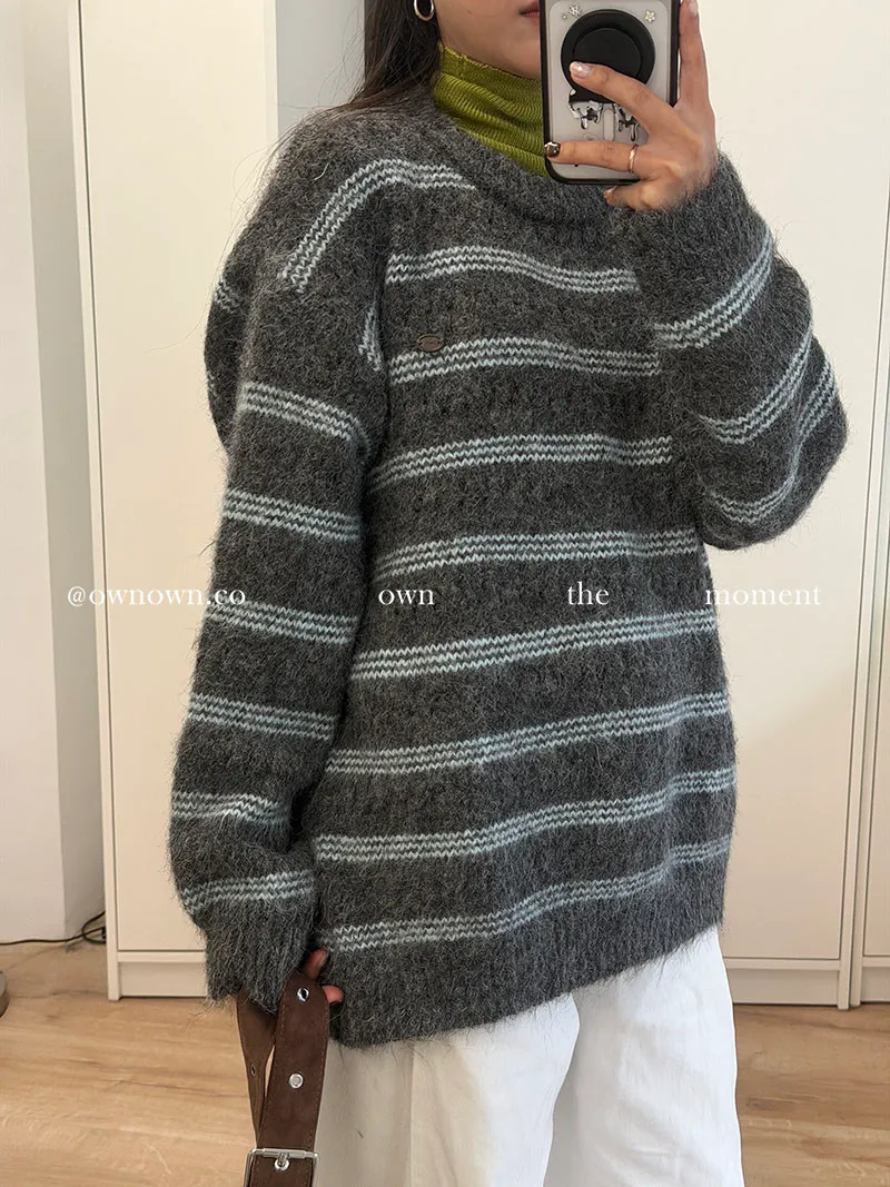 【OWN自訂款】灰藍冬日 條紋毛衣