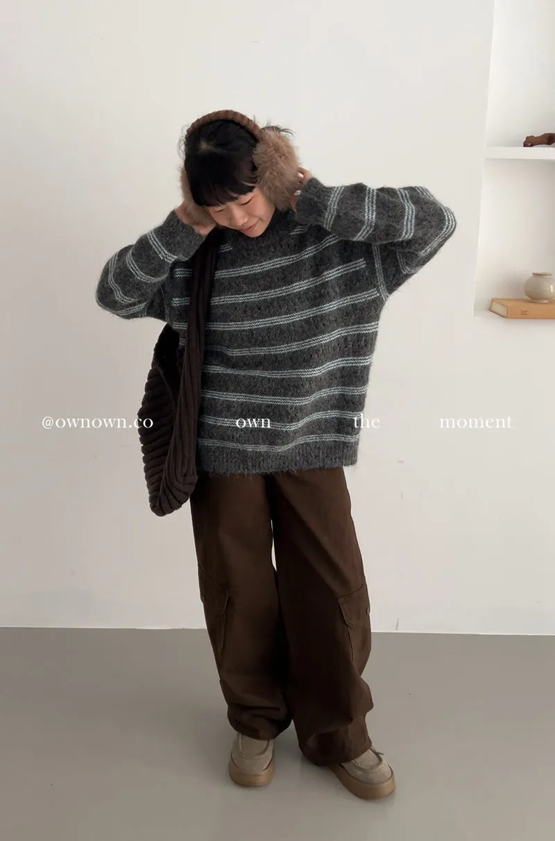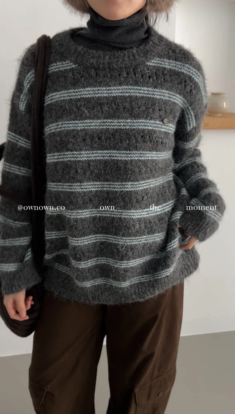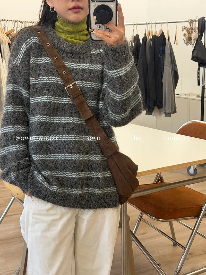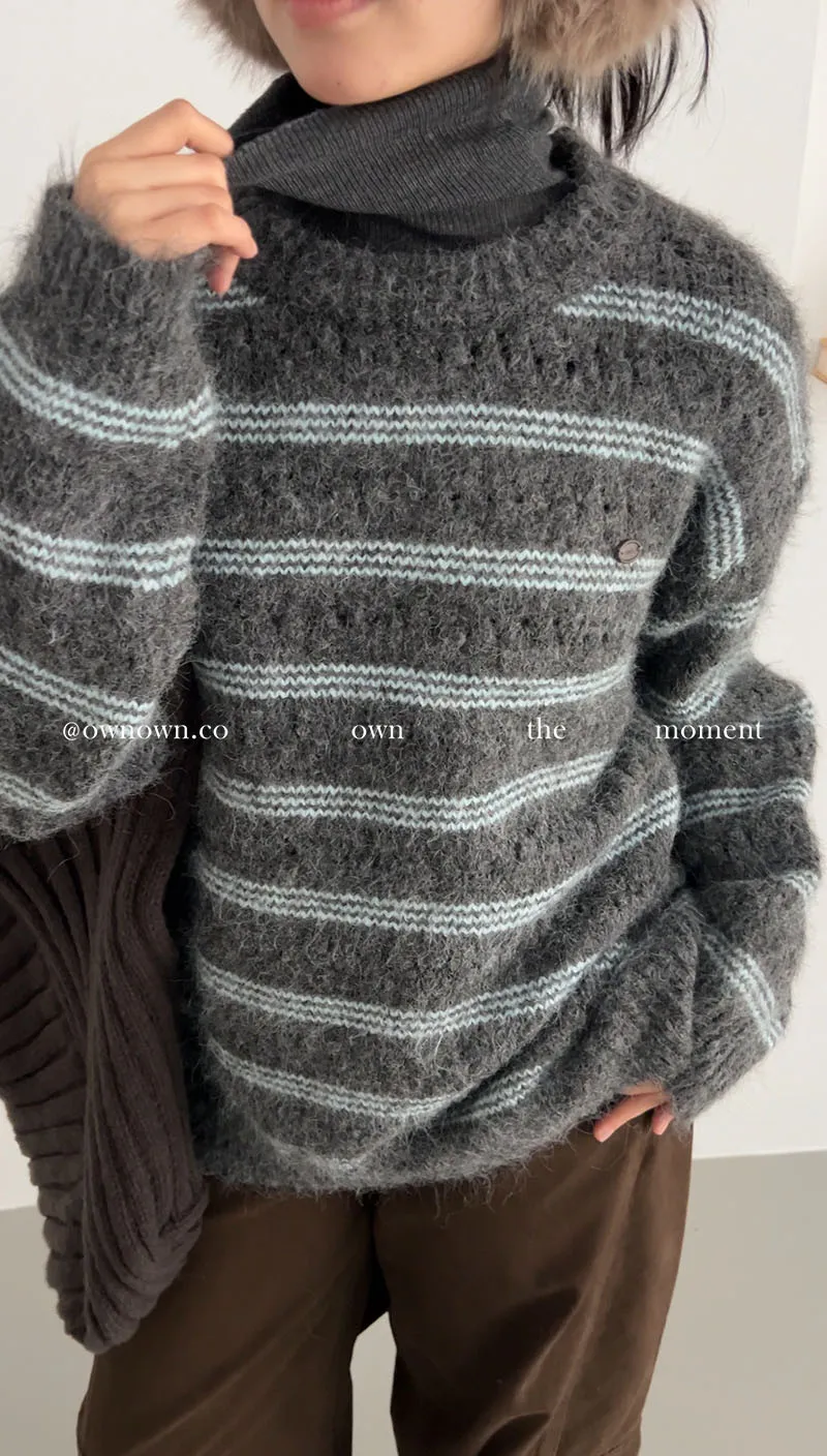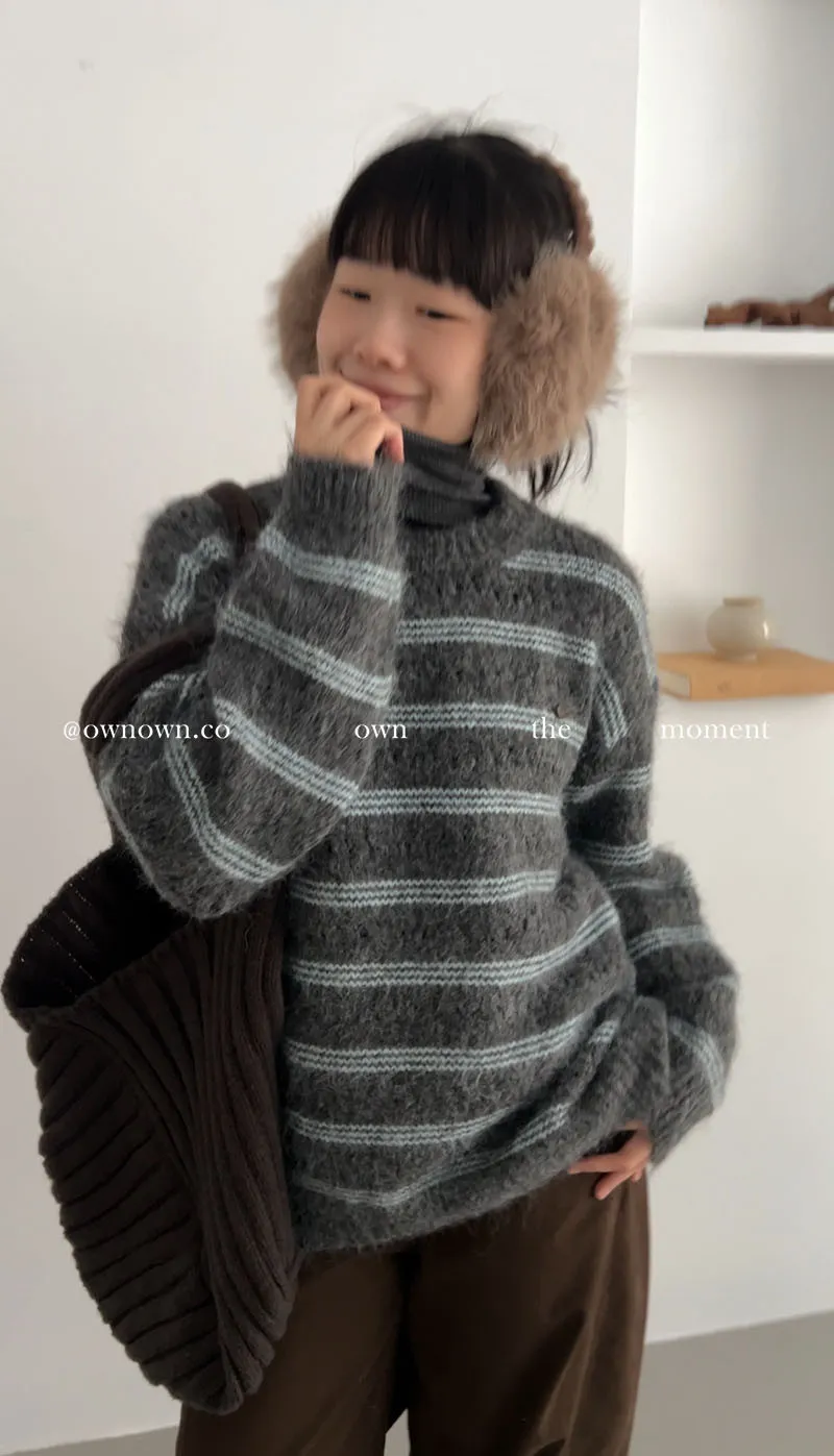 【OWN自訂款】灰藍冬日 條紋毛衣
