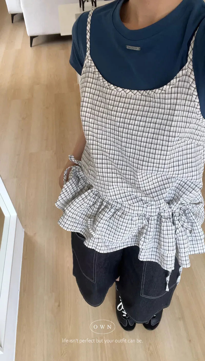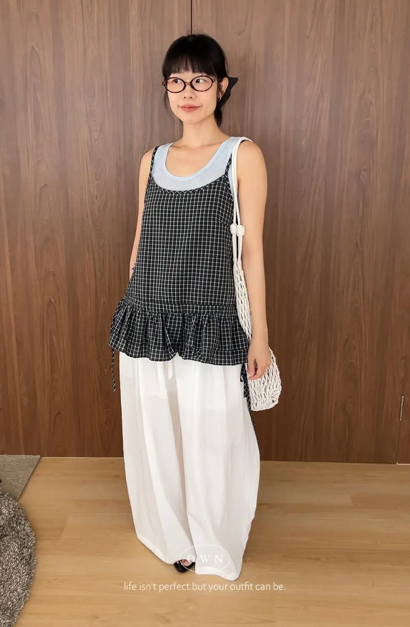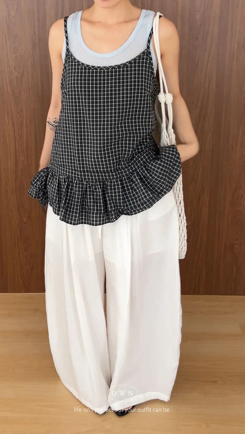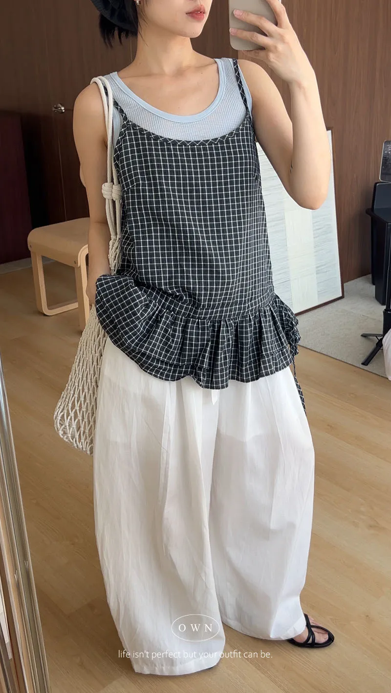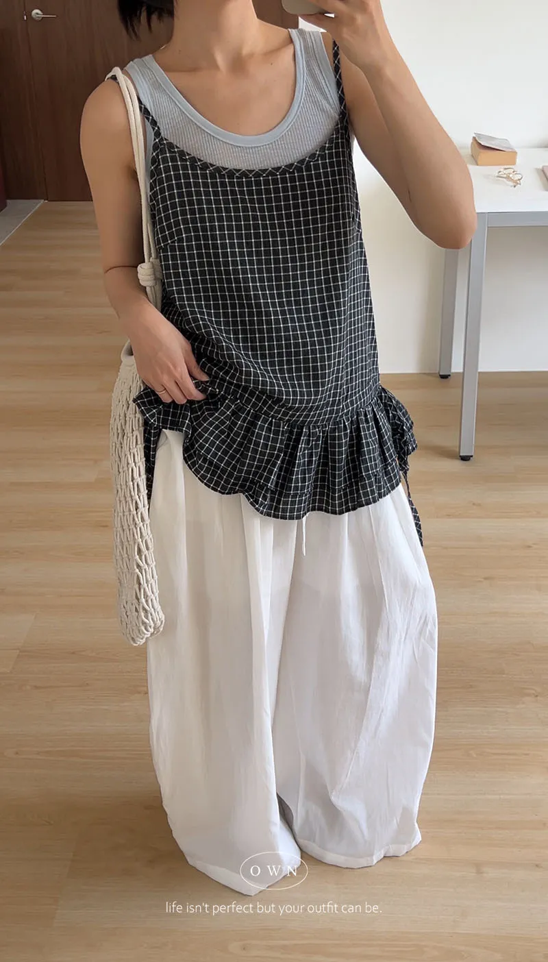【兩件組合價$800】完美詮釋酷甜感 荷葉裙襬細肩格紋背心 2colors
