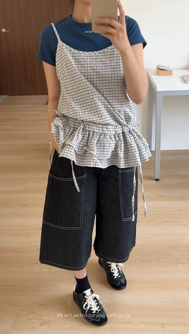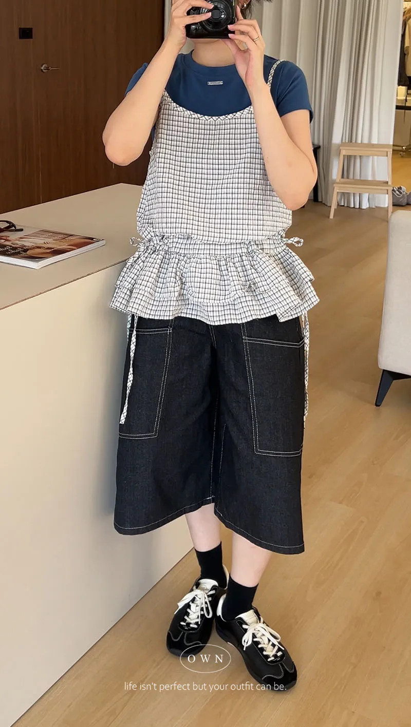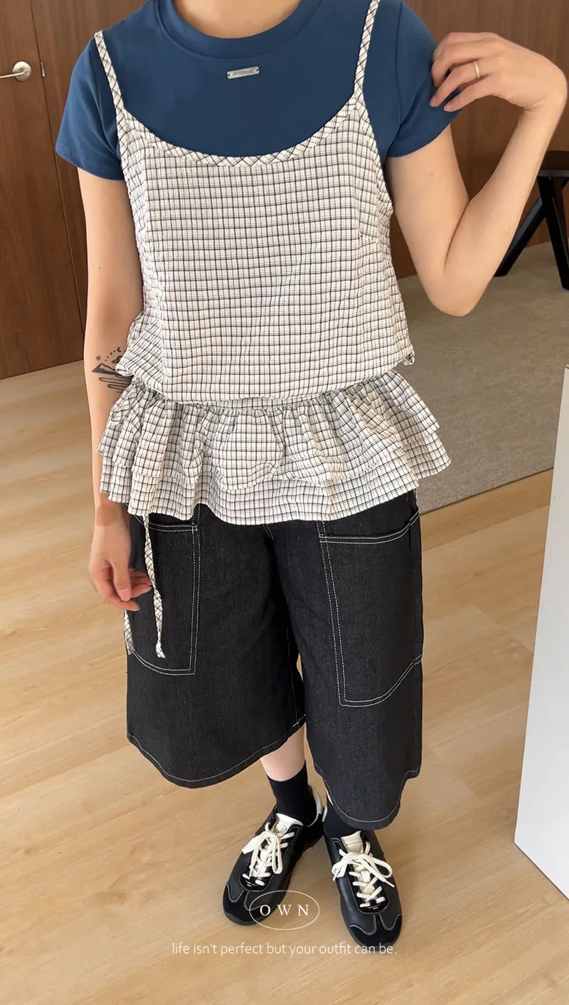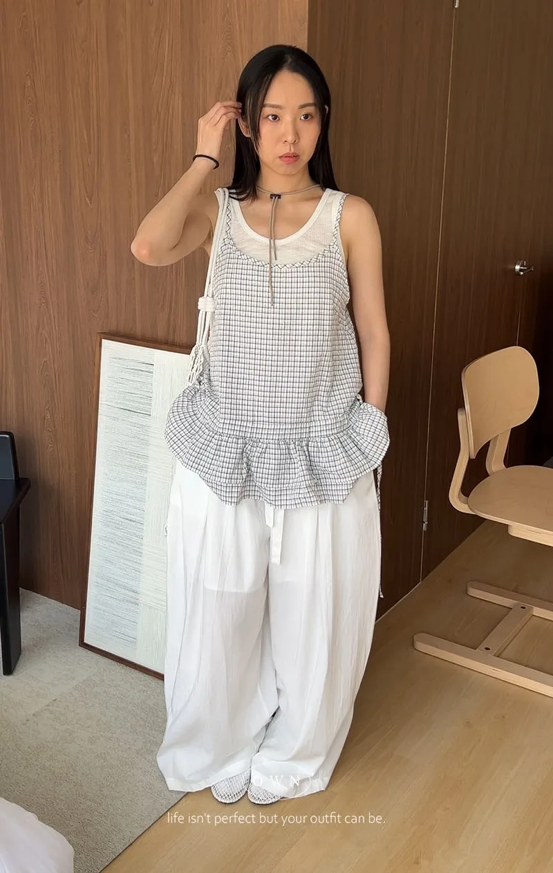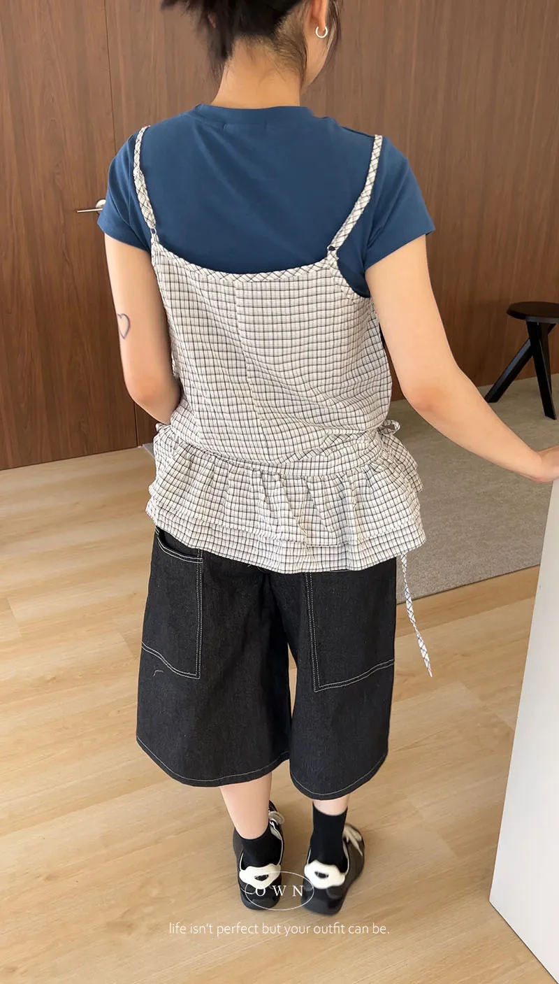 【兩件組合價$800】完美詮釋酷甜感 荷葉裙襬細肩格紋背心 2colors