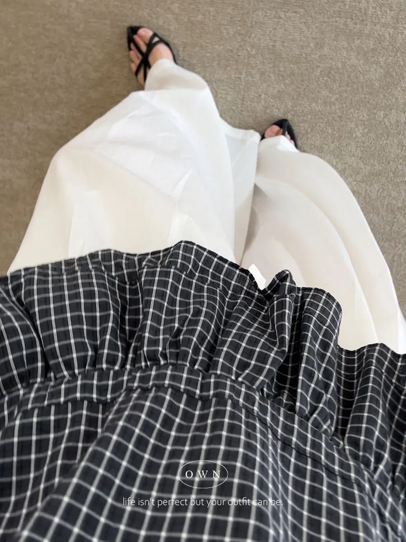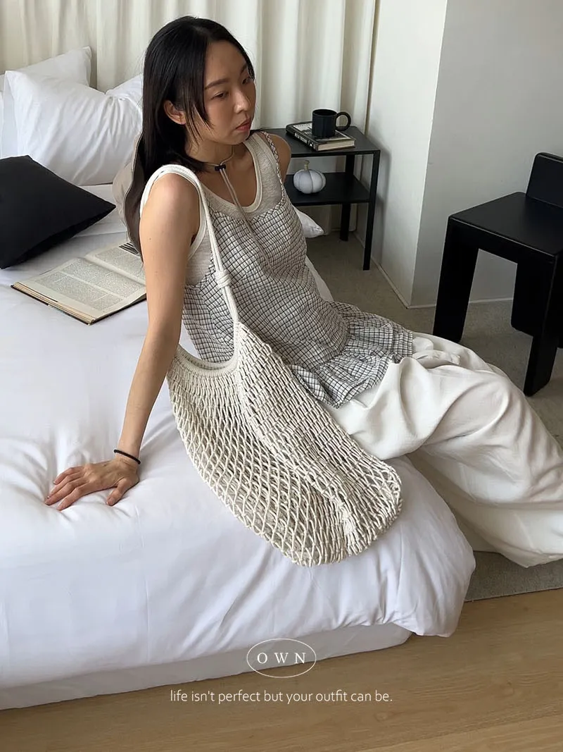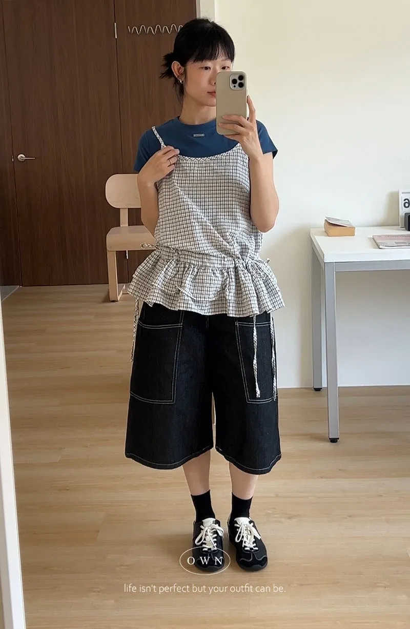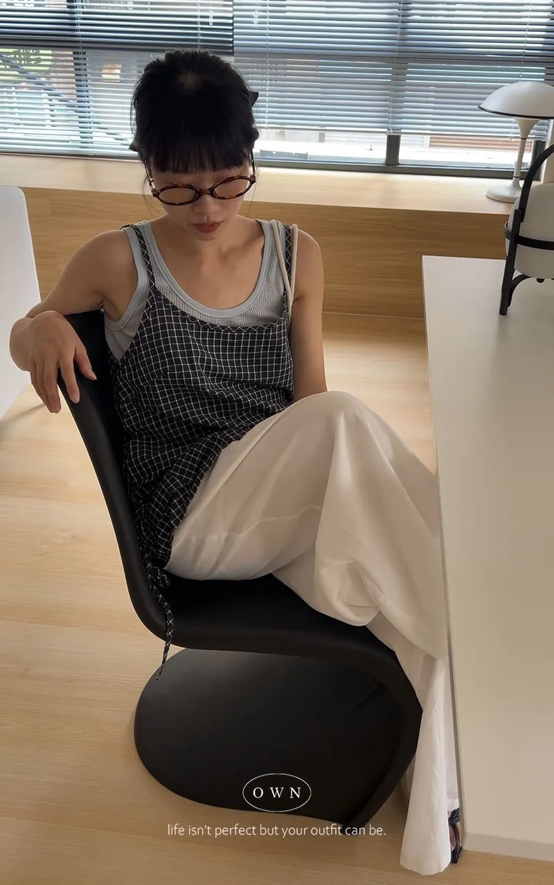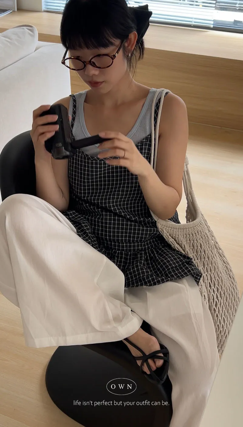 【兩件組合價$800】完美詮釋酷甜感 荷葉裙襬細肩格紋背心 2colors