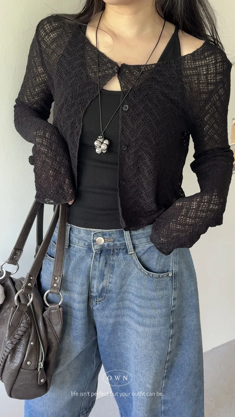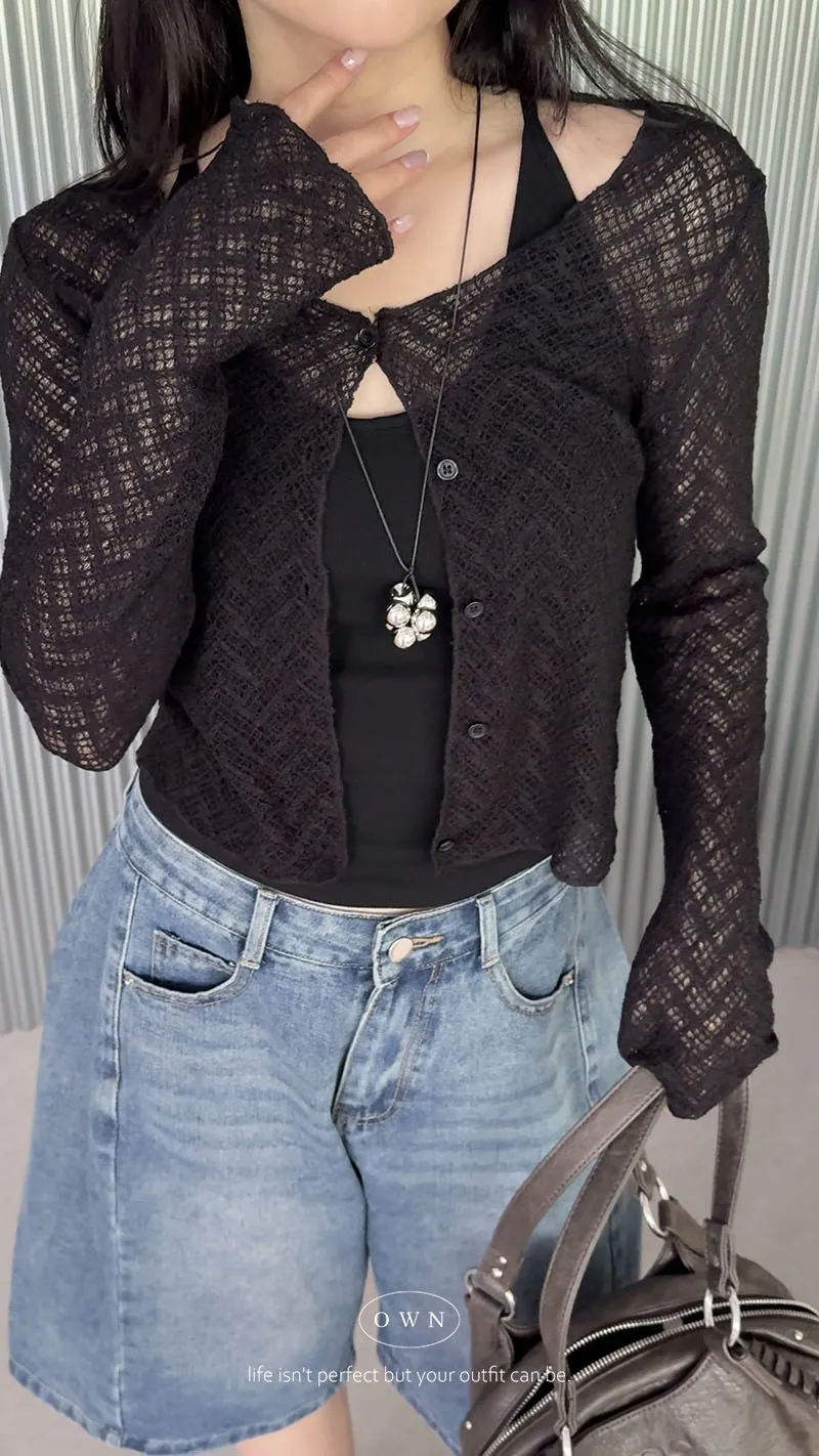 微透的柔軟精緻 短版排釦外罩 2colors