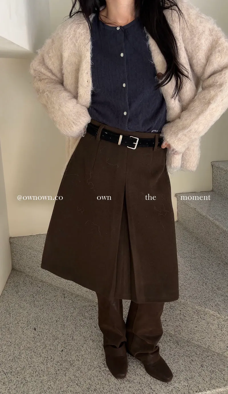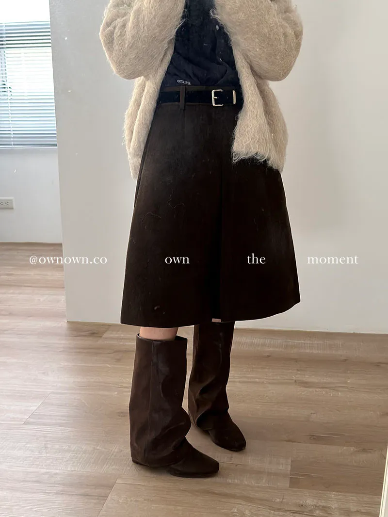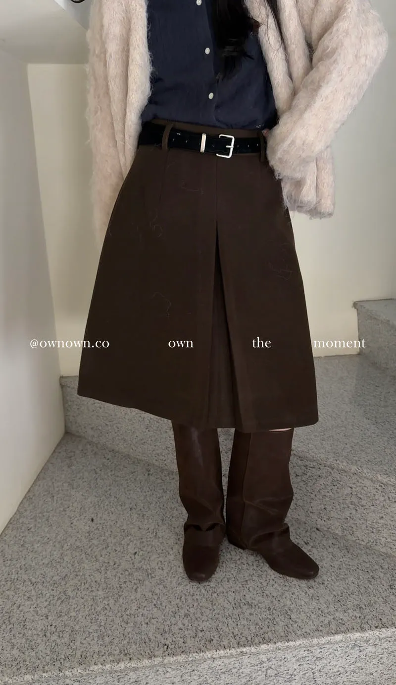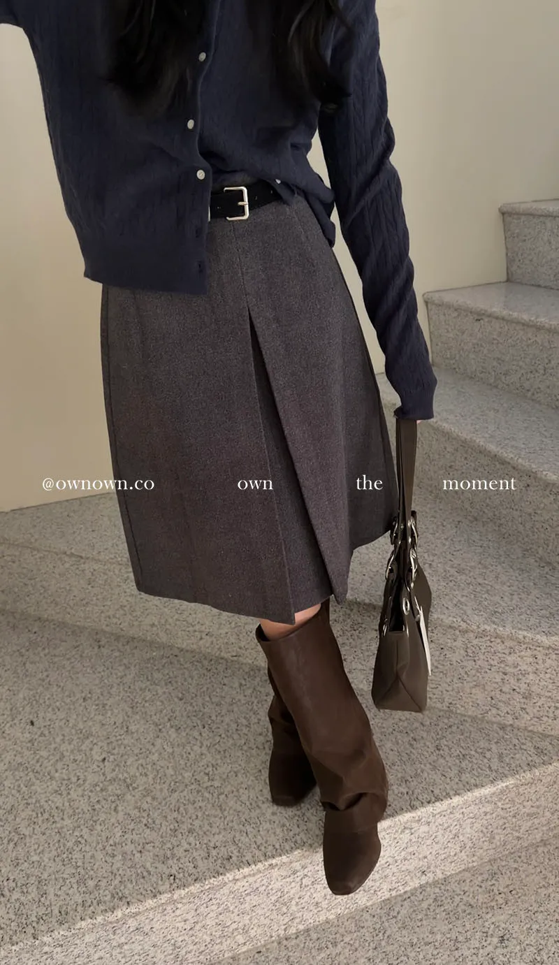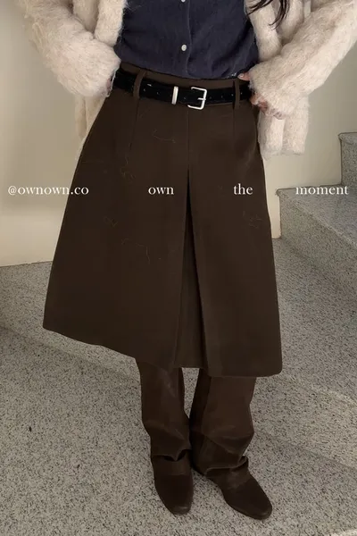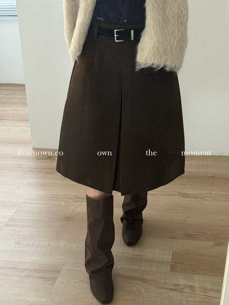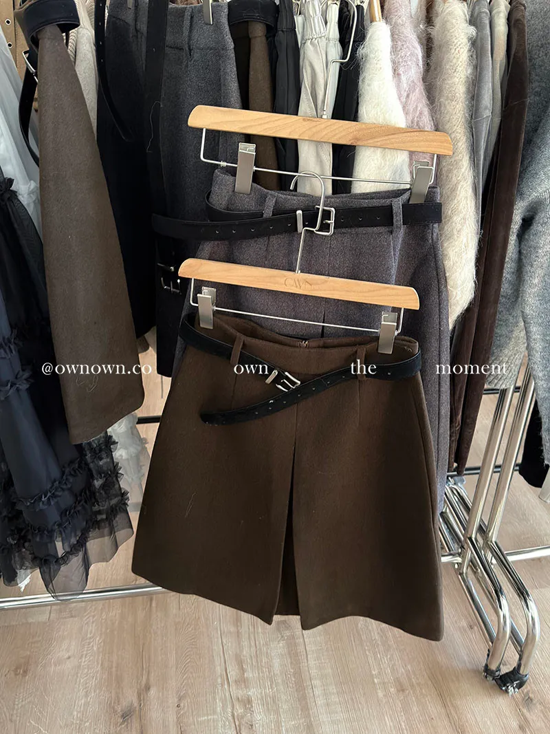 不張揚的氣質 毛呢摺線五分裙(附皮帶) 2colors S/M/L