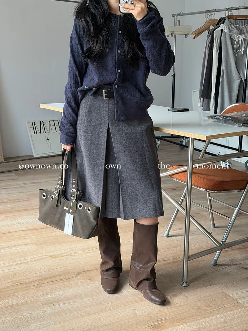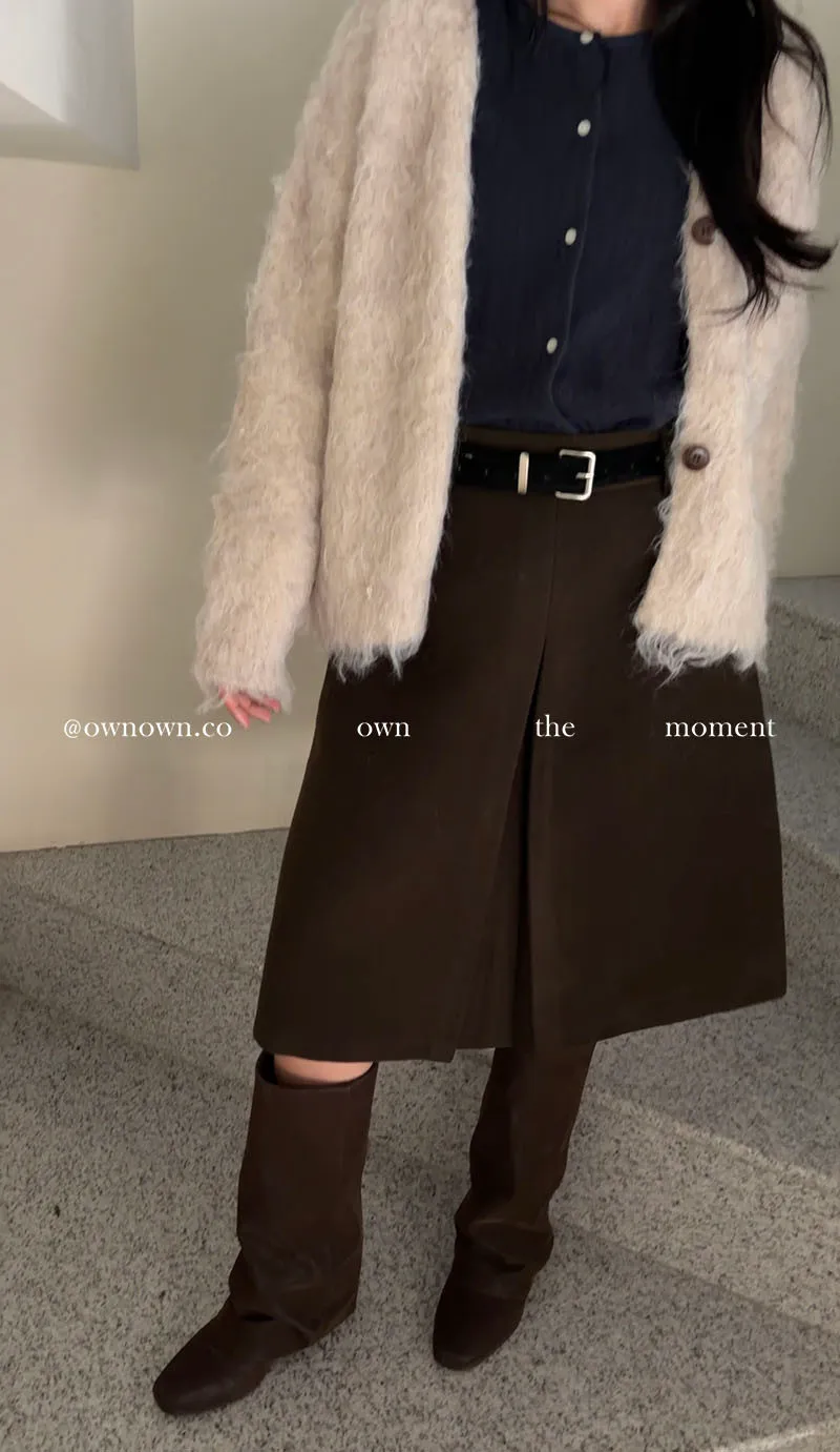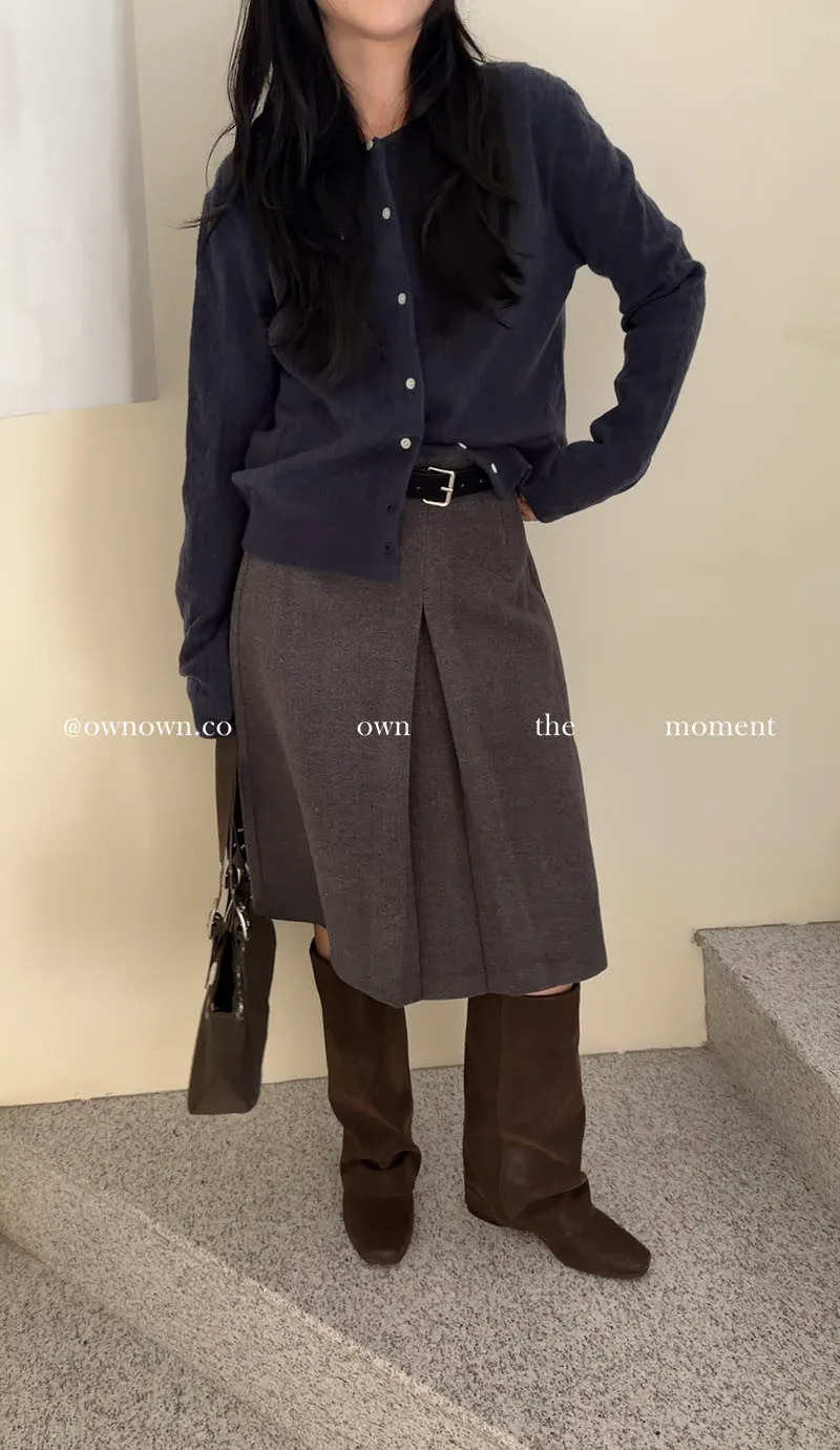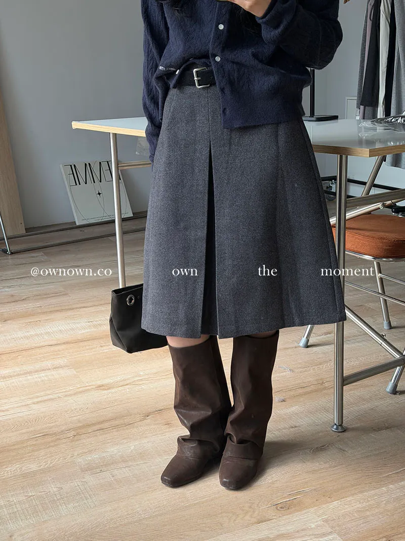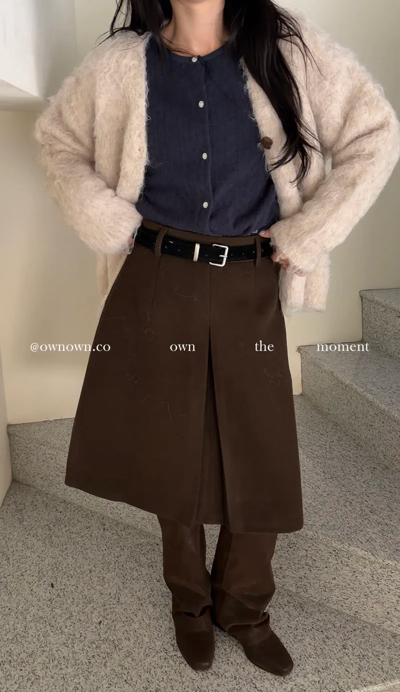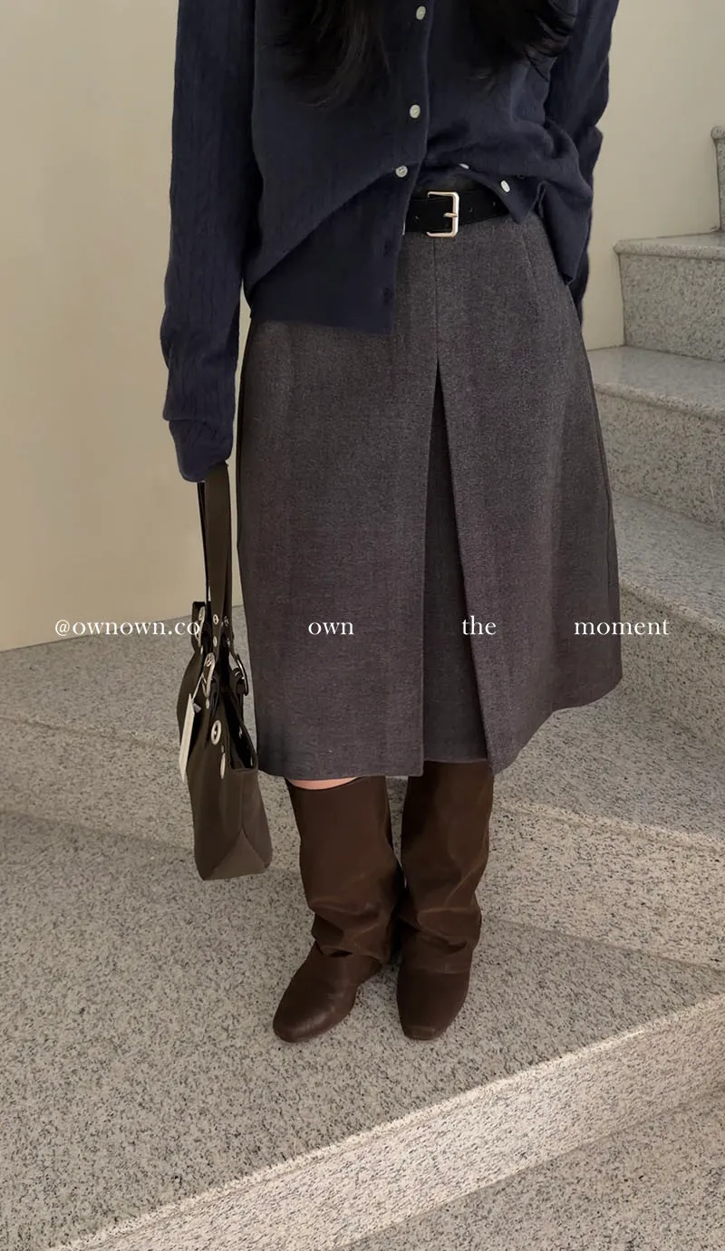 不張揚的氣質 毛呢摺線五分裙(附皮帶) 2colors S/M/L