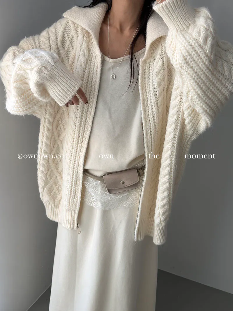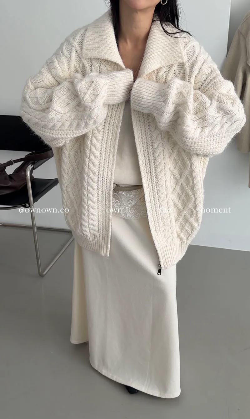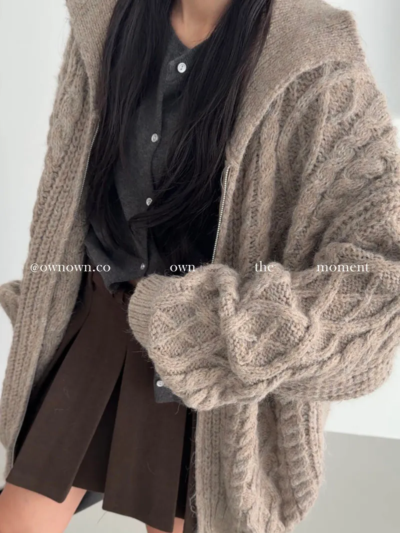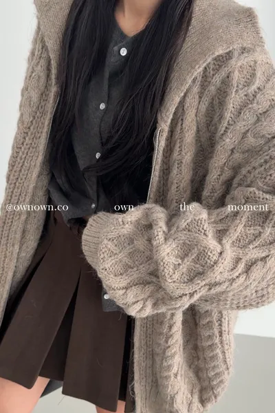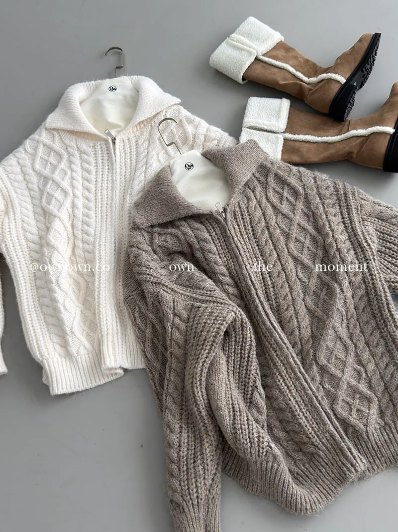 隨便穿都好看的鬆弛感 混羊毛麻花拉鏈外套2colors