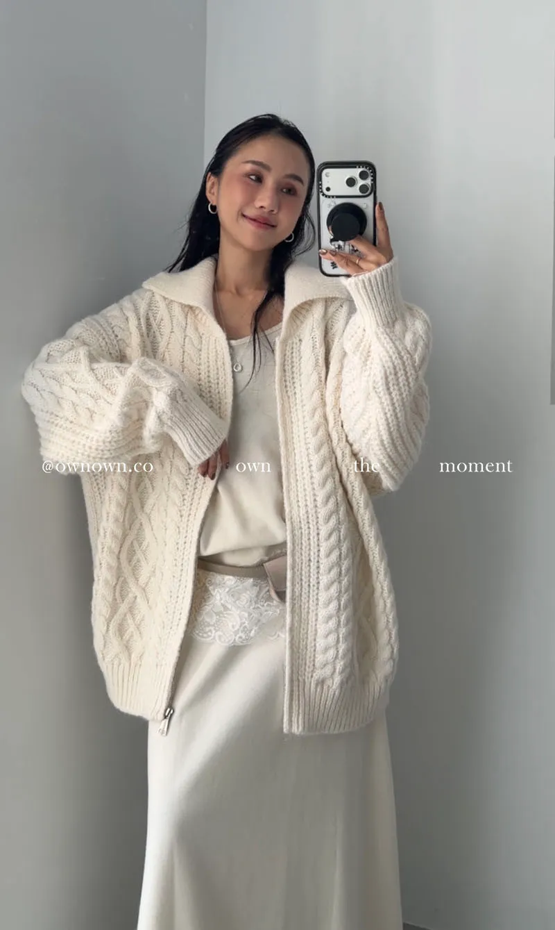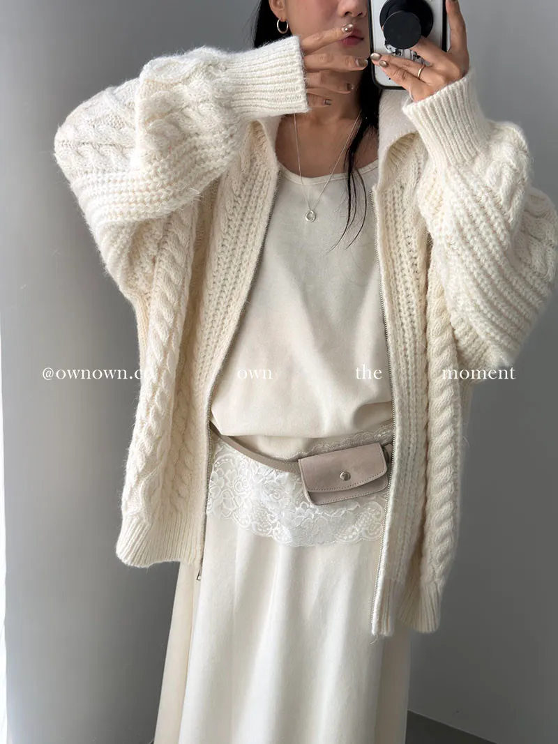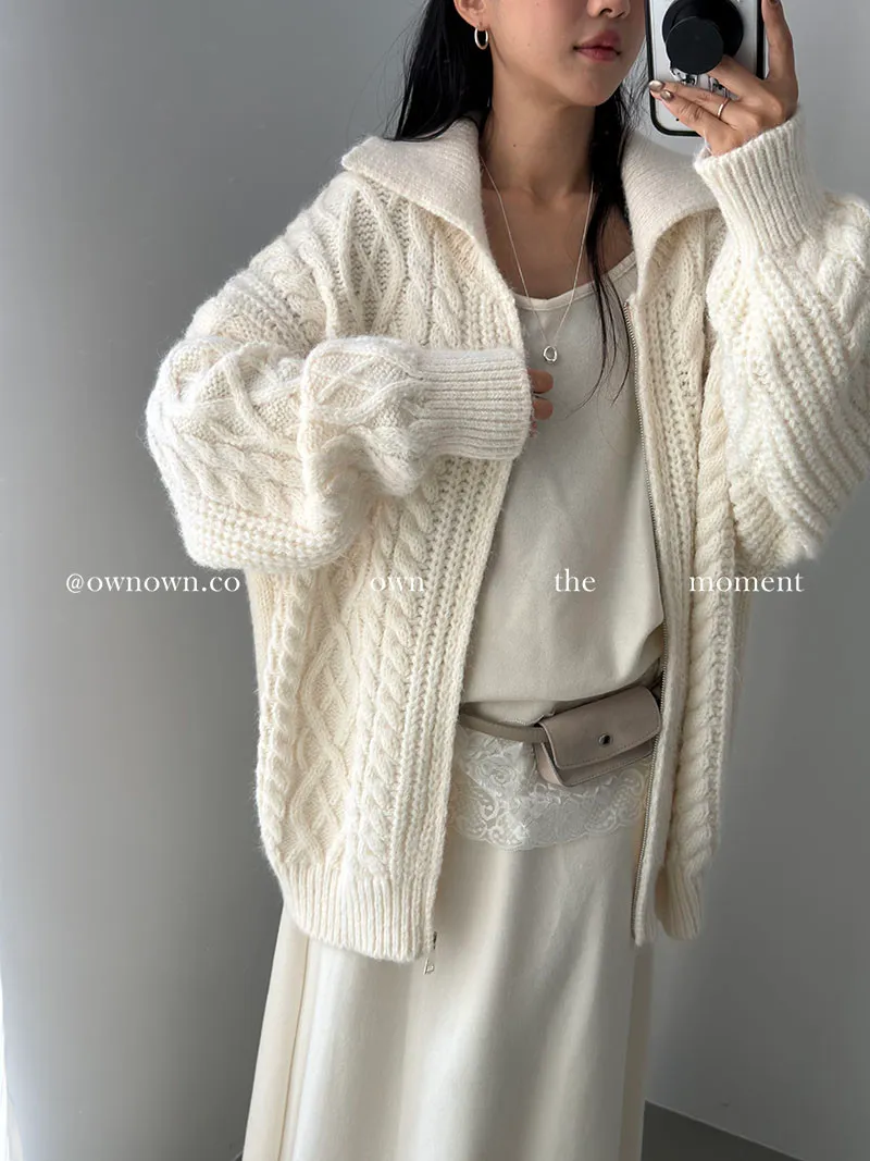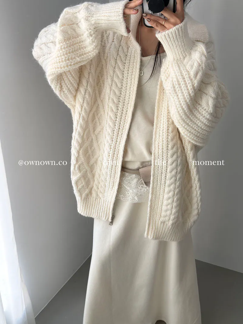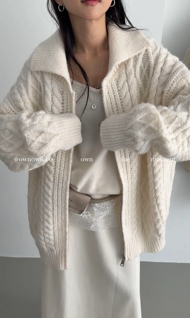 隨便穿都好看的鬆弛感 混羊毛麻花拉鏈外套2colors